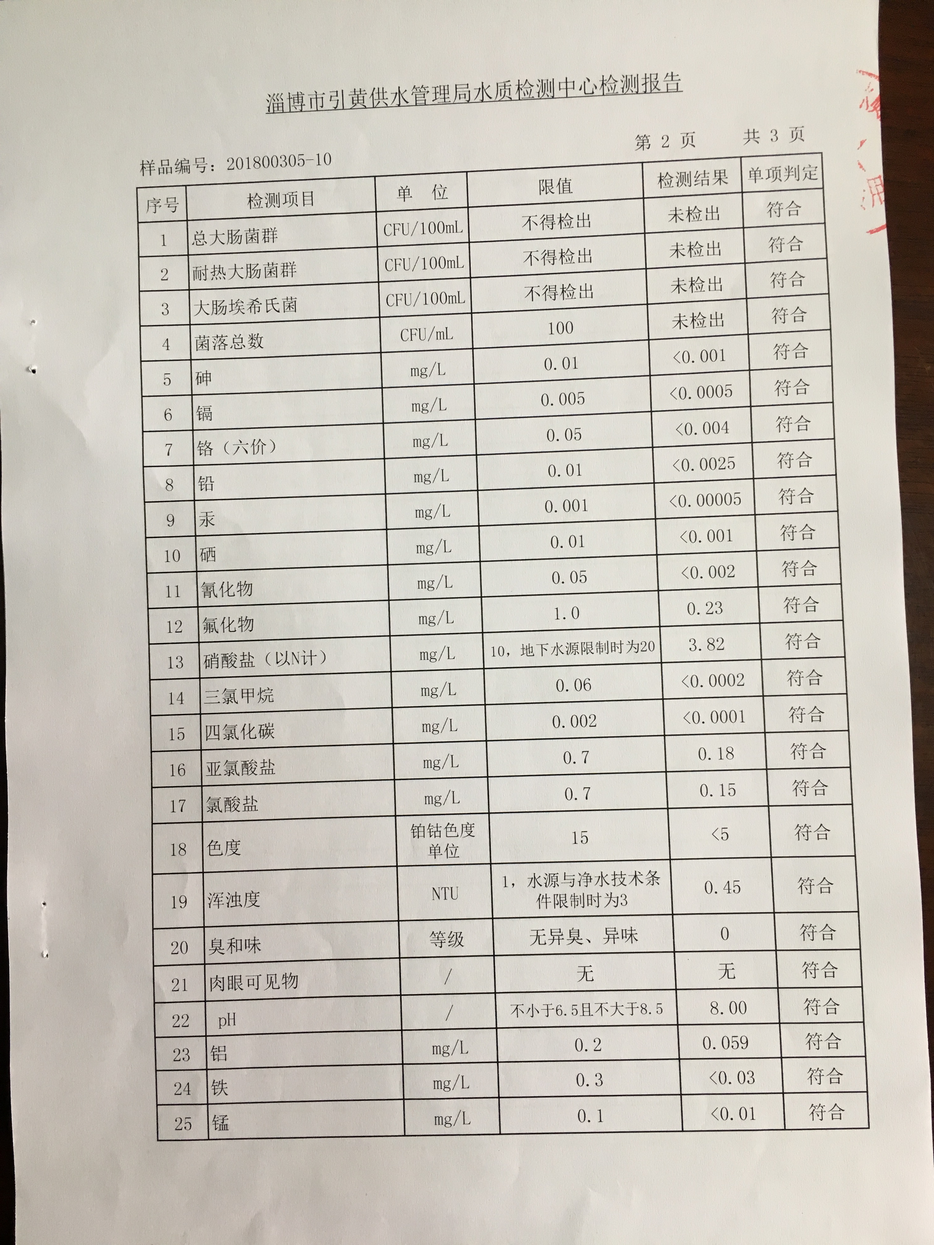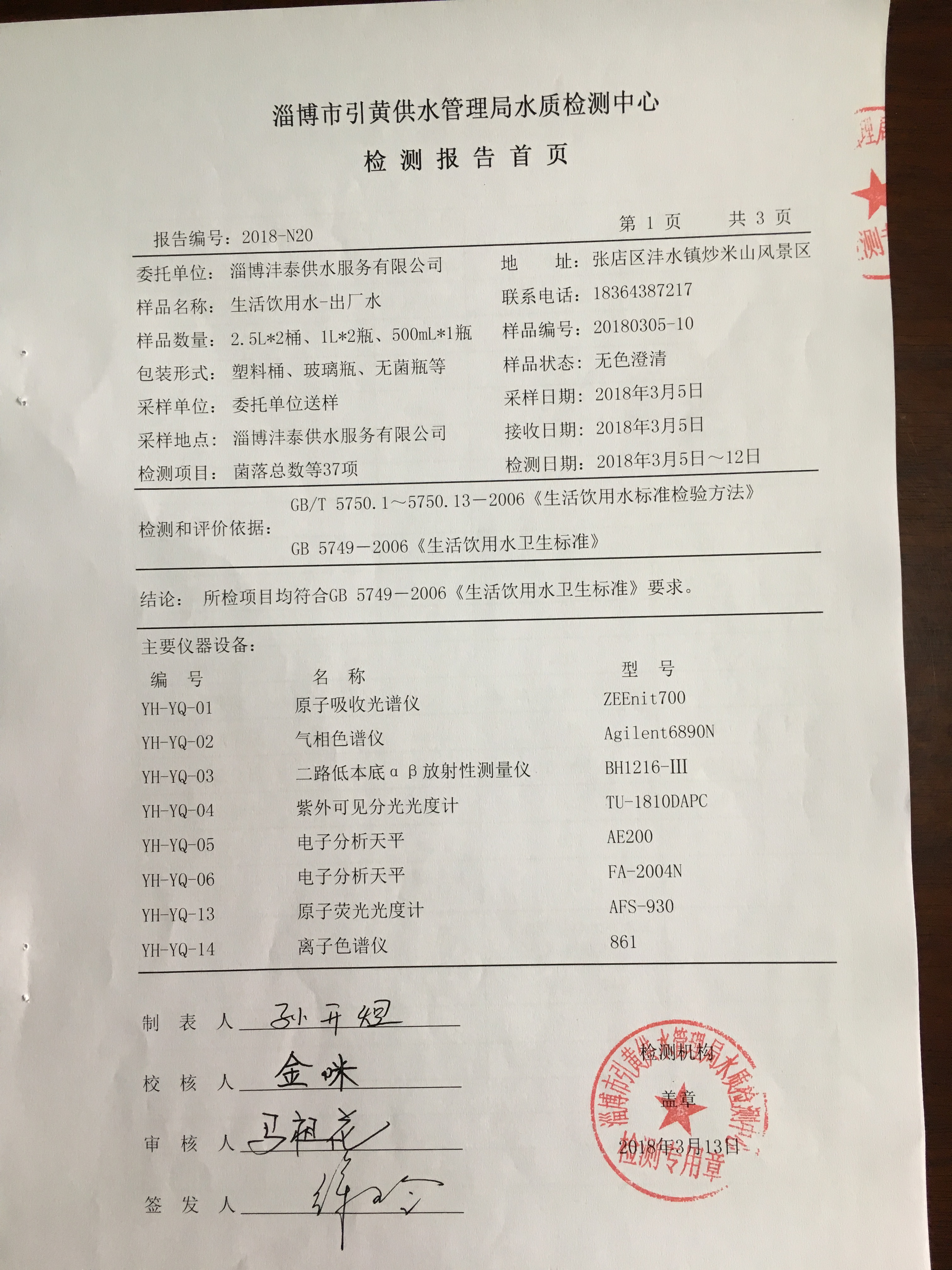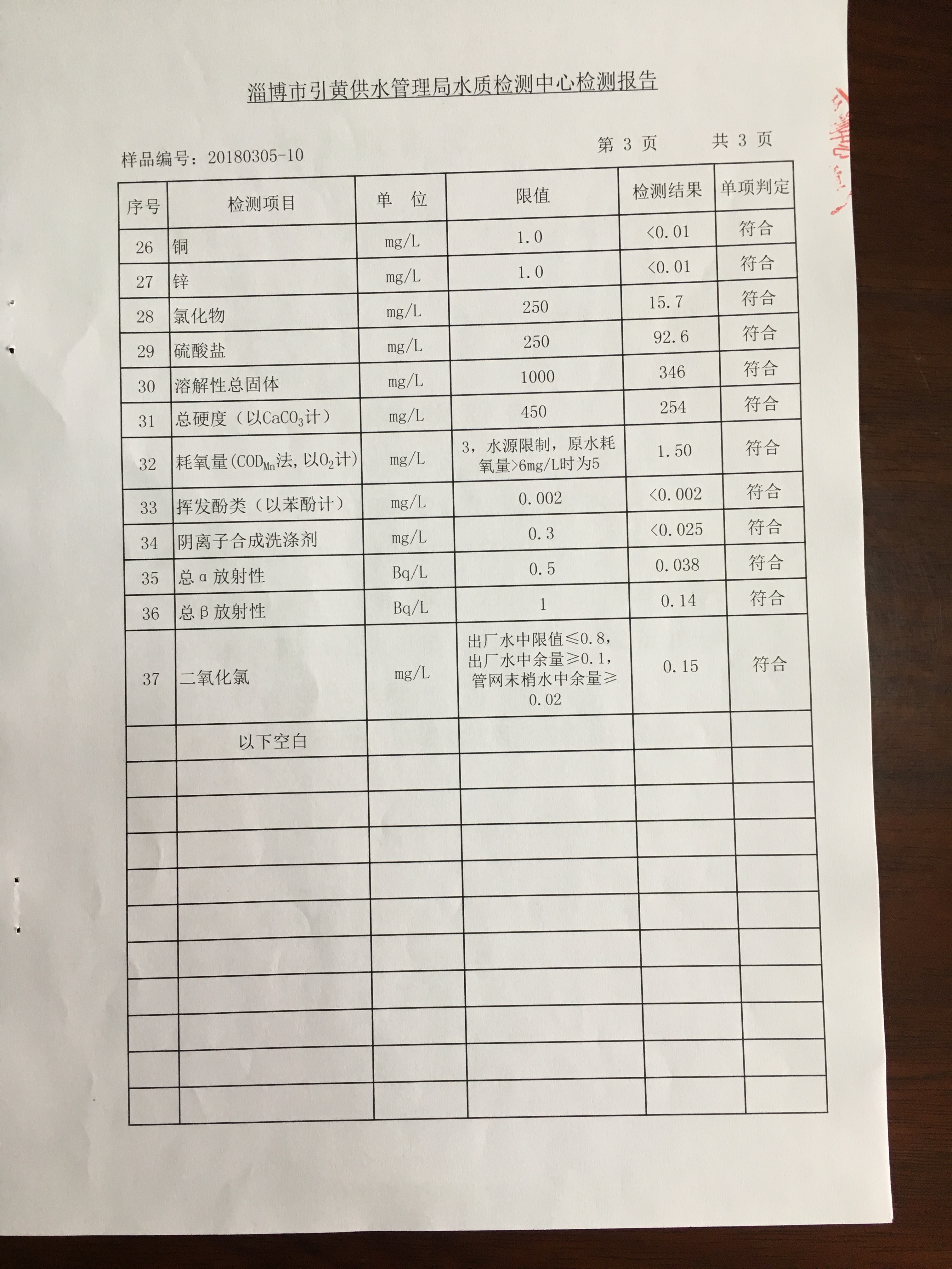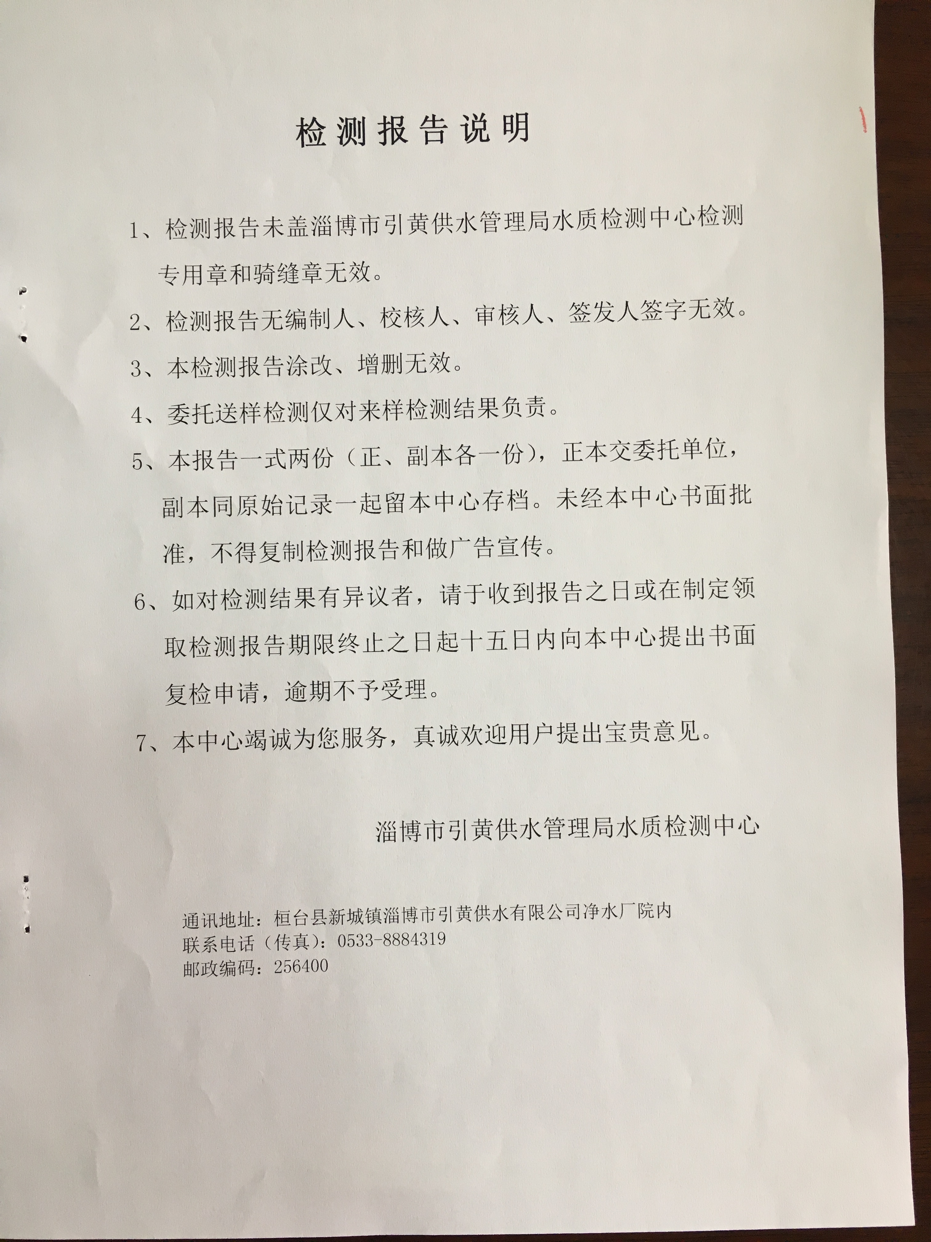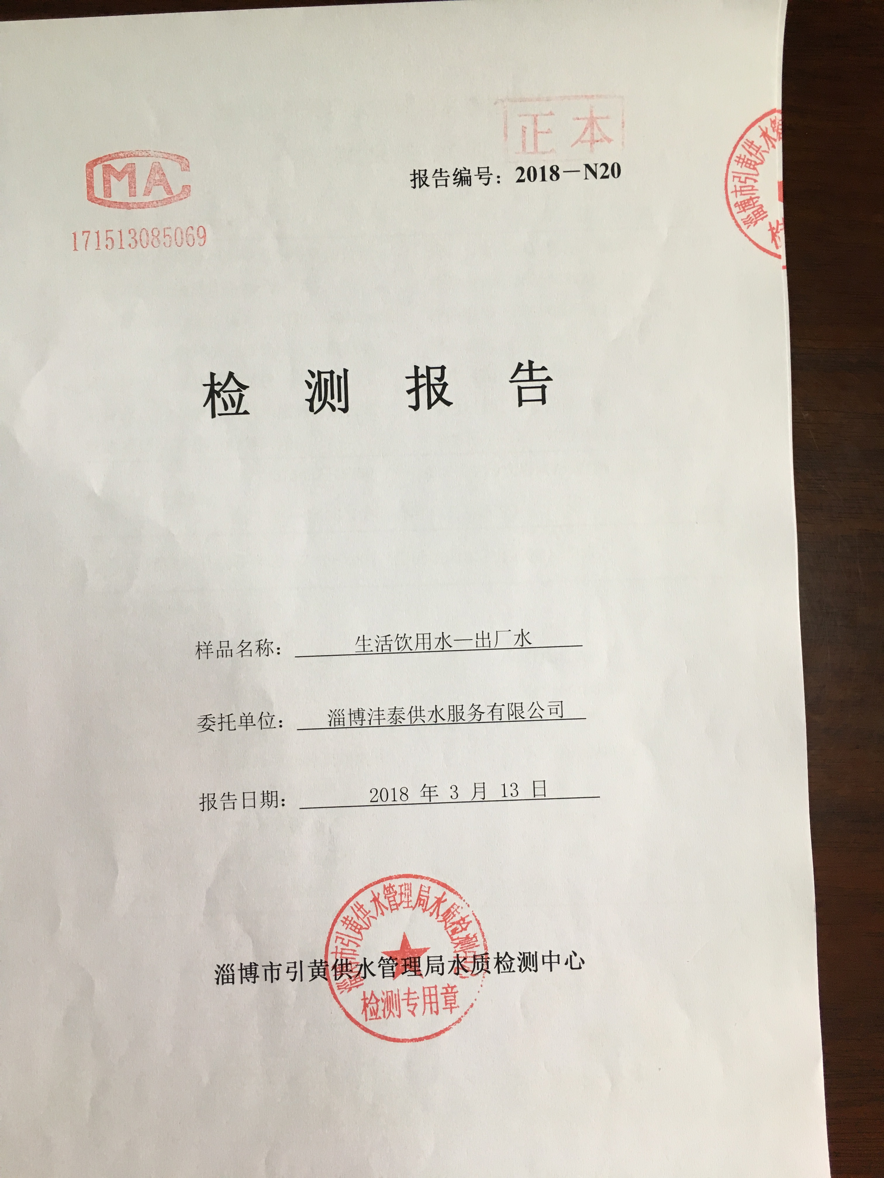 淄博灃泰供水服務(wù)有限公司出廠水檢測(cè)月報(bào)表