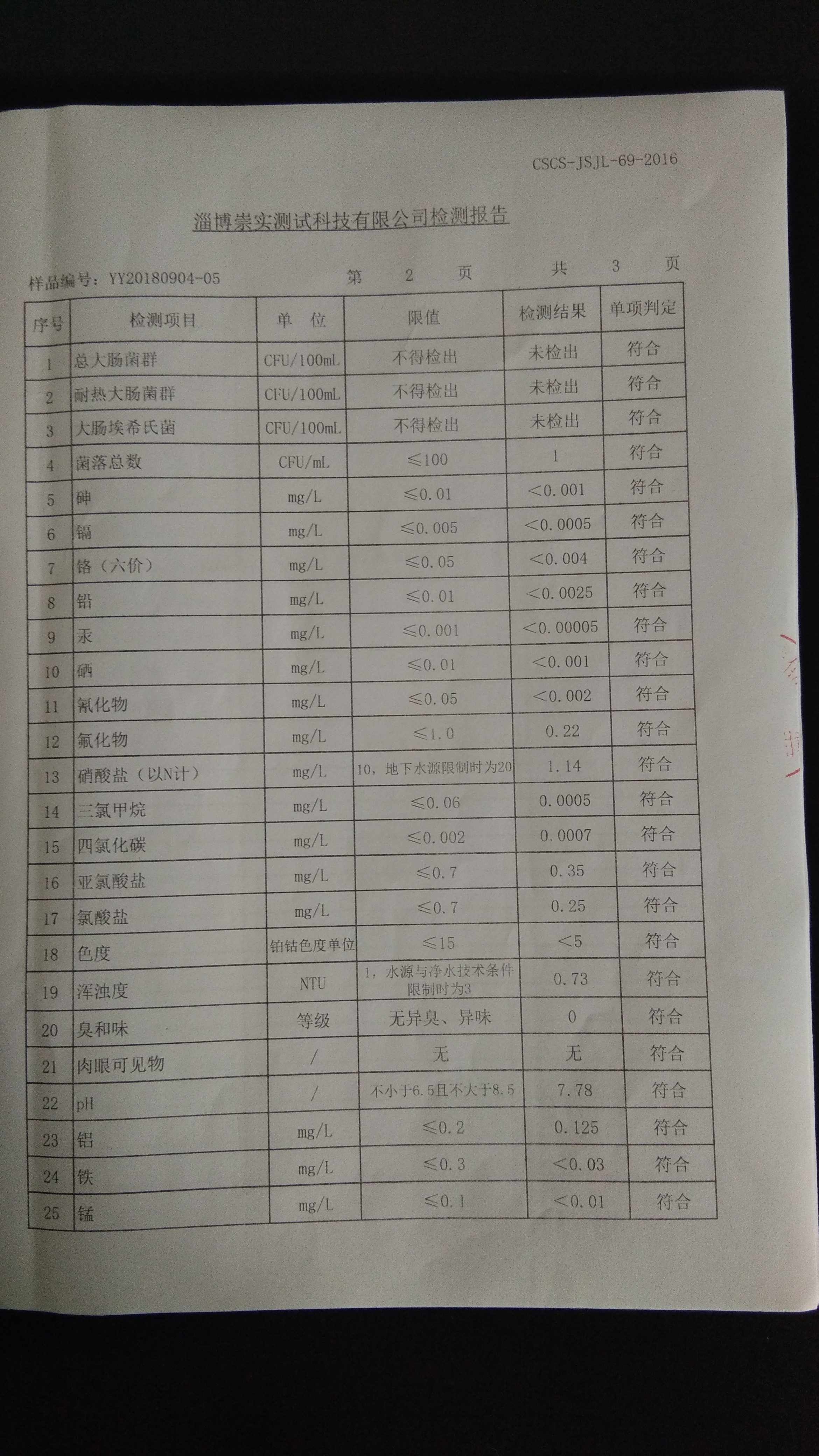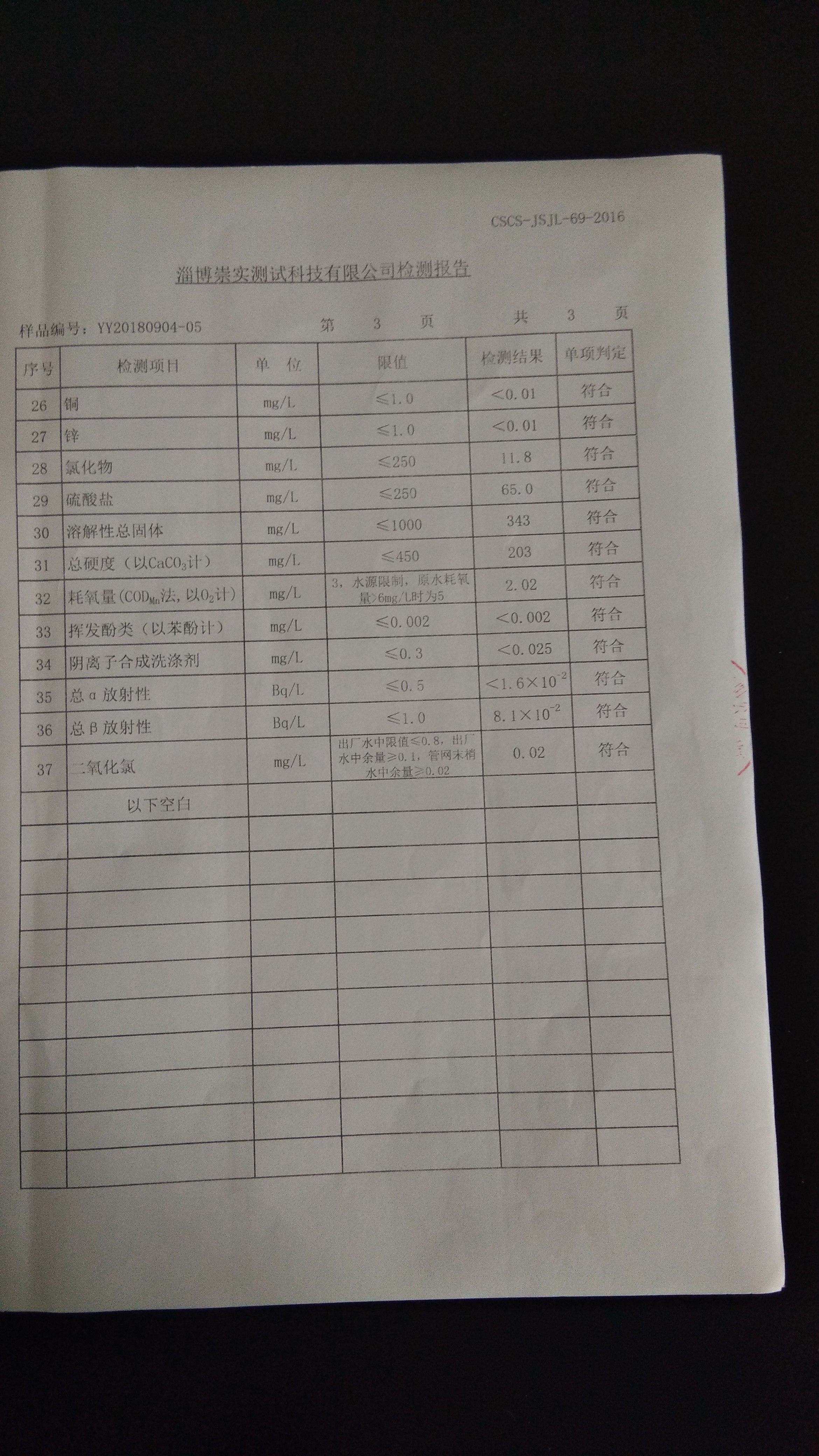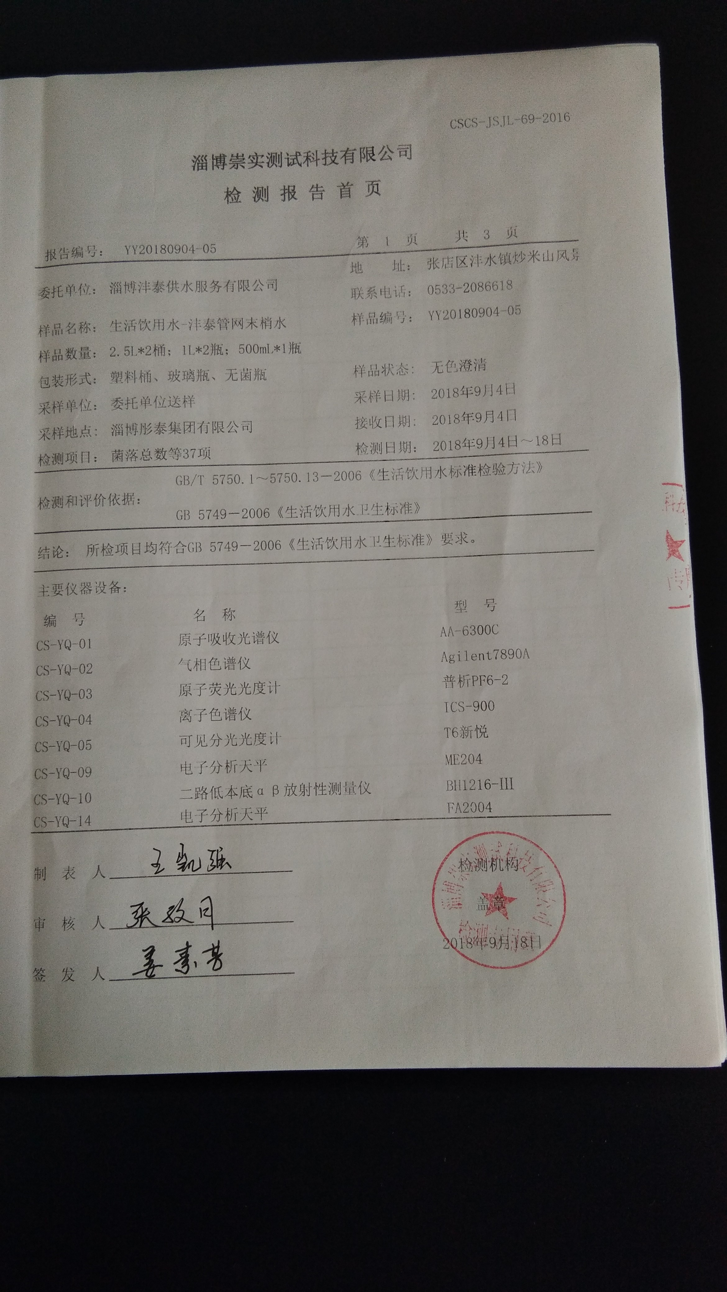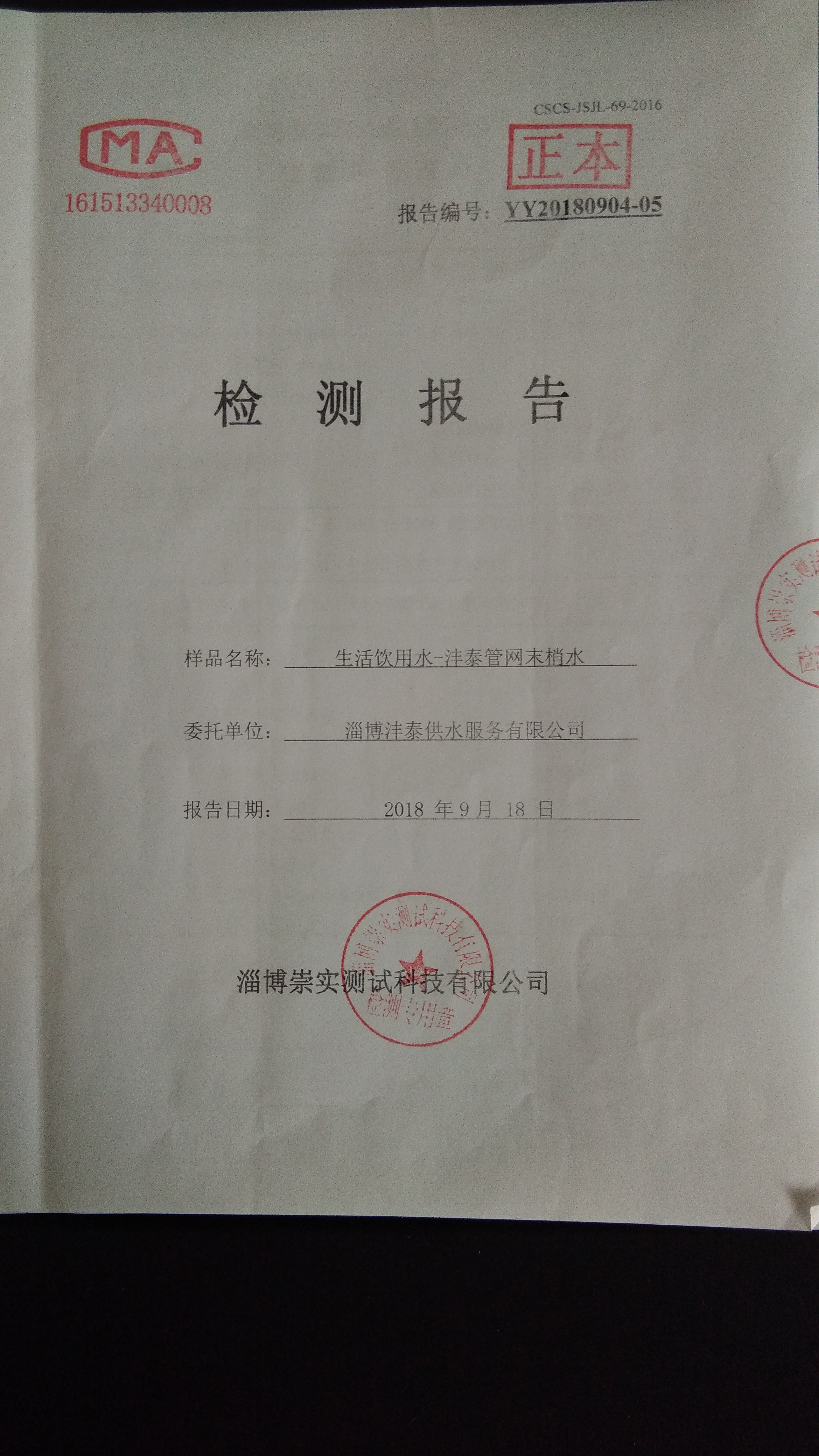 淄博灃泰供水服務(wù)有限公司管網(wǎng)水抽檢月報(bào)表