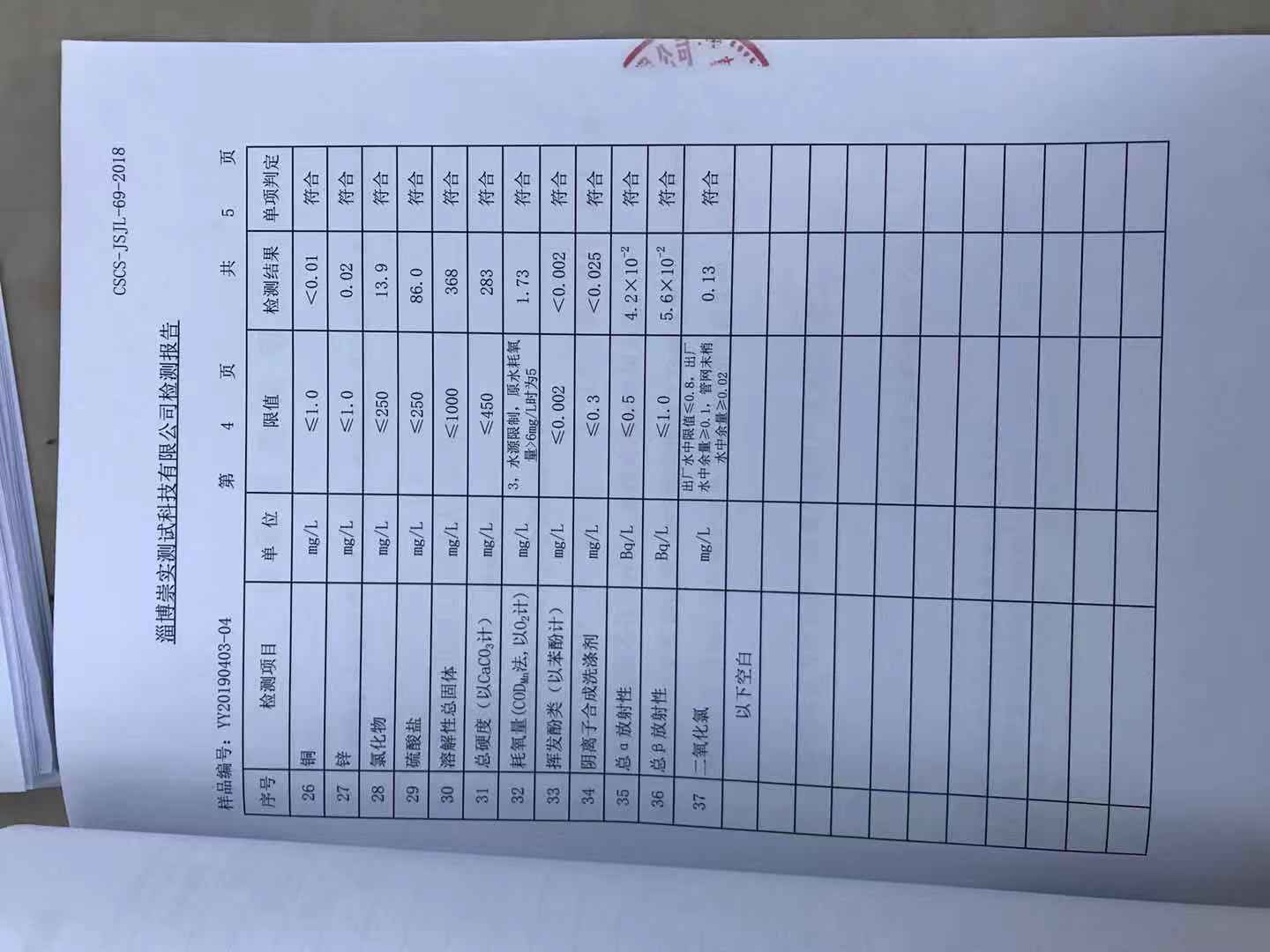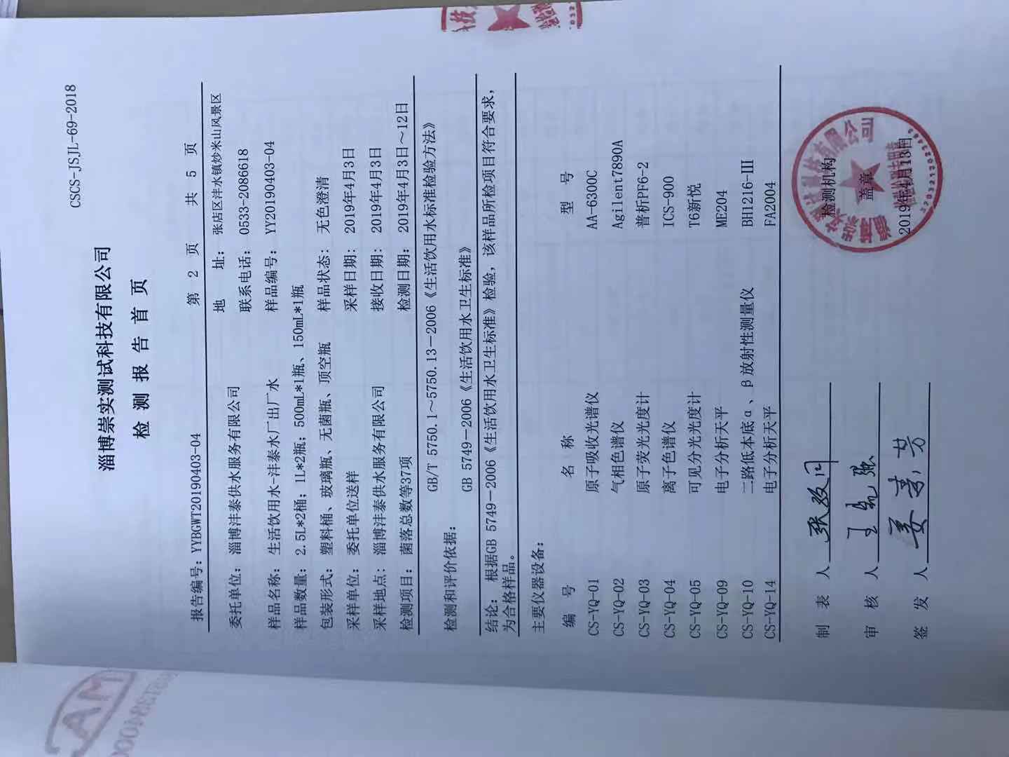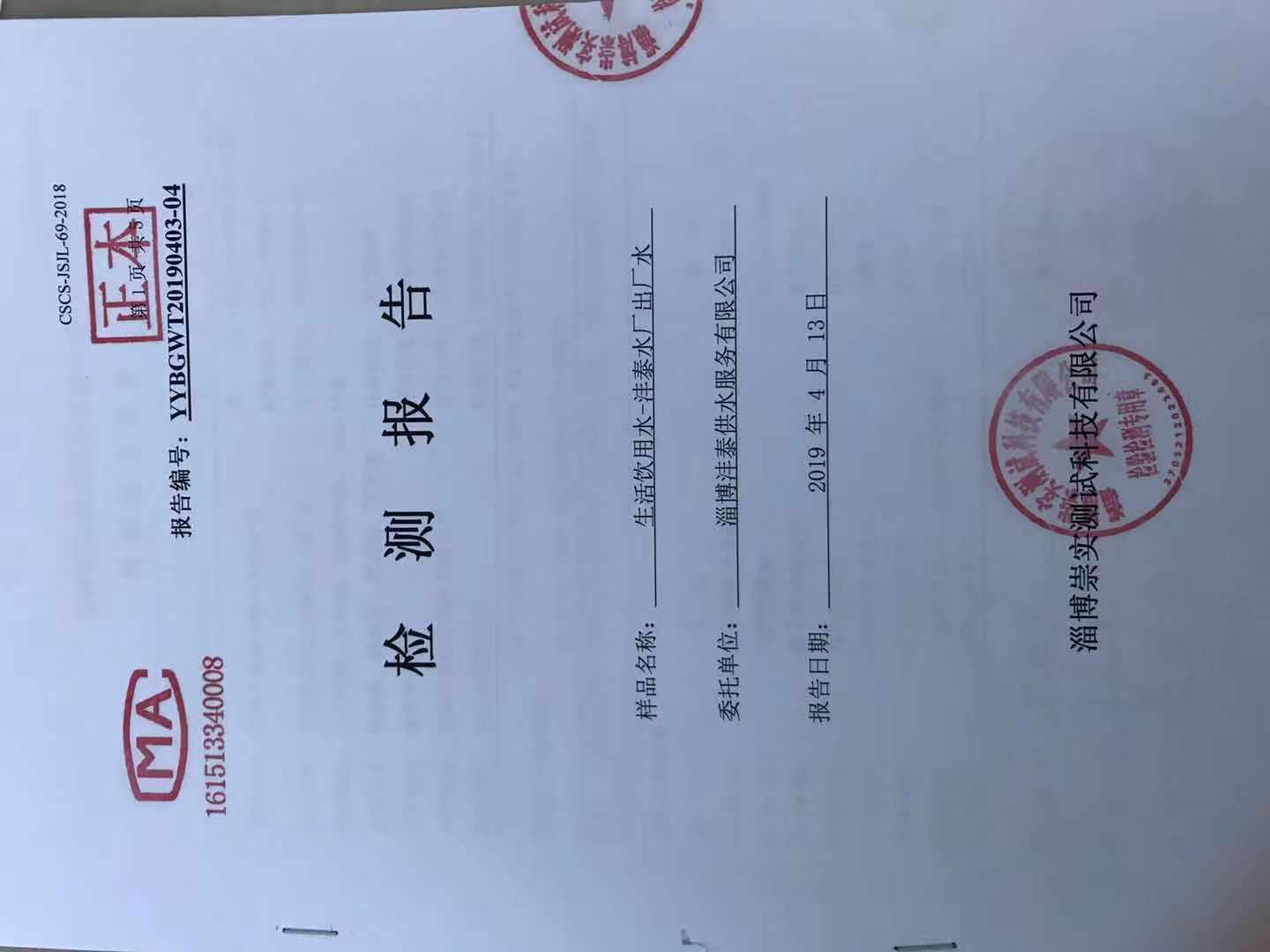 淄博灃泰供水服務(wù)有限公司出廠水月報(bào)表