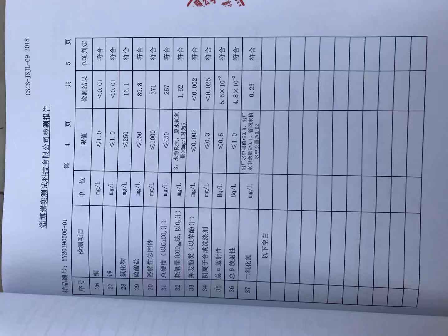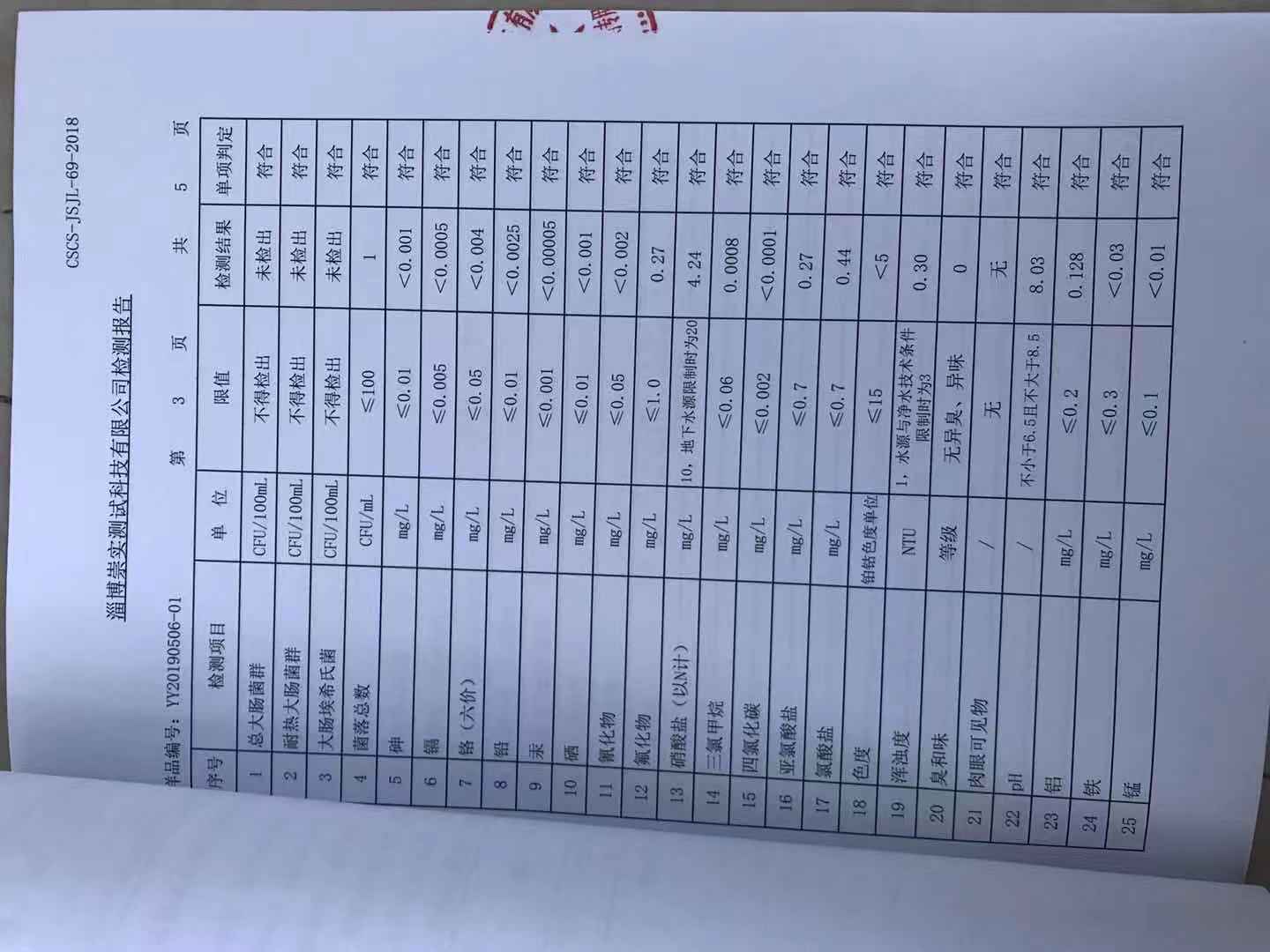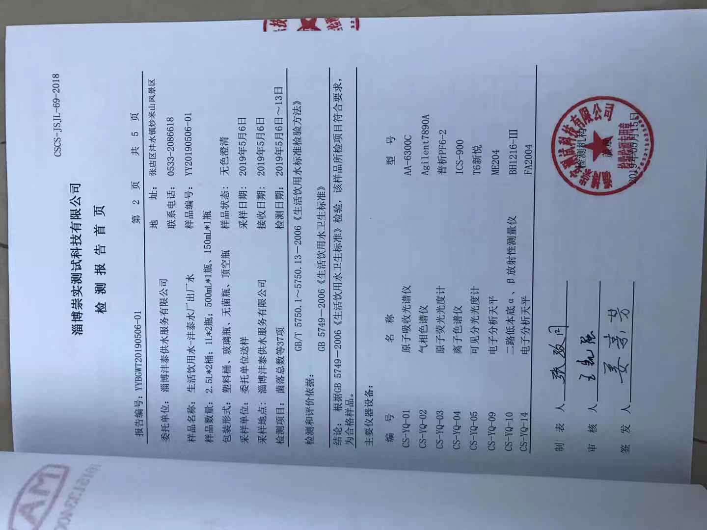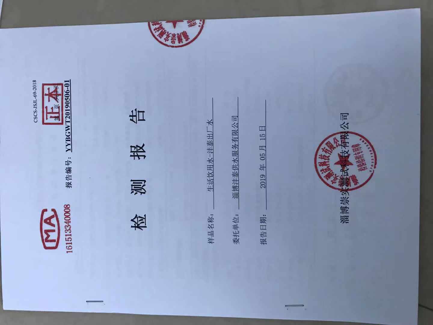 淄博灃泰供水服務(wù)有限公司出廠水月報表