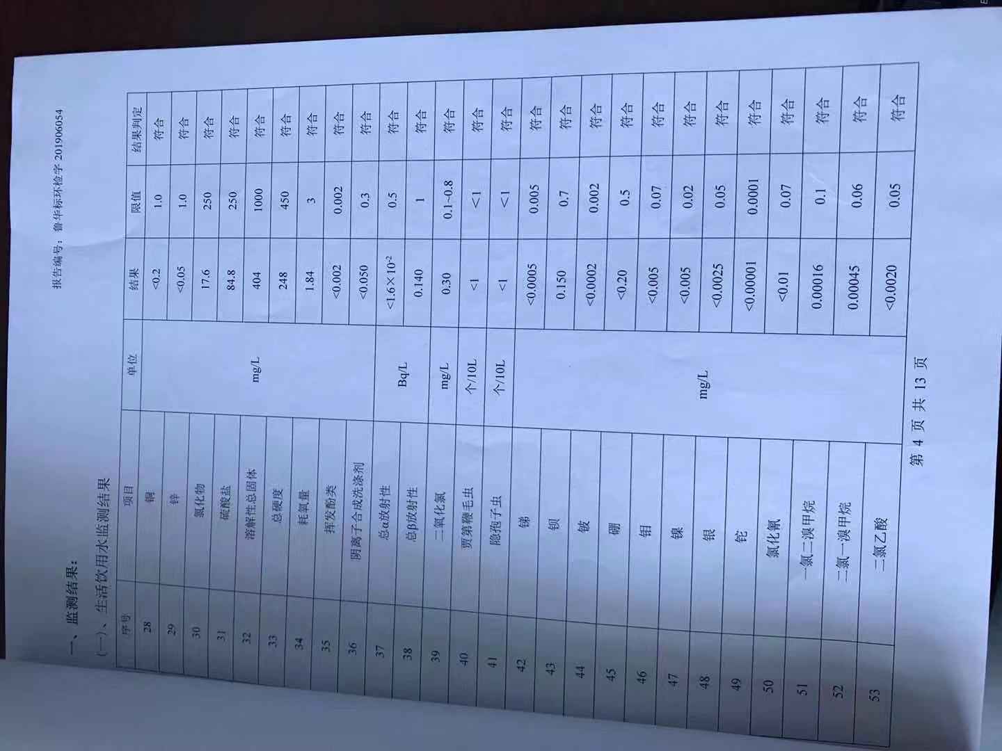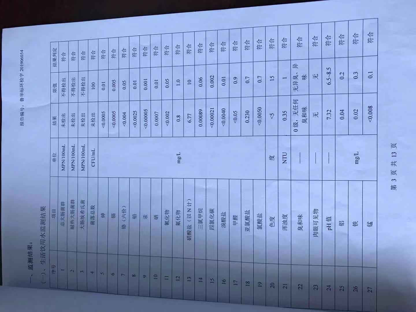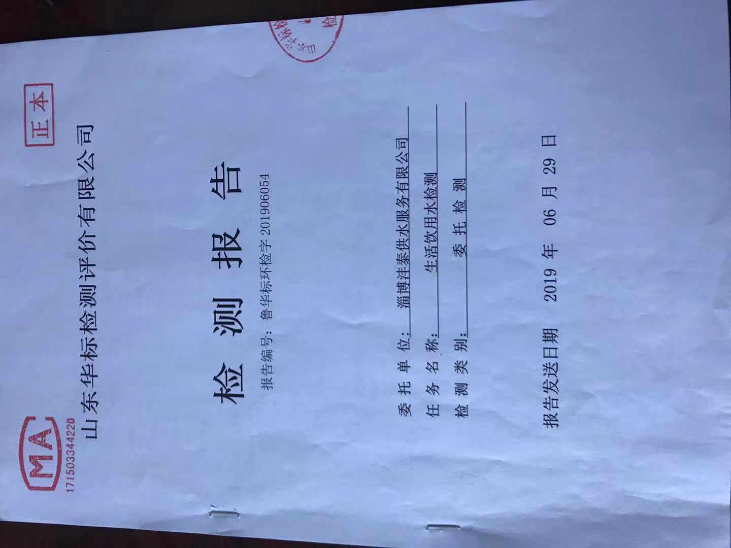 淄博灃泰供水服務(wù)有限公司出廠水月報(bào)表