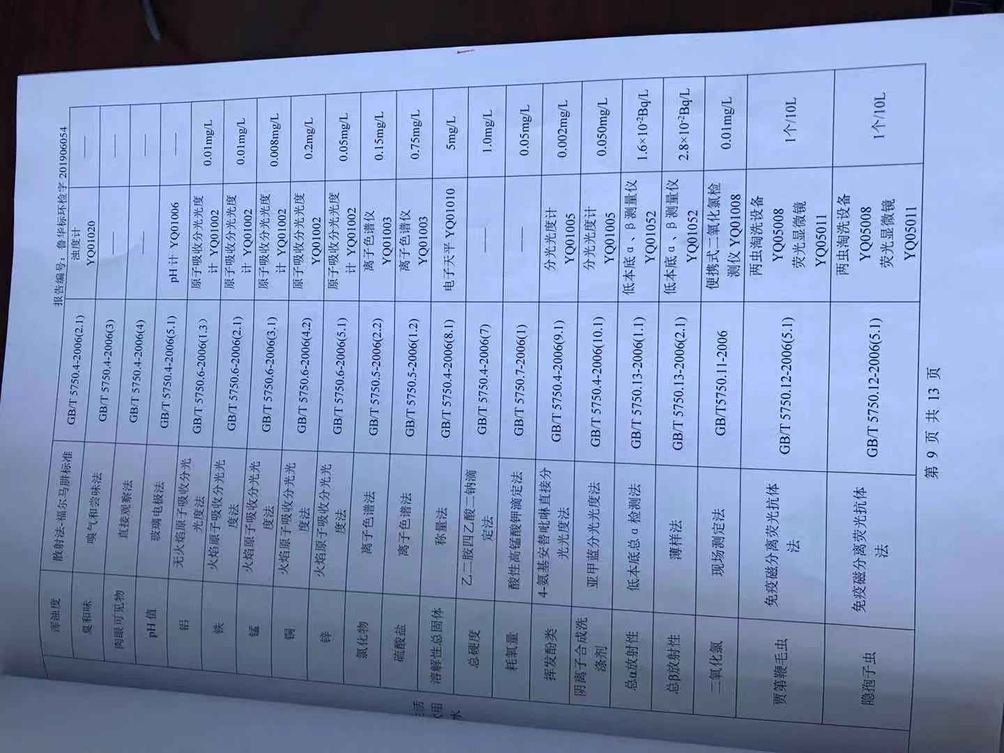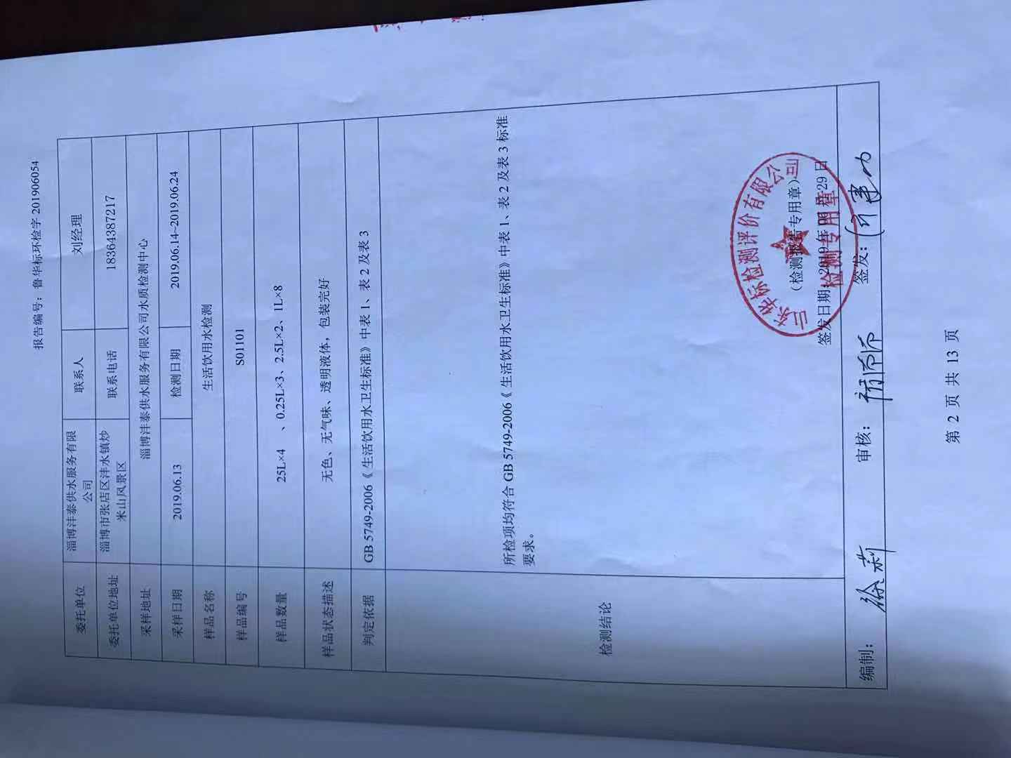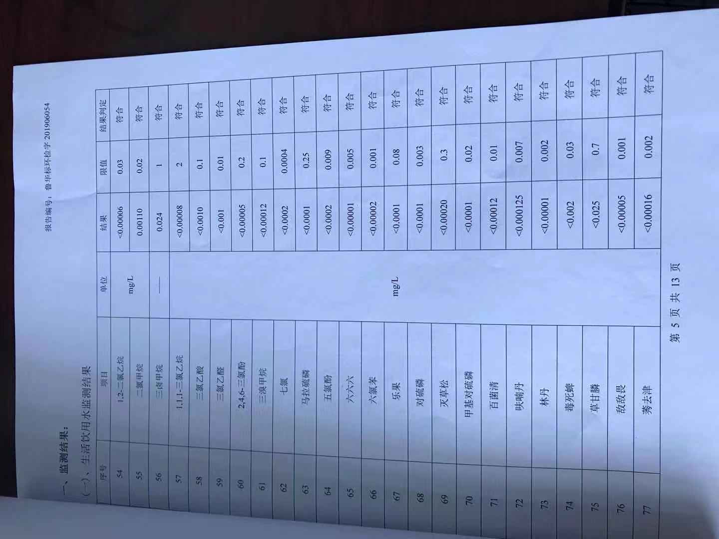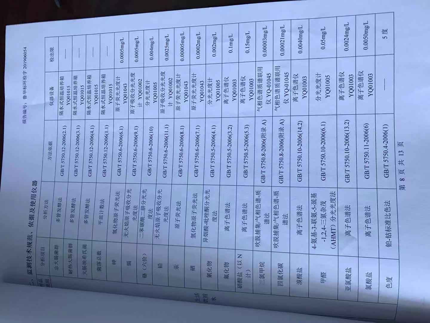 淄博灃泰供水服務(wù)有限公司出廠水月報(bào)表