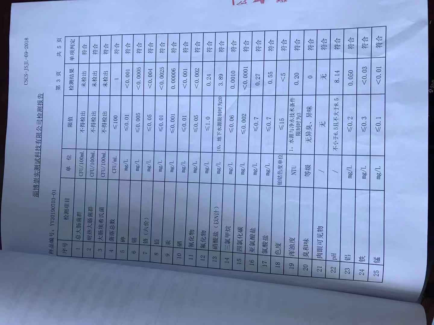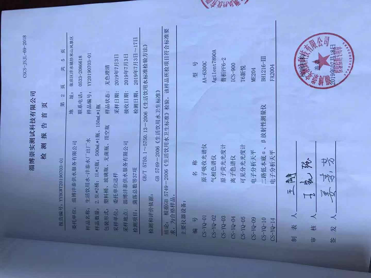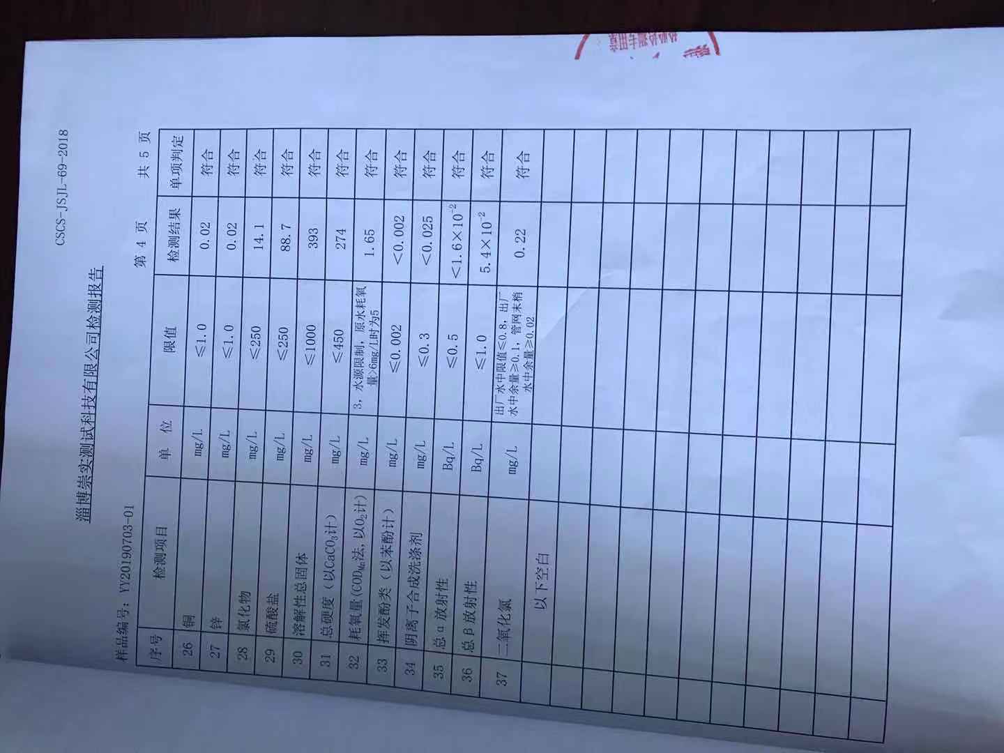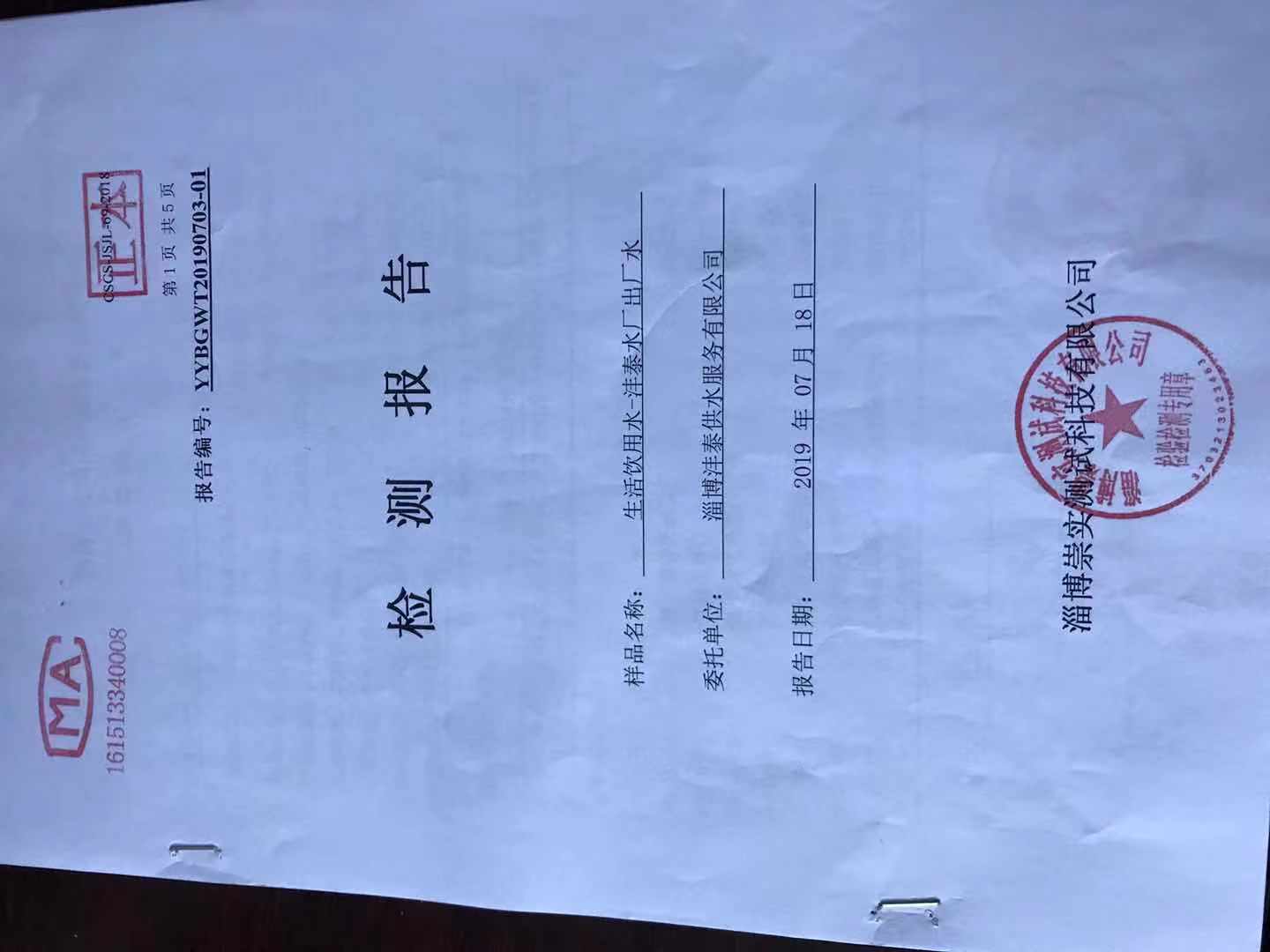 淄博灃泰供水服務(wù)有限公司出廠水月報(bào)表