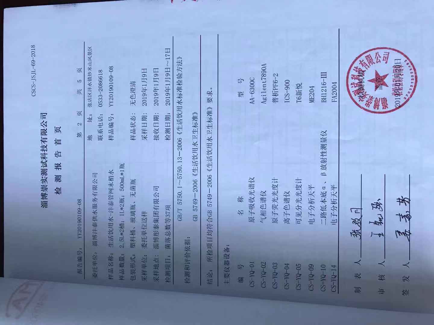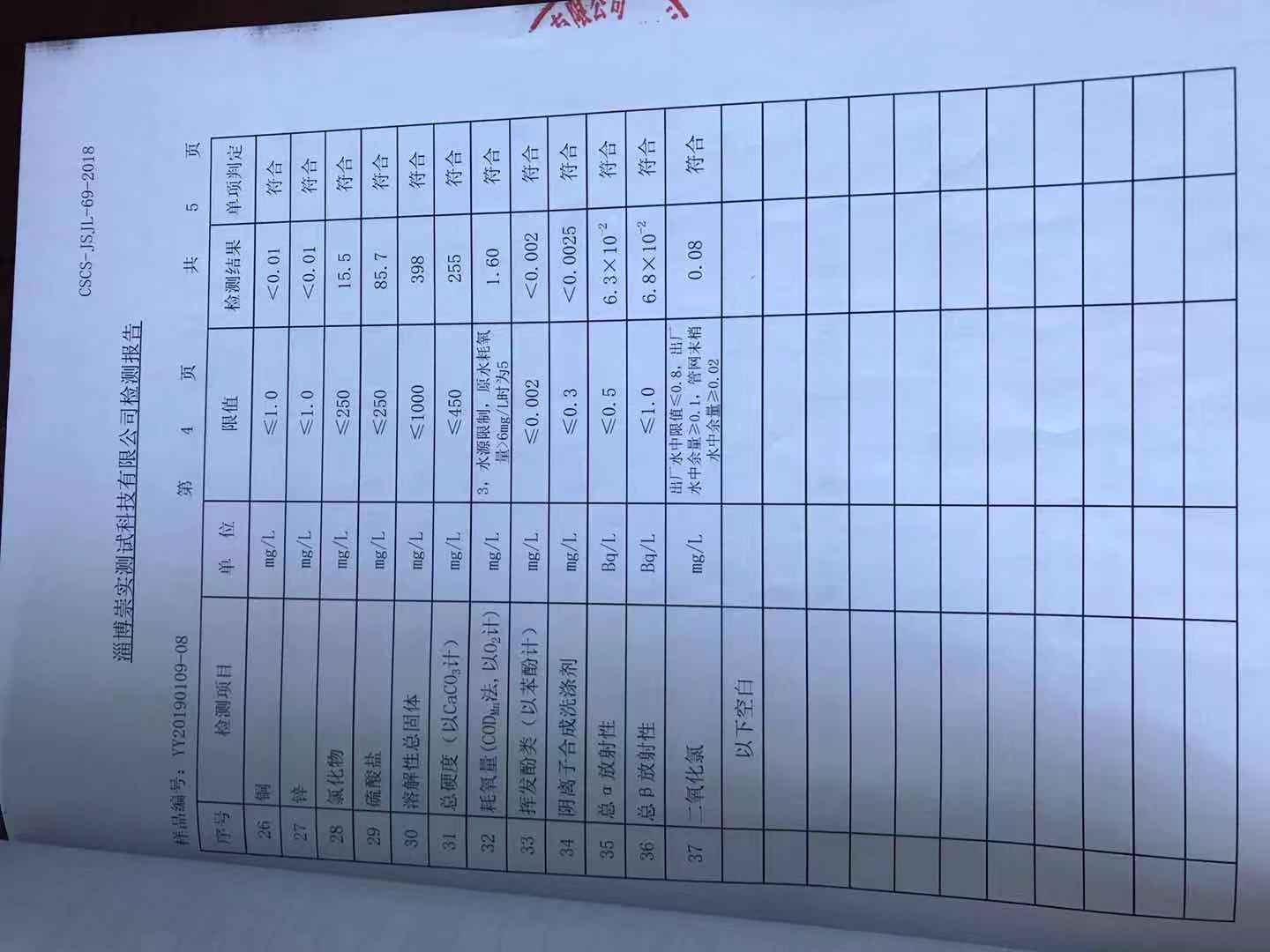 淄博灃泰供水服務(wù)有限公司末梢水月報(bào)表