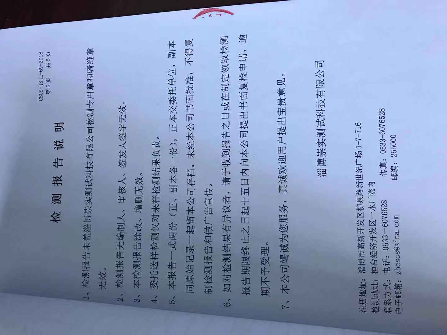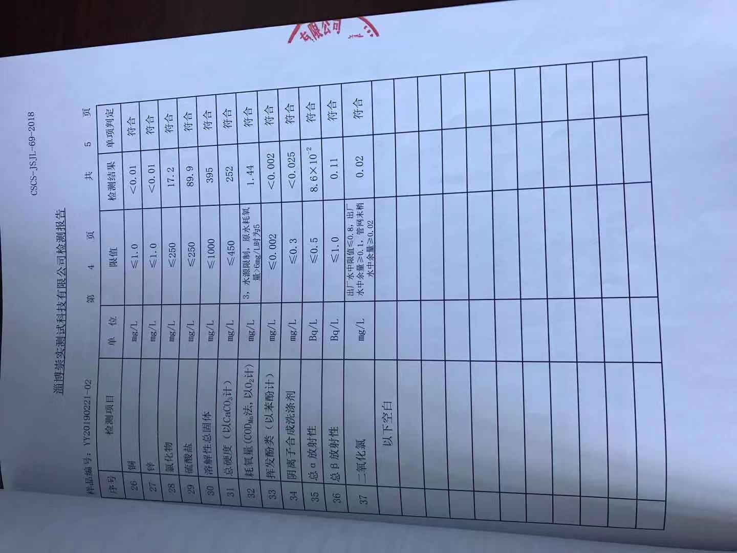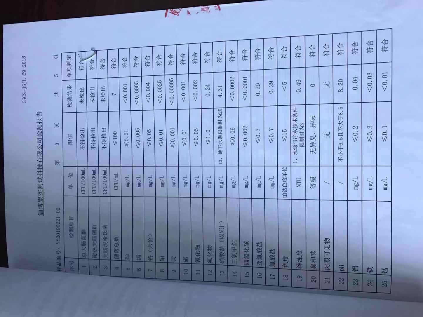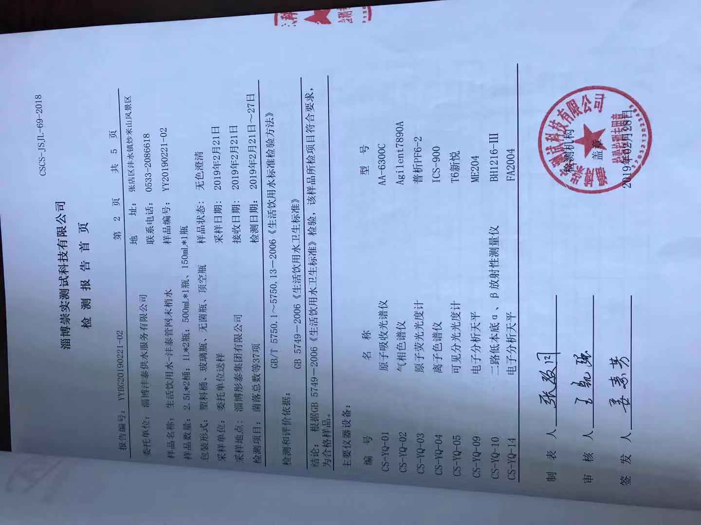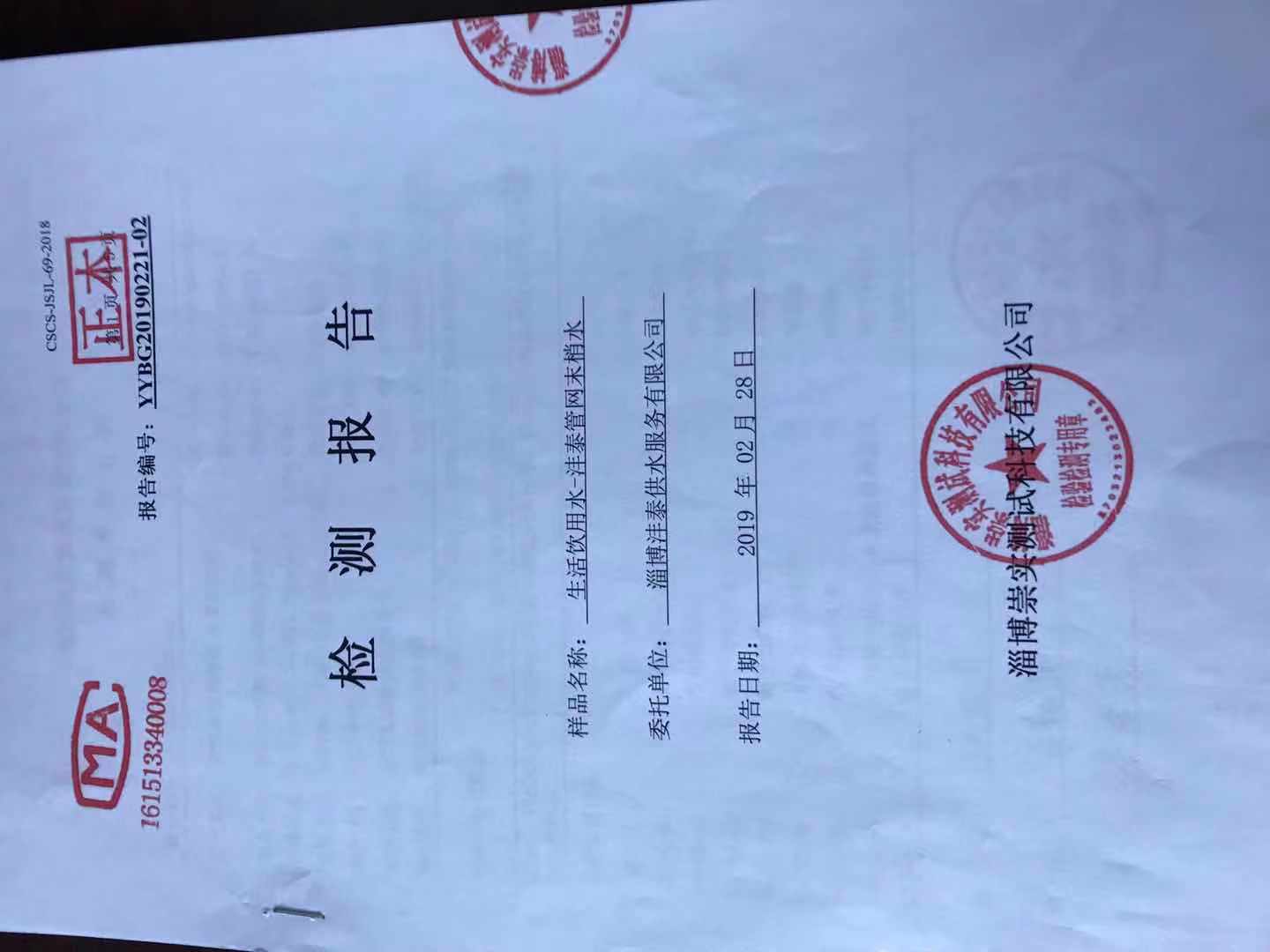 淄博灃泰供水服務(wù)有限公司末梢水月報表