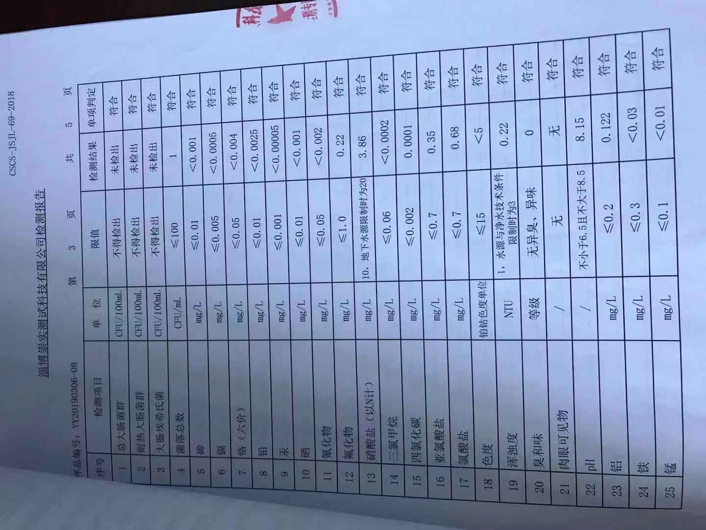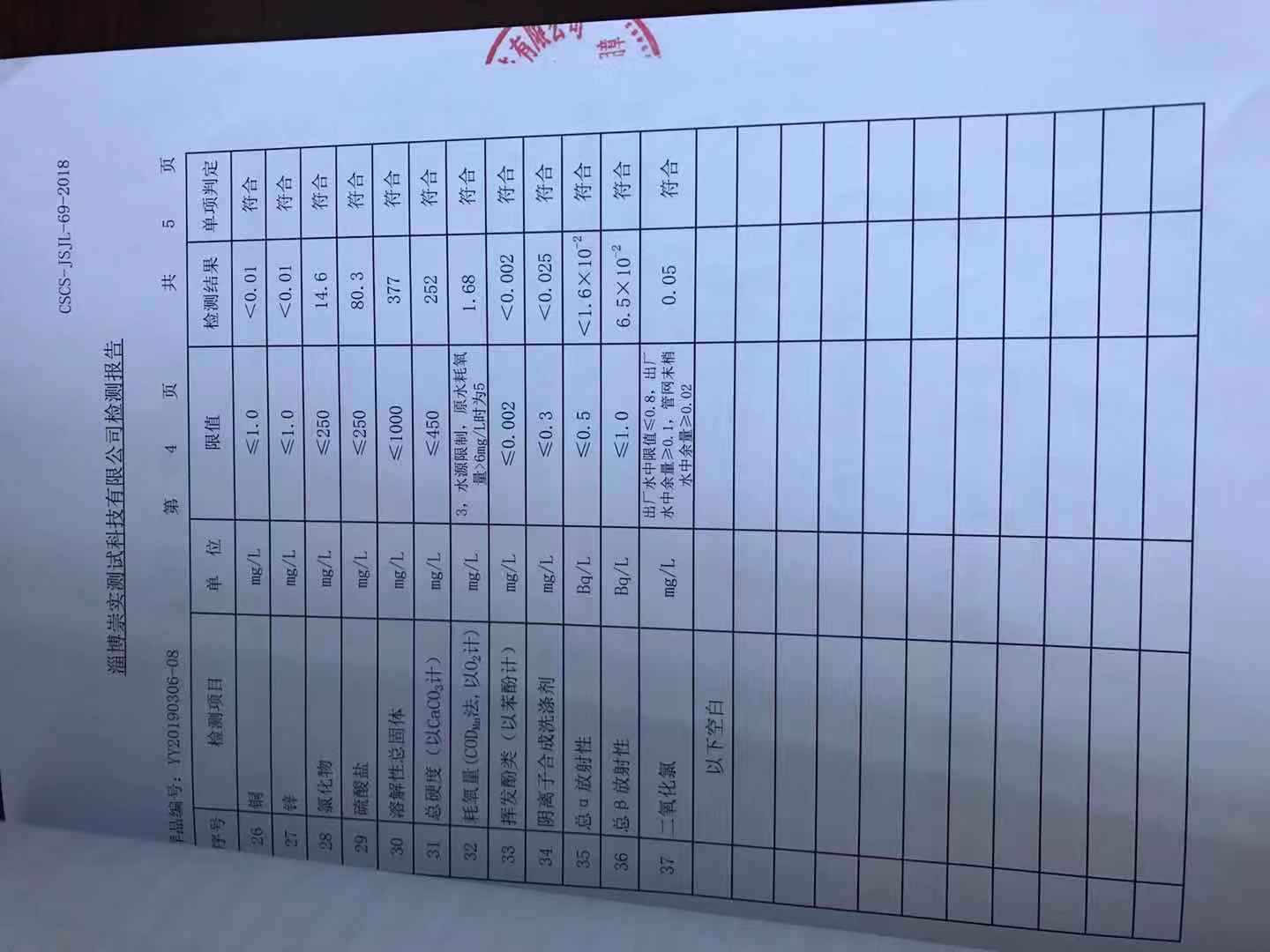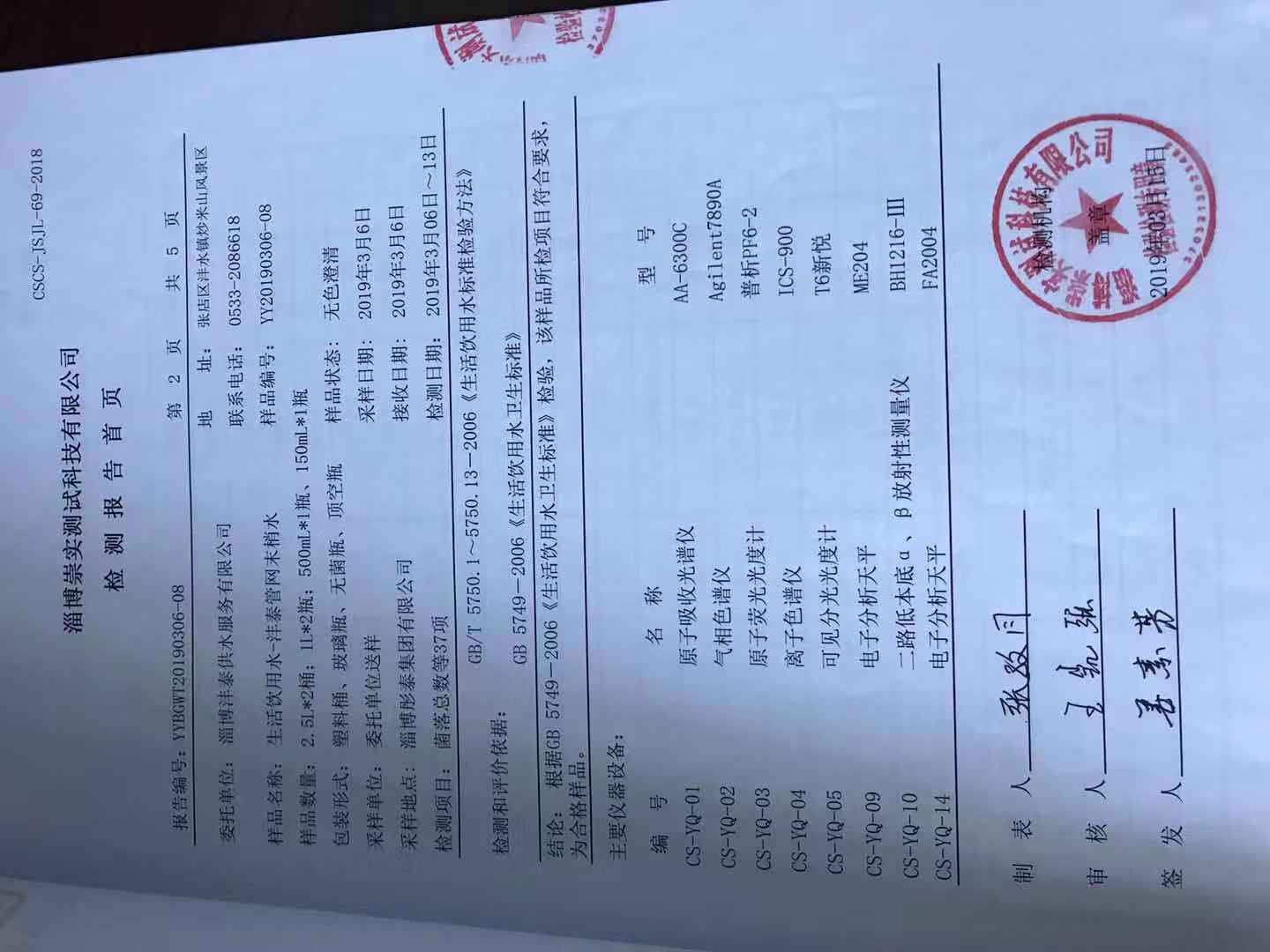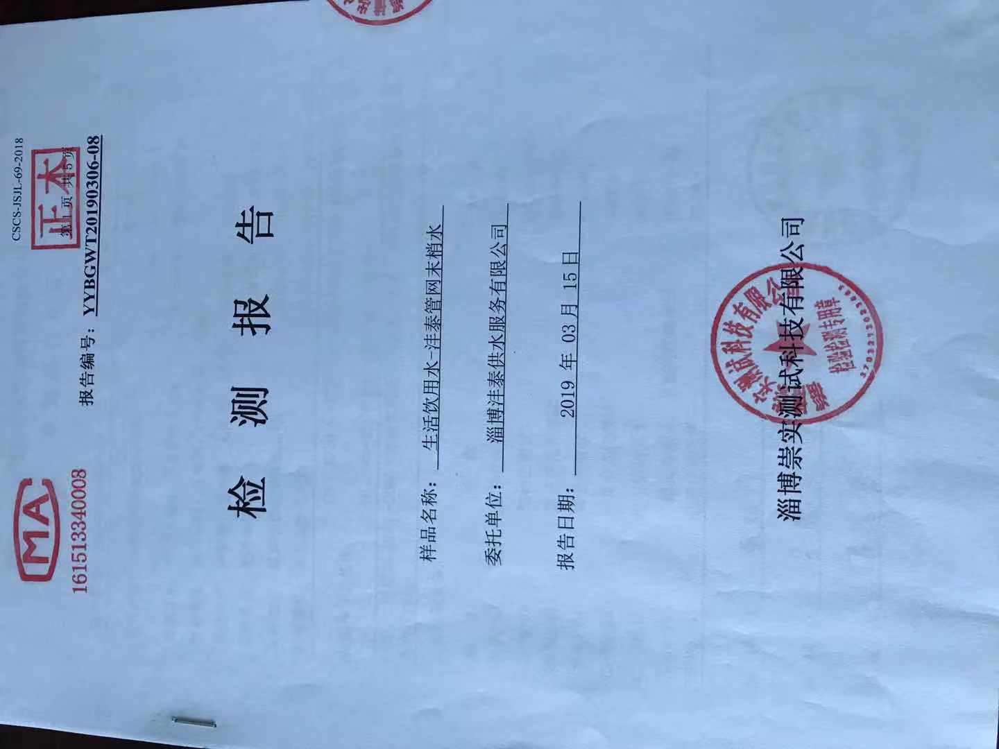 淄博灃泰供水服務(wù)有限公司末梢水月報表