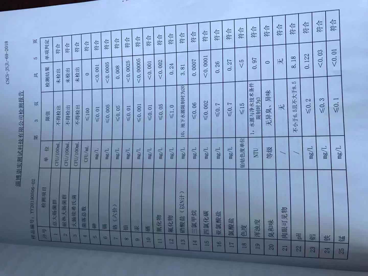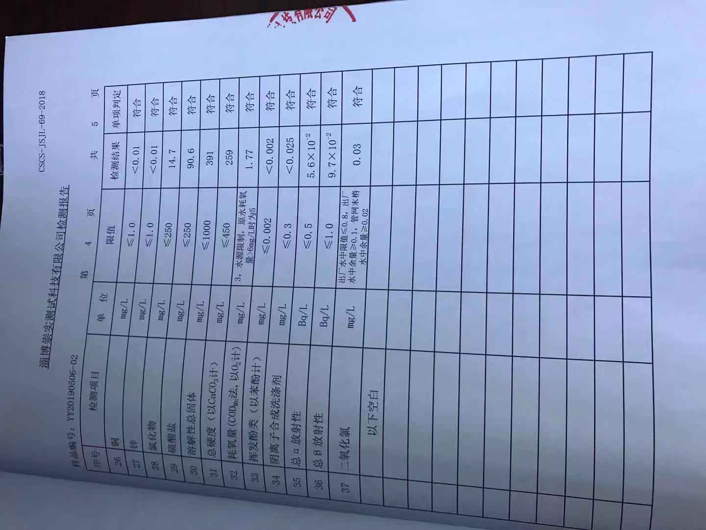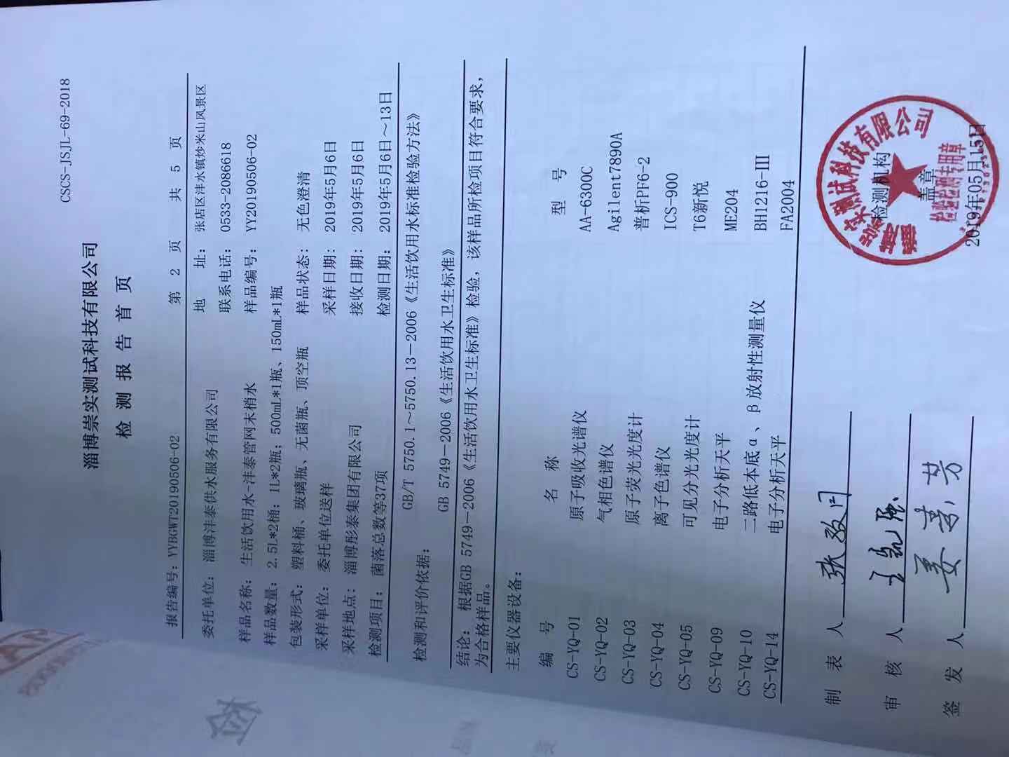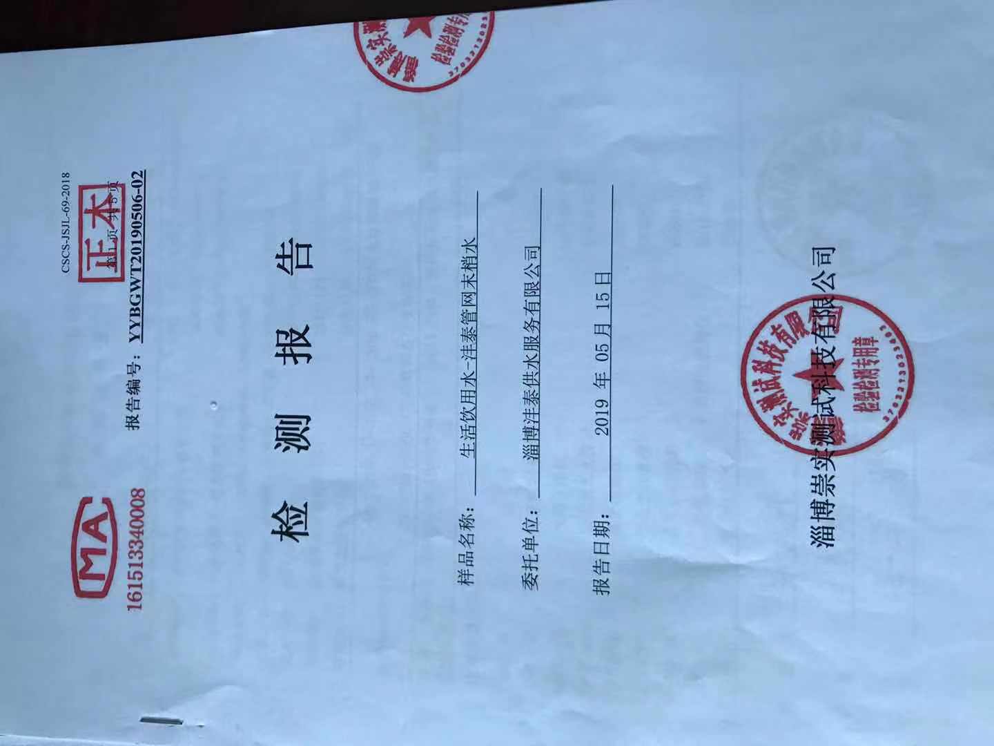 淄博灃泰供水服務有限公司末梢水月報表