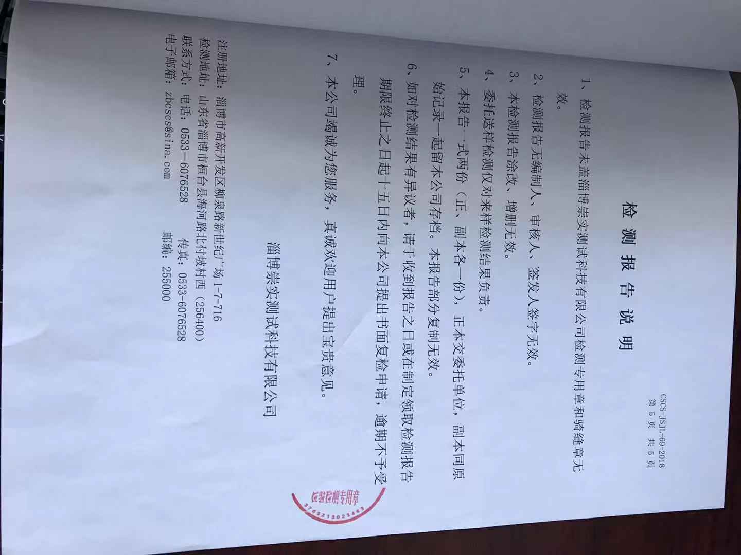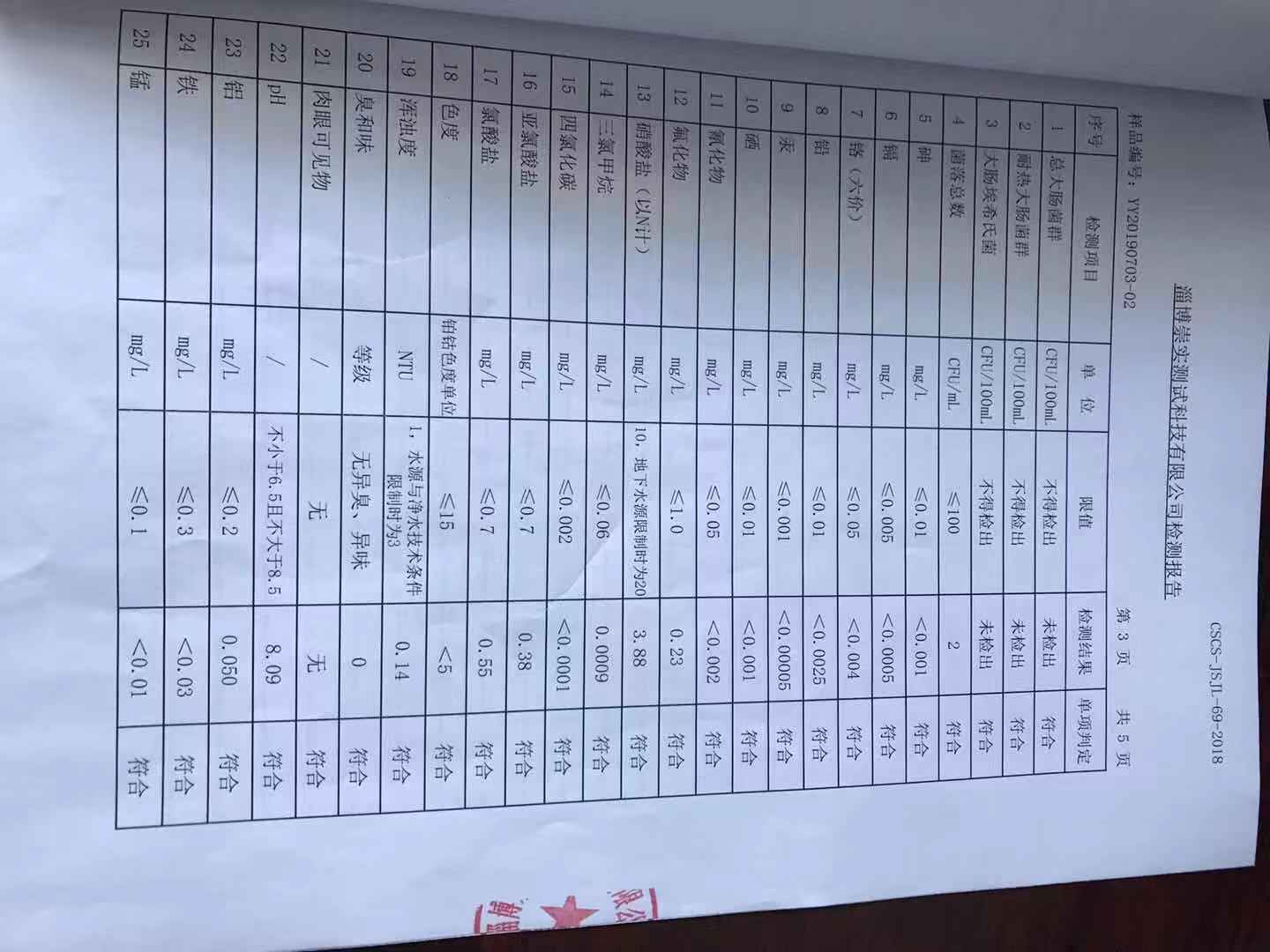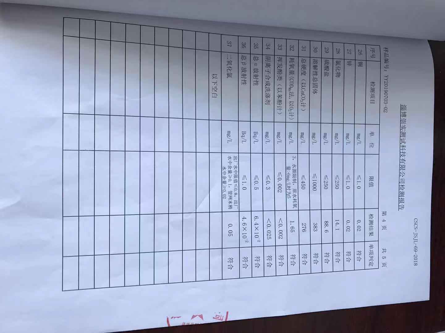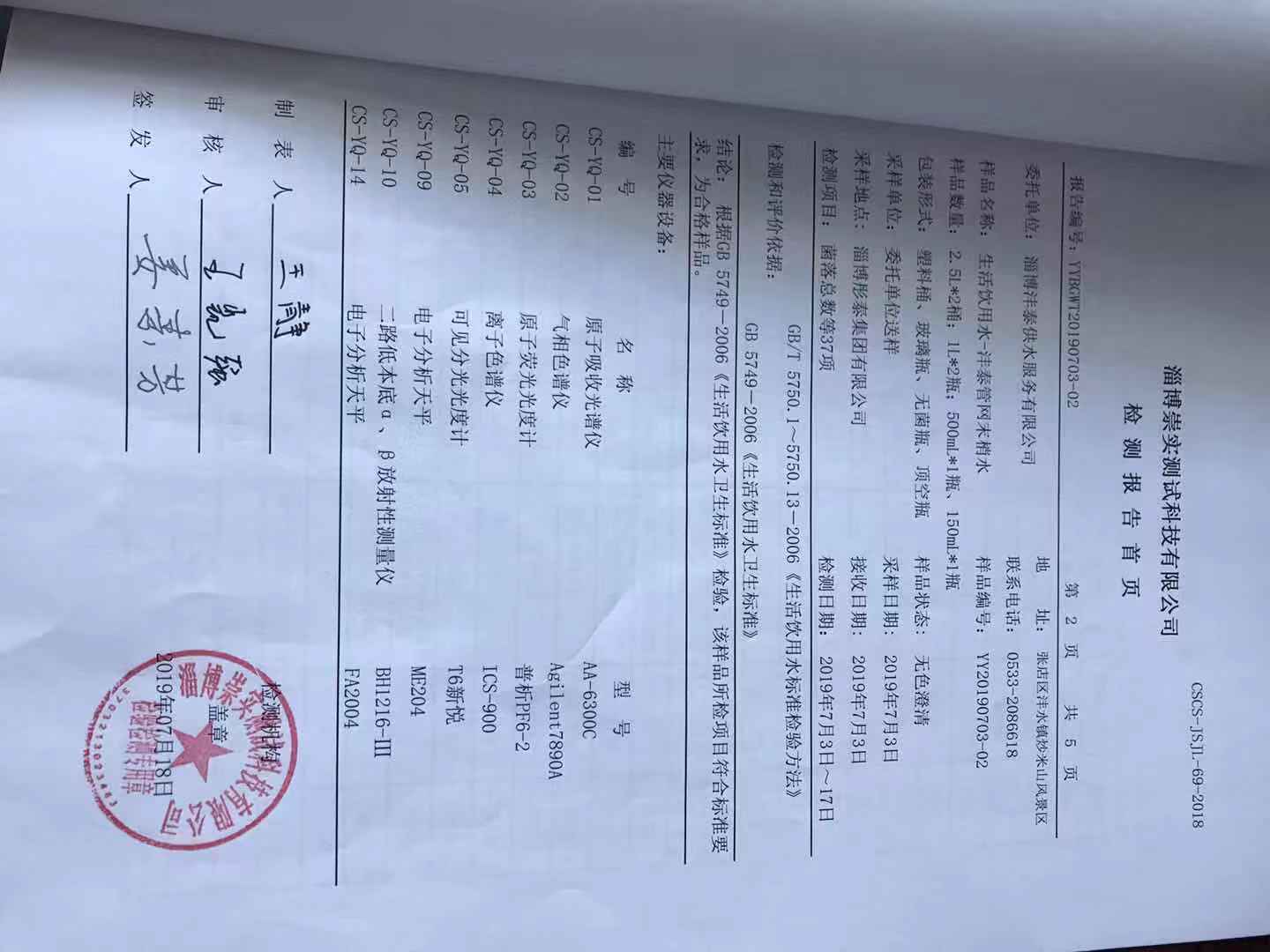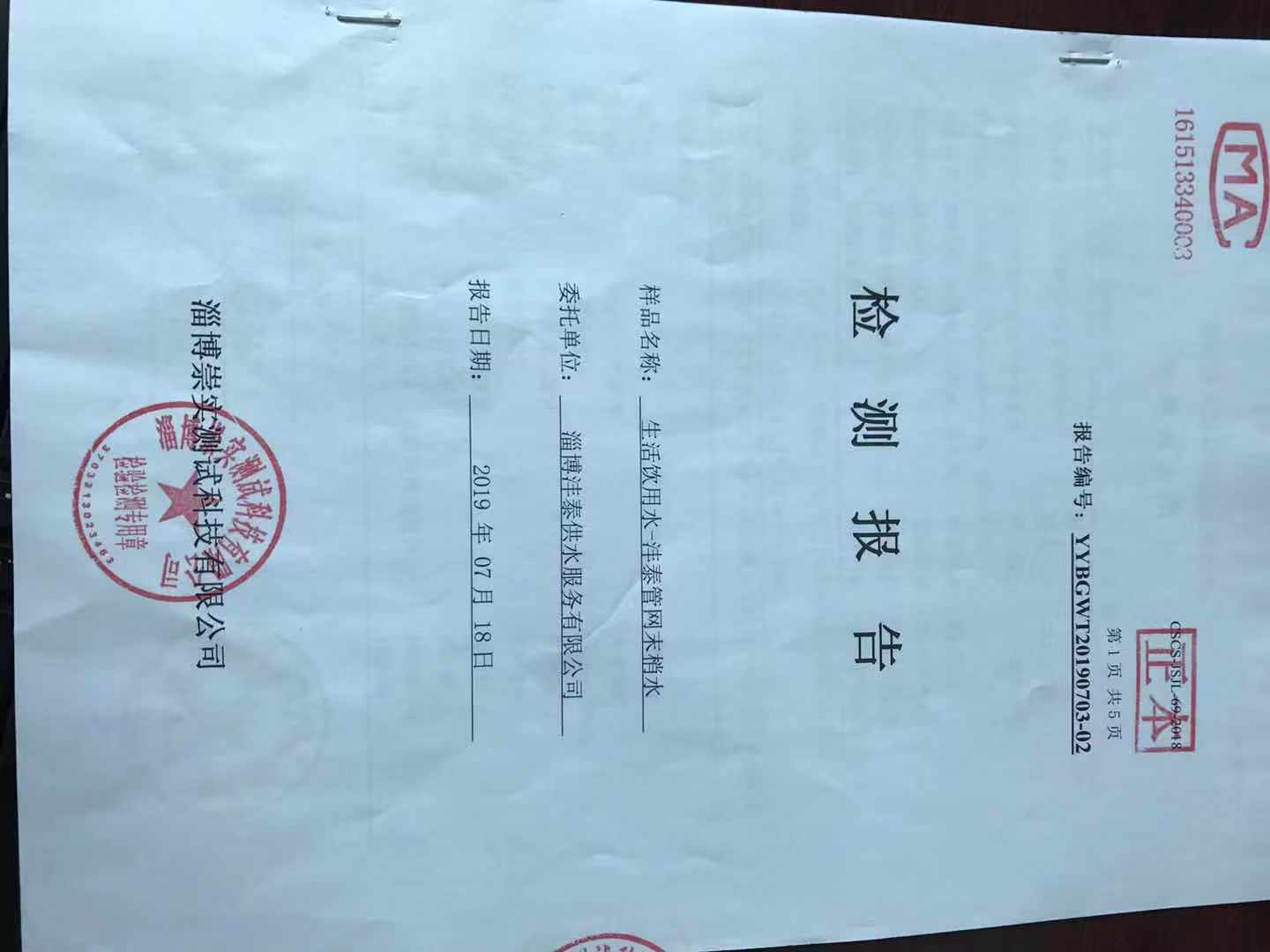 淄博灃泰供水服務(wù)有限公司末梢水月報(bào)表