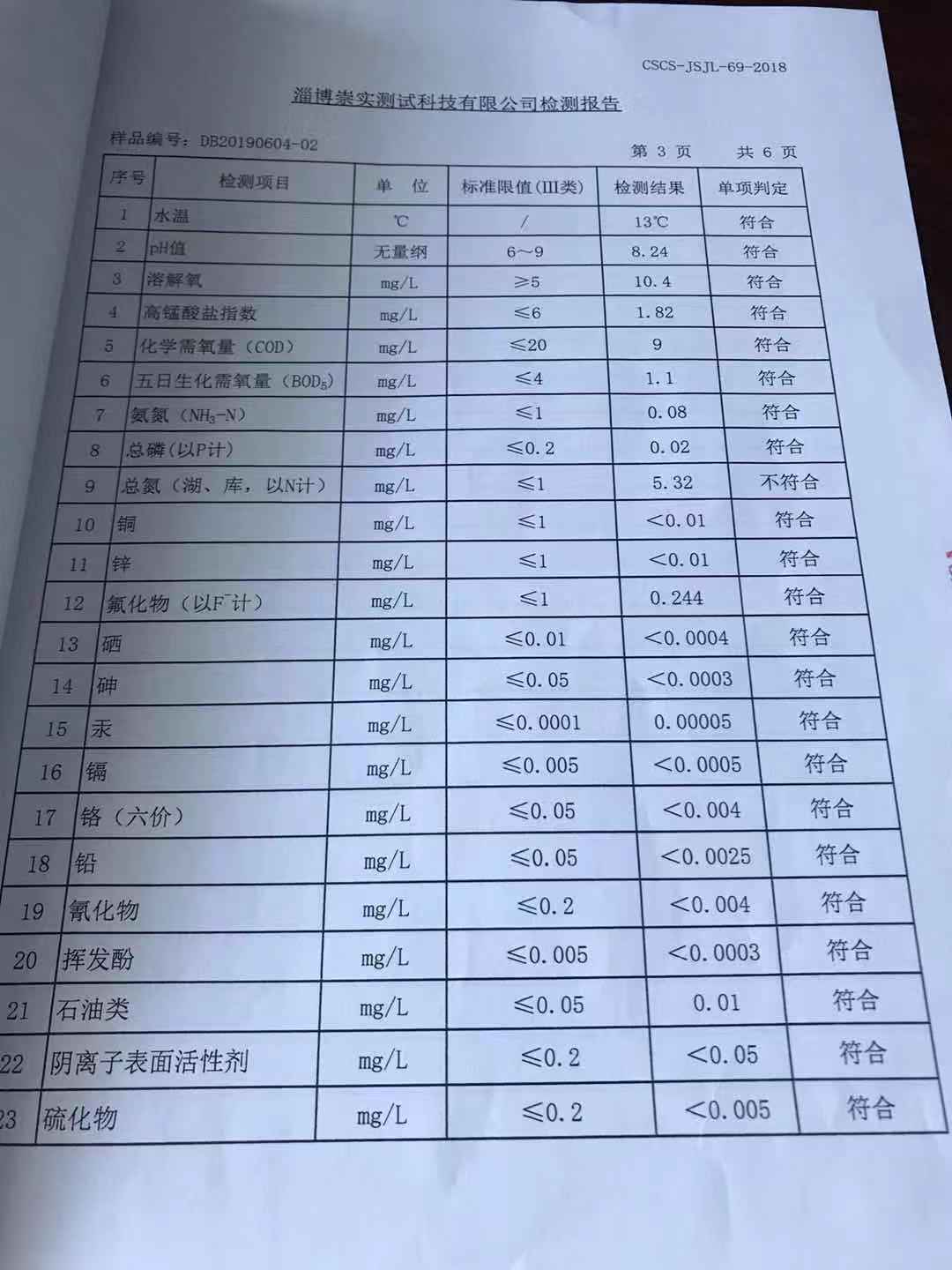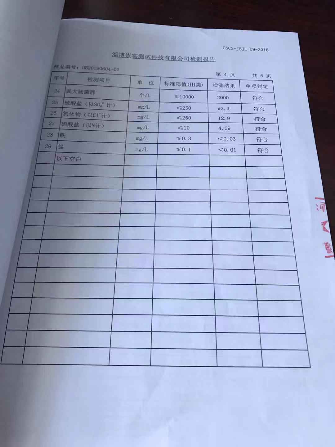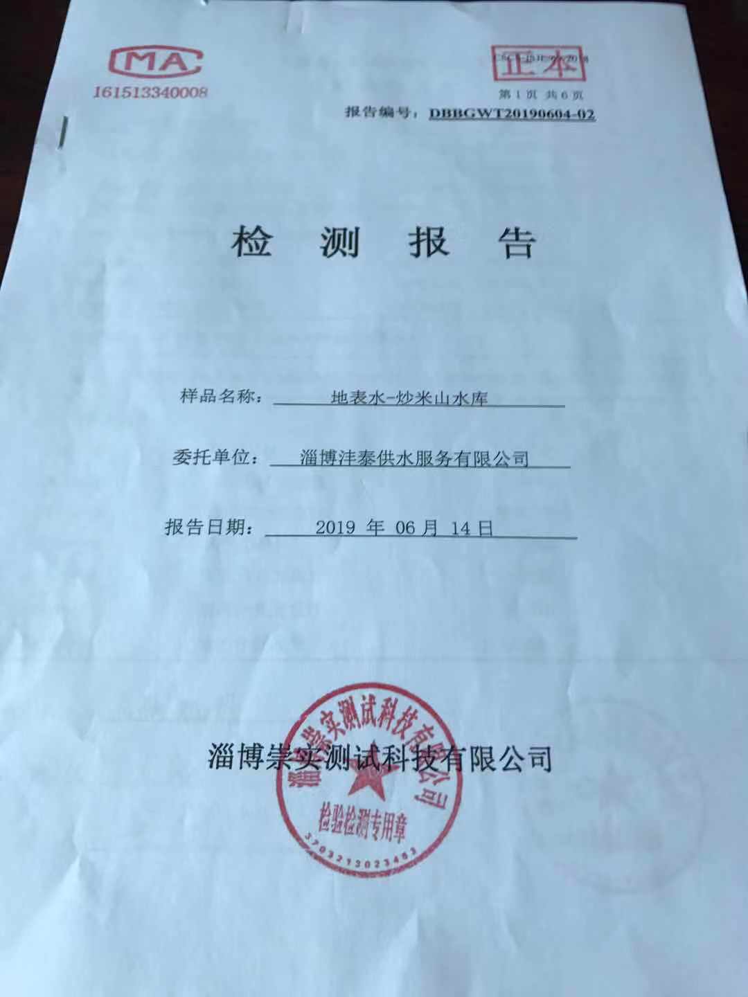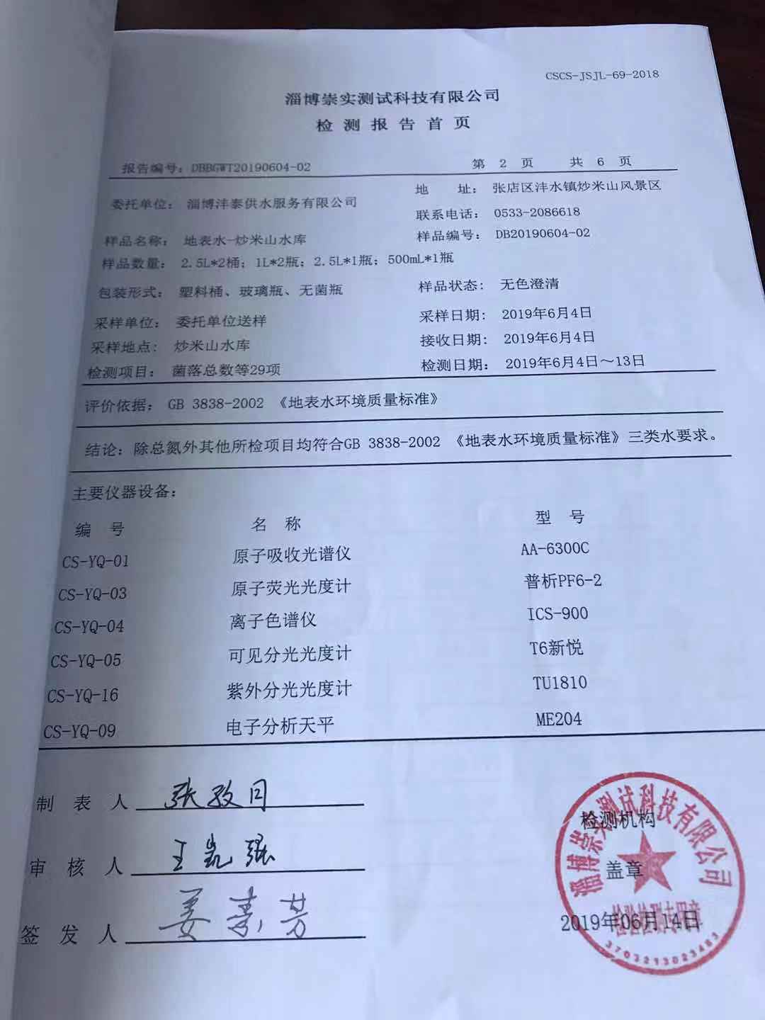 淄博灃泰供水服務(wù)有限公司地表水月報(bào)表