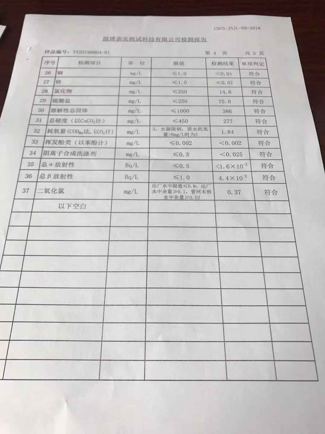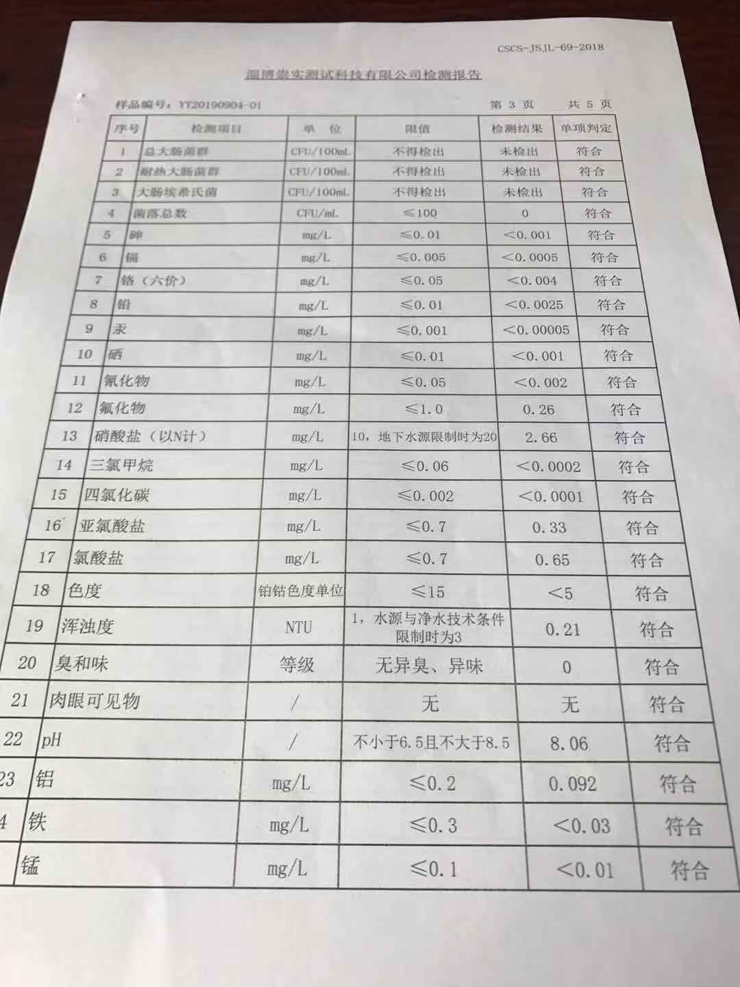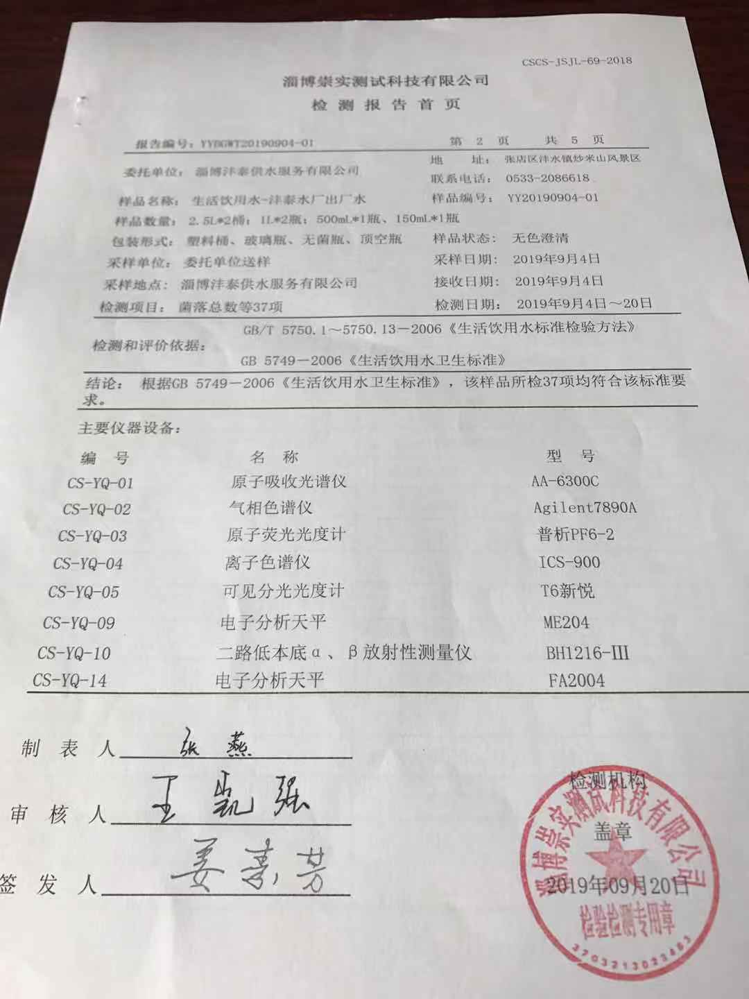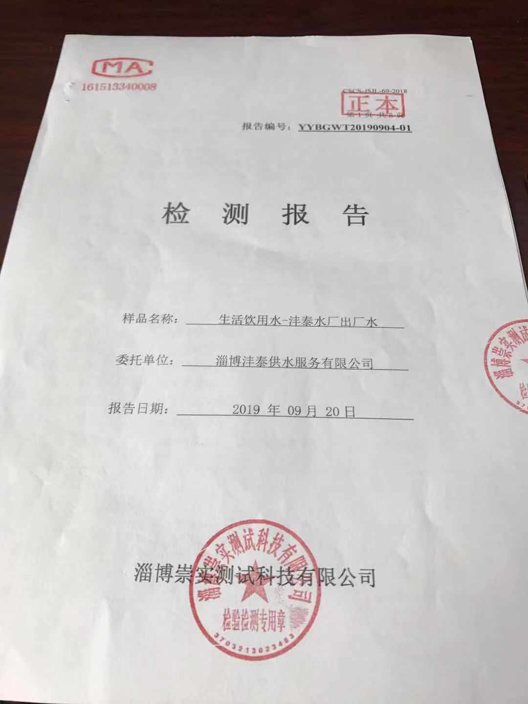 淄博灃泰供水服務(wù)有限公司出廠水月報(bào)表