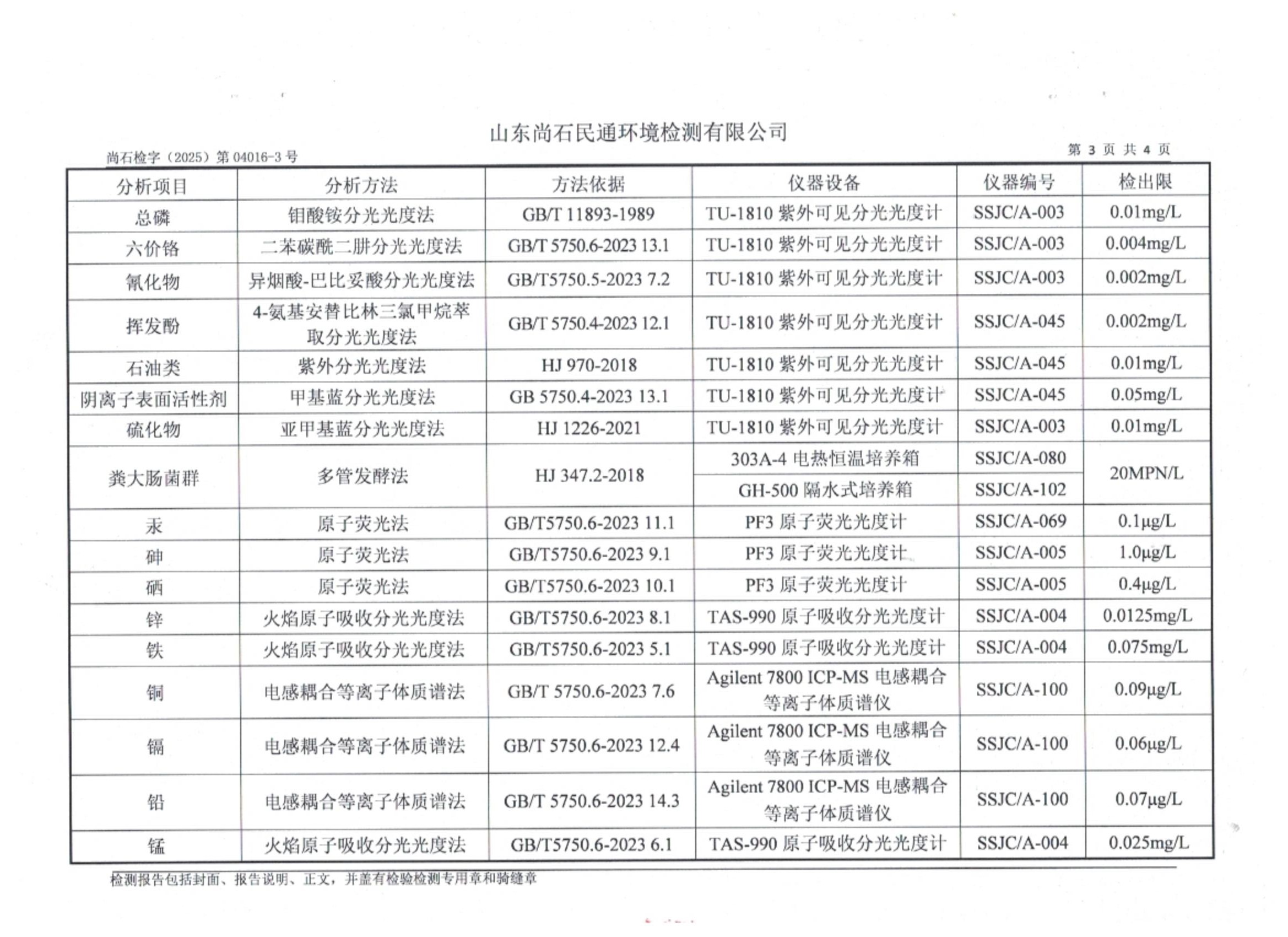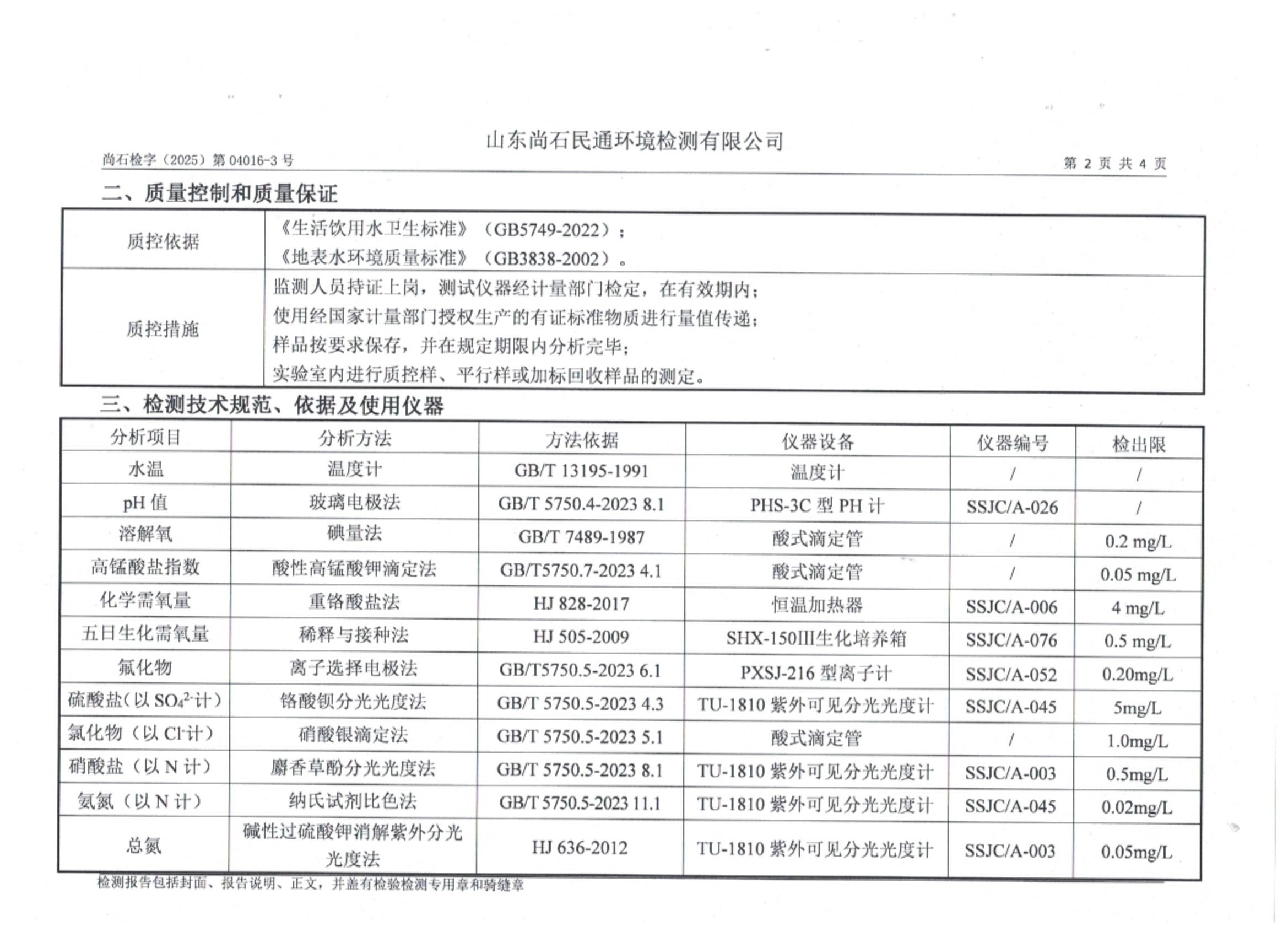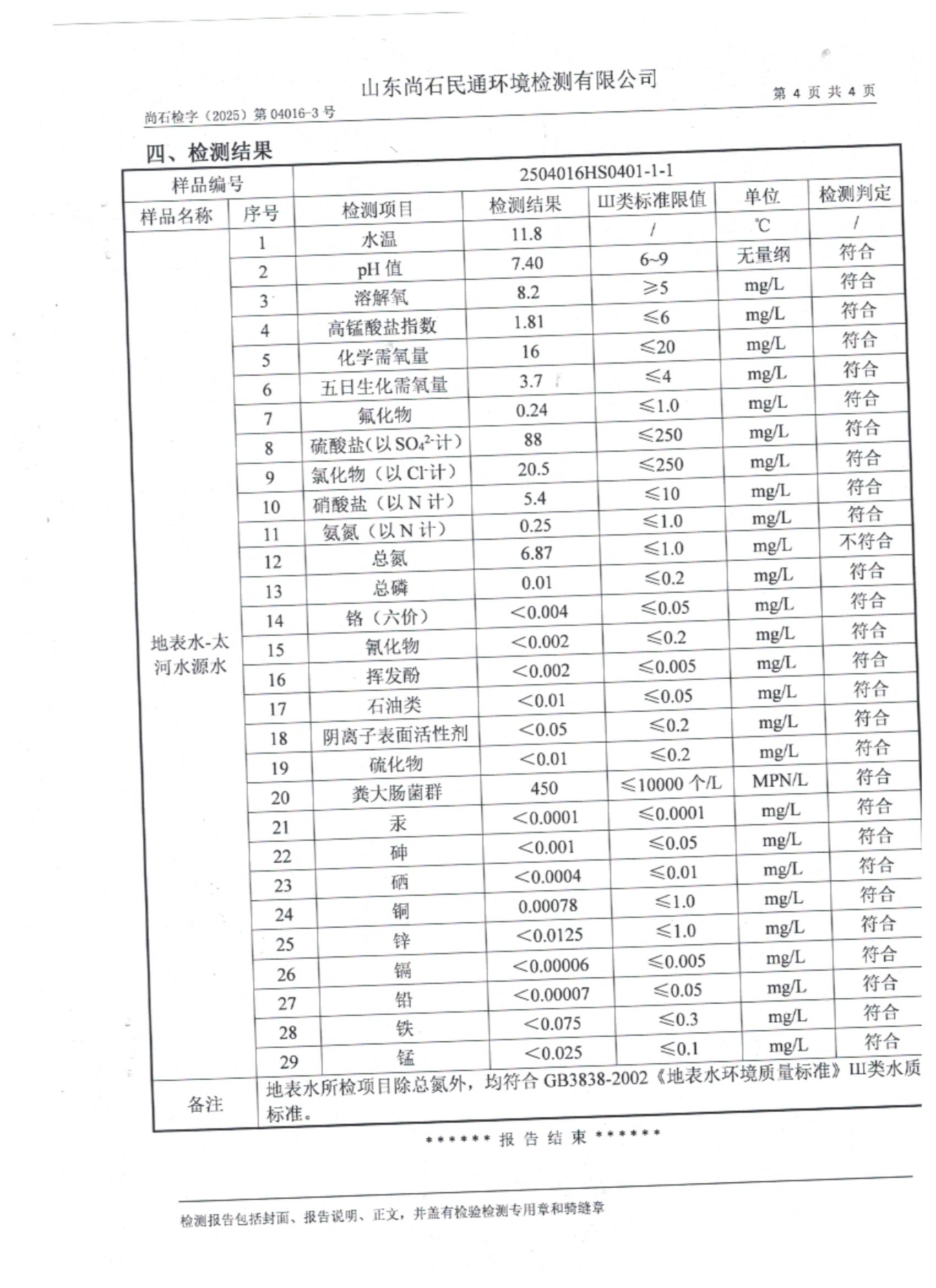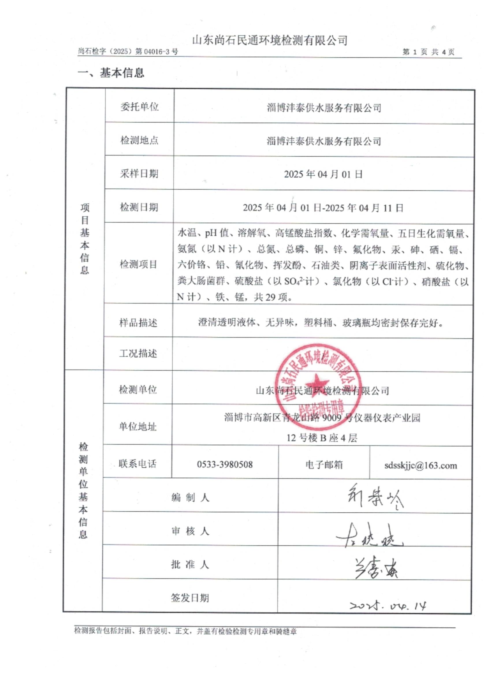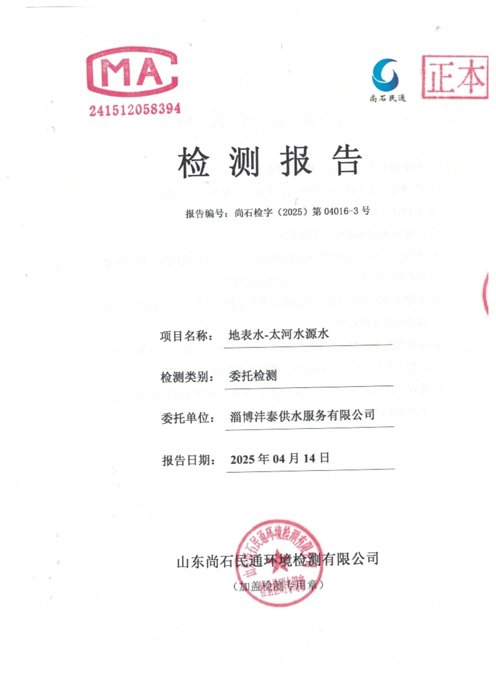 淄博灃泰供水服務(wù)有限公司地表水月檢報(bào)告