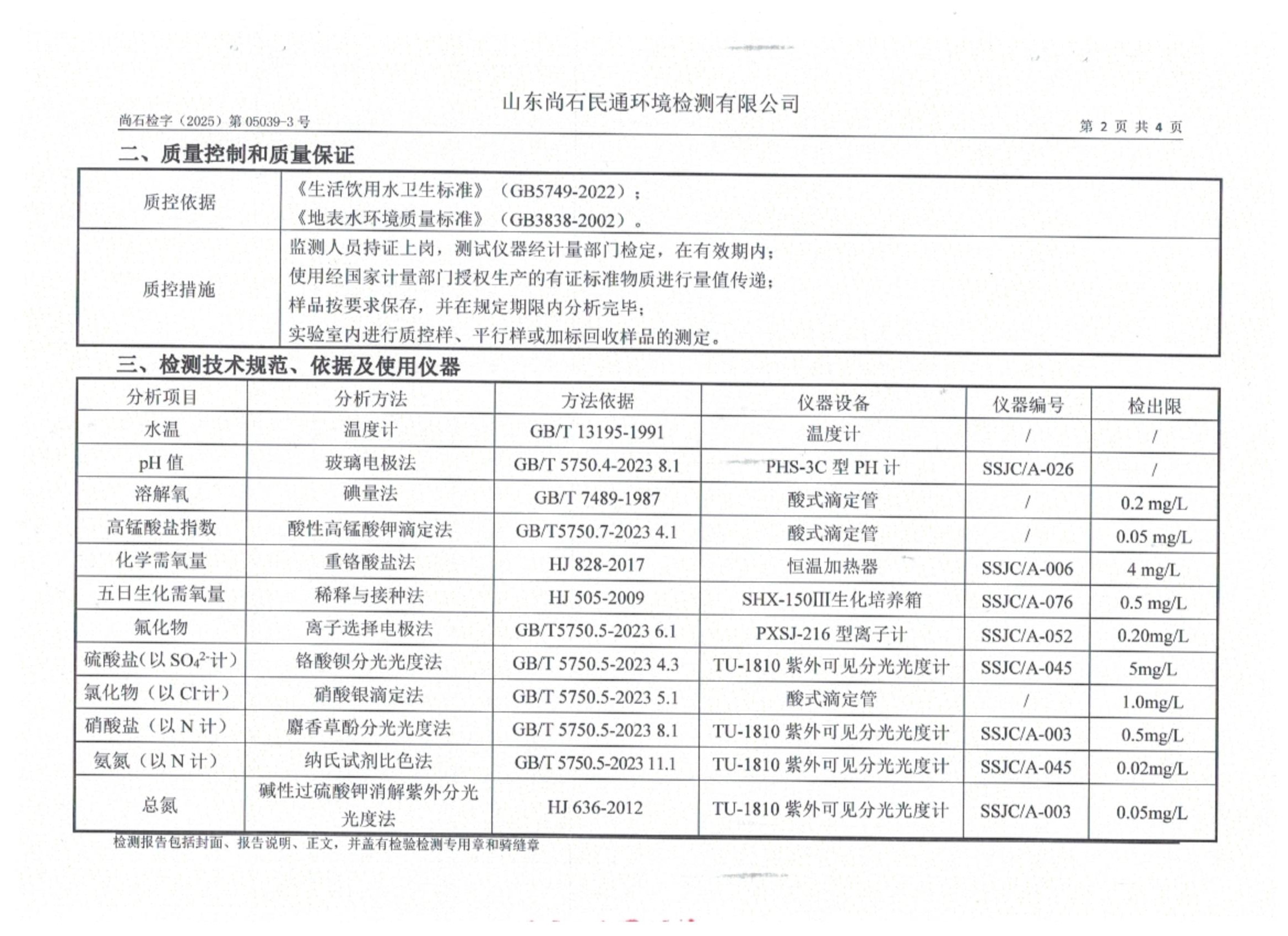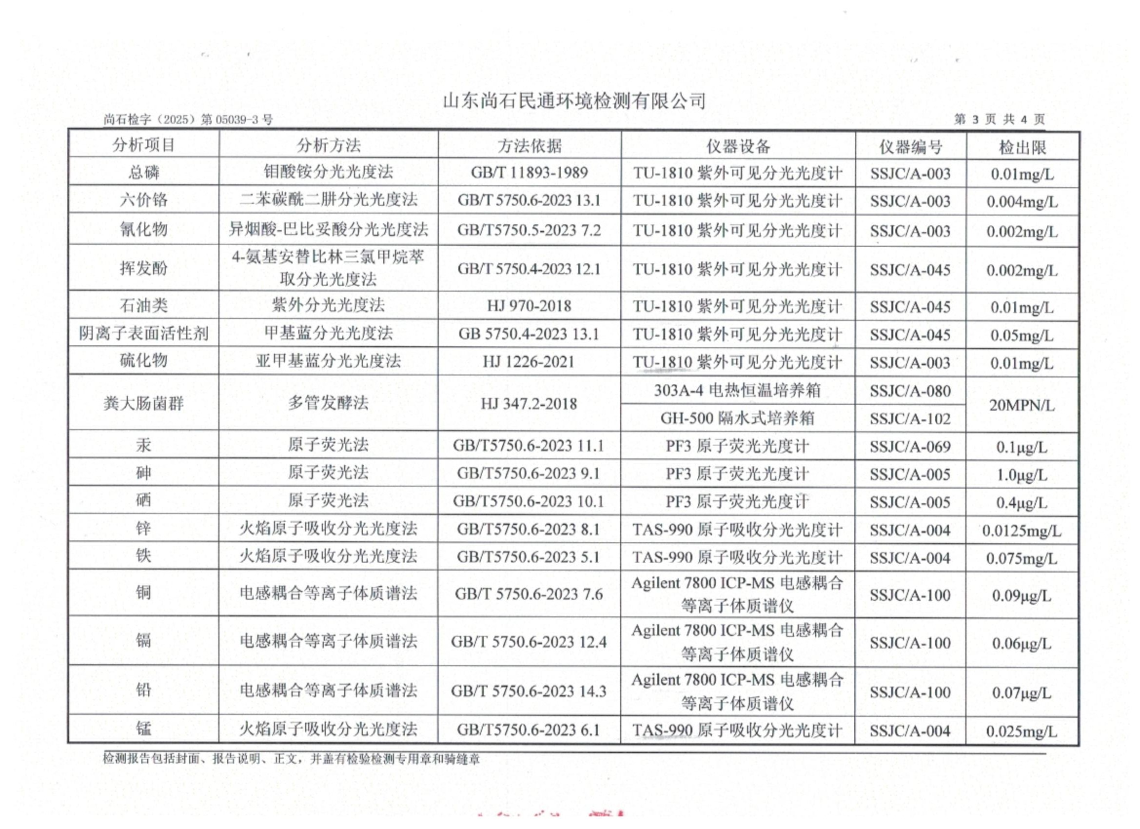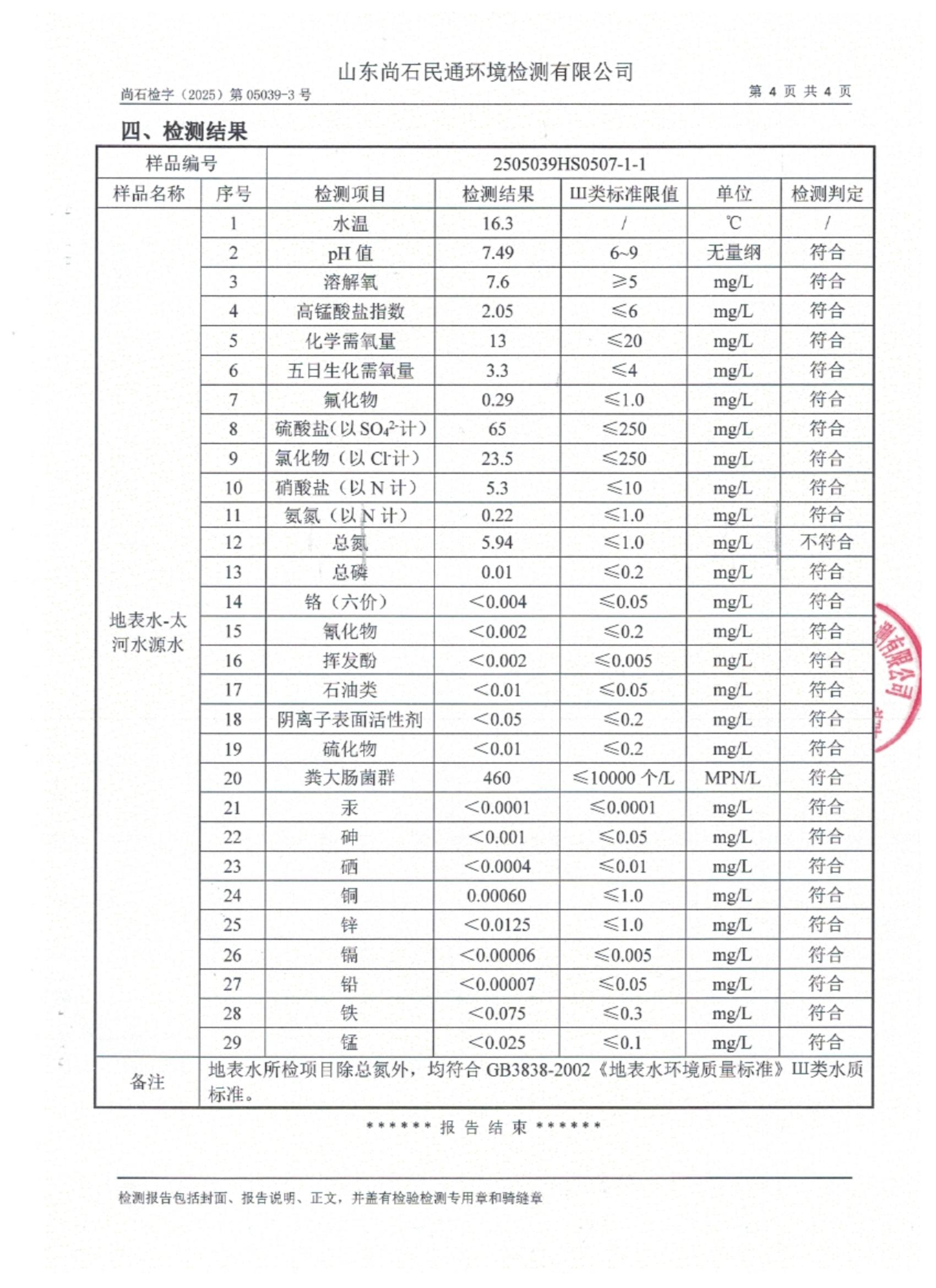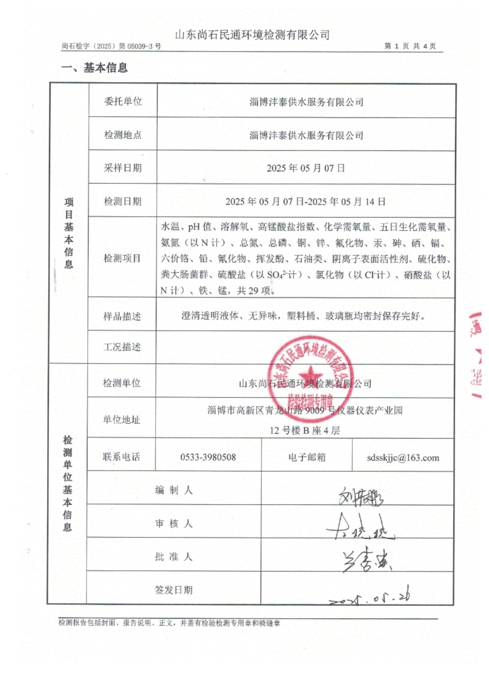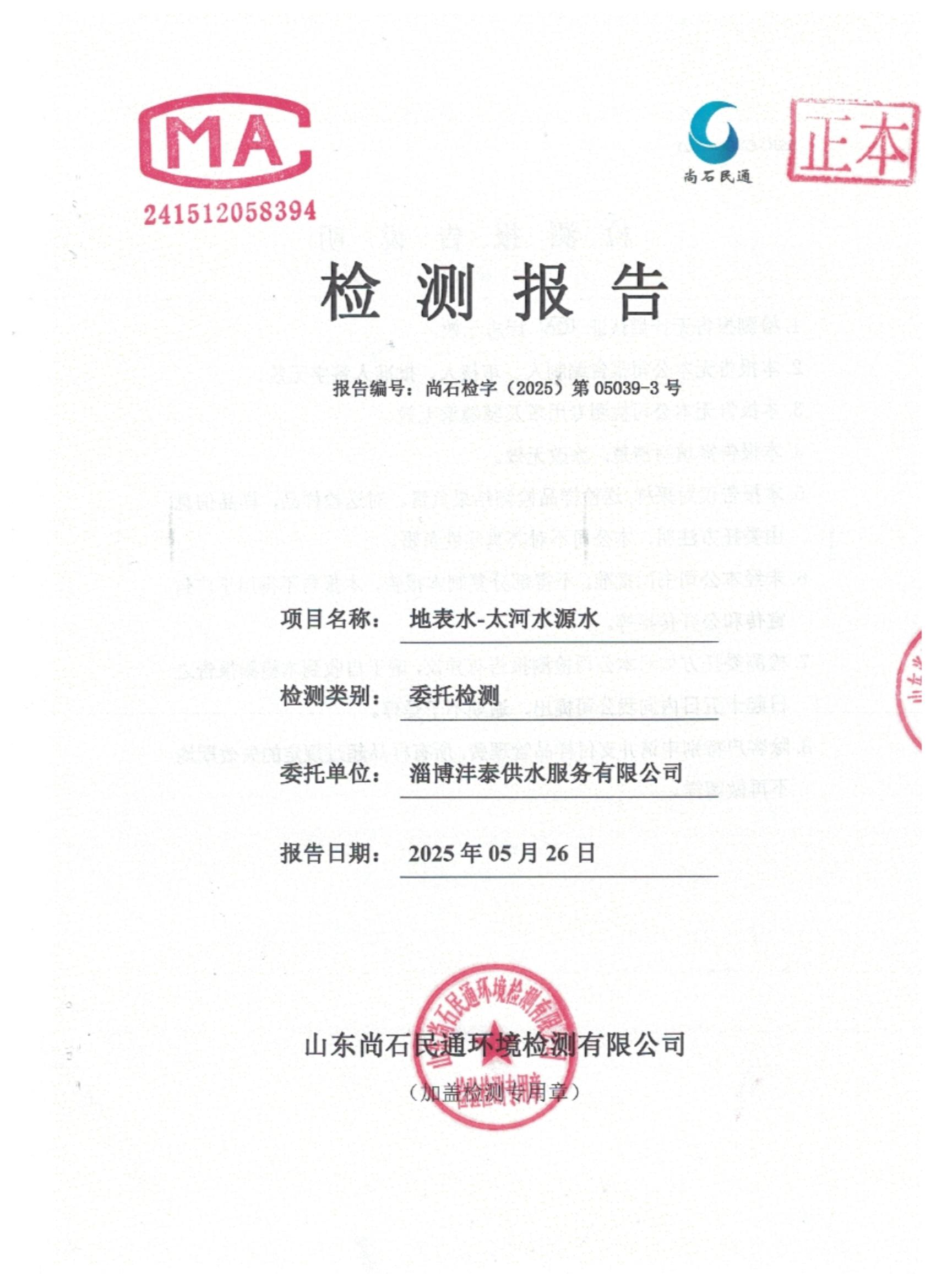 淄博灃泰供水服務(wù)有限公司地表水月檢報告