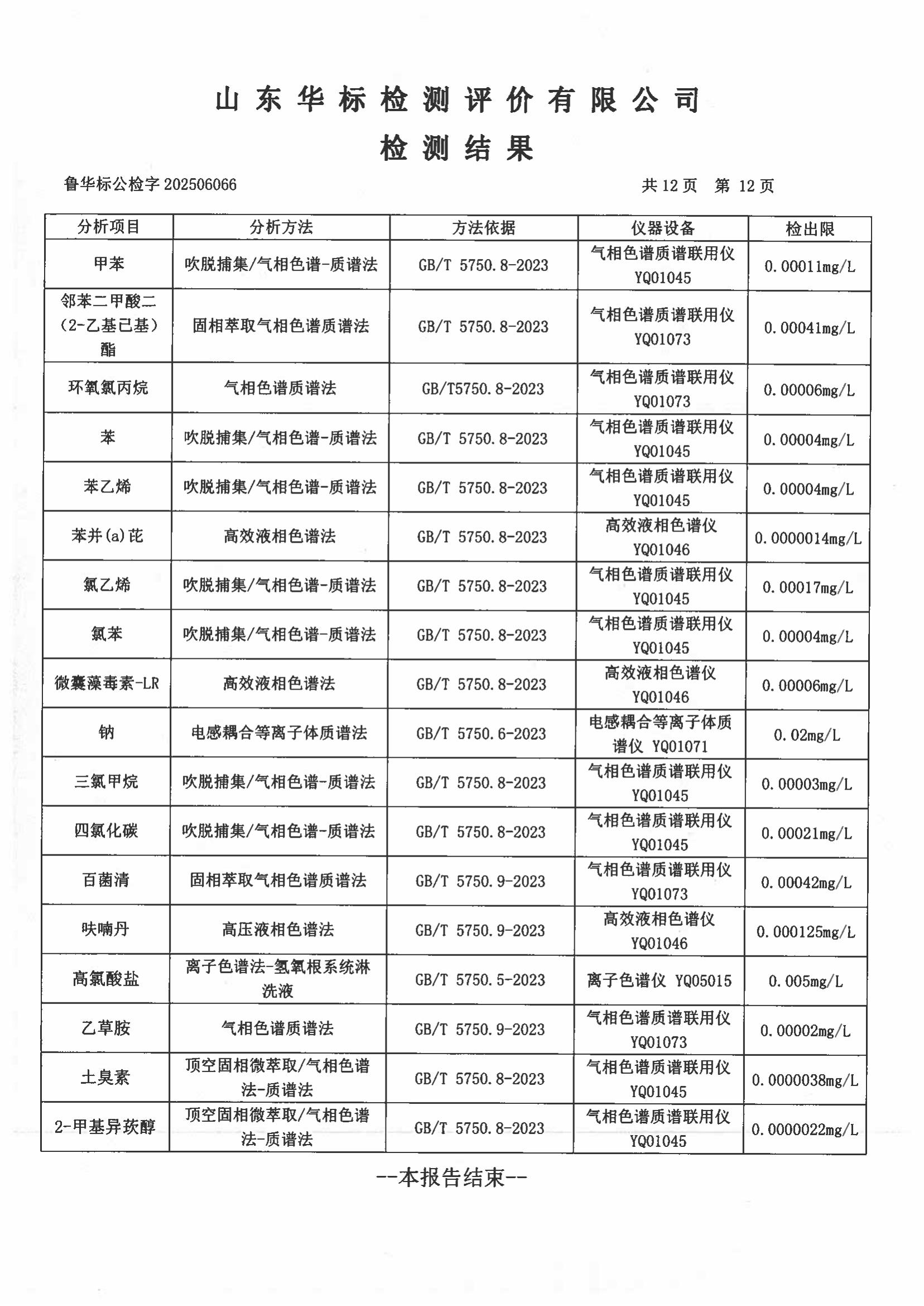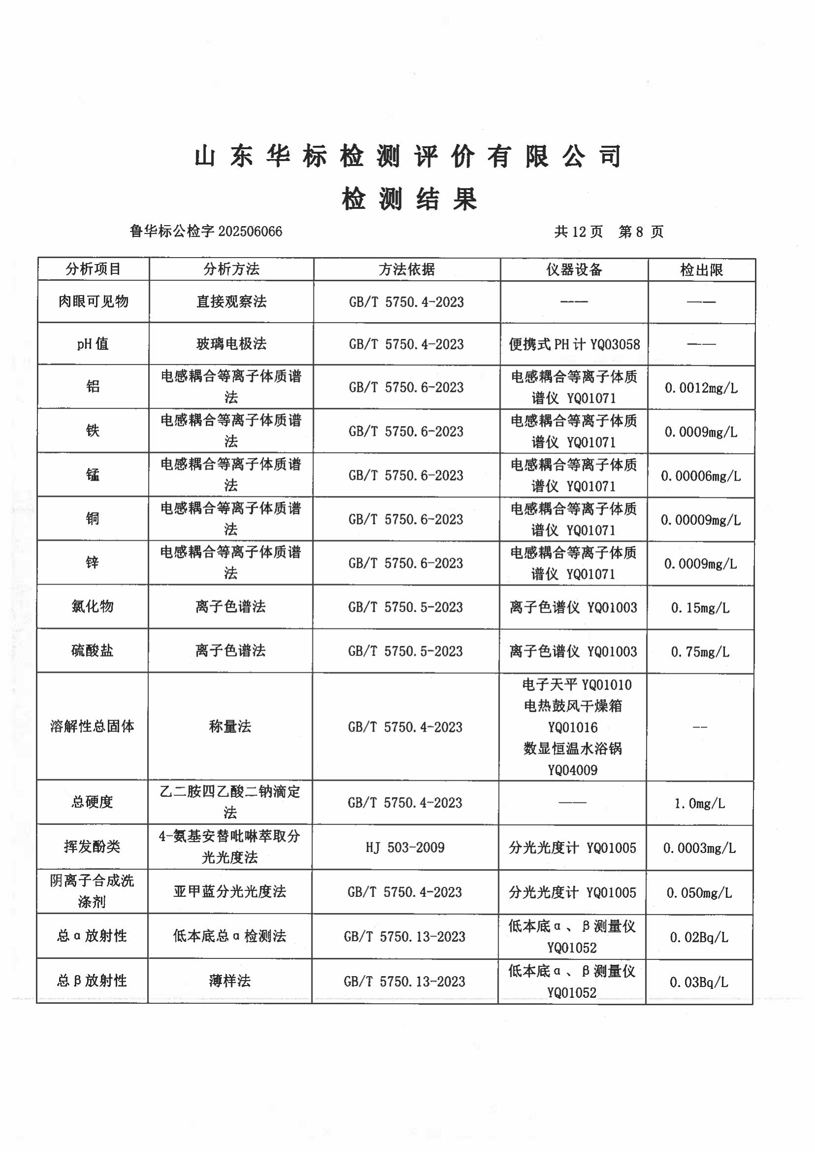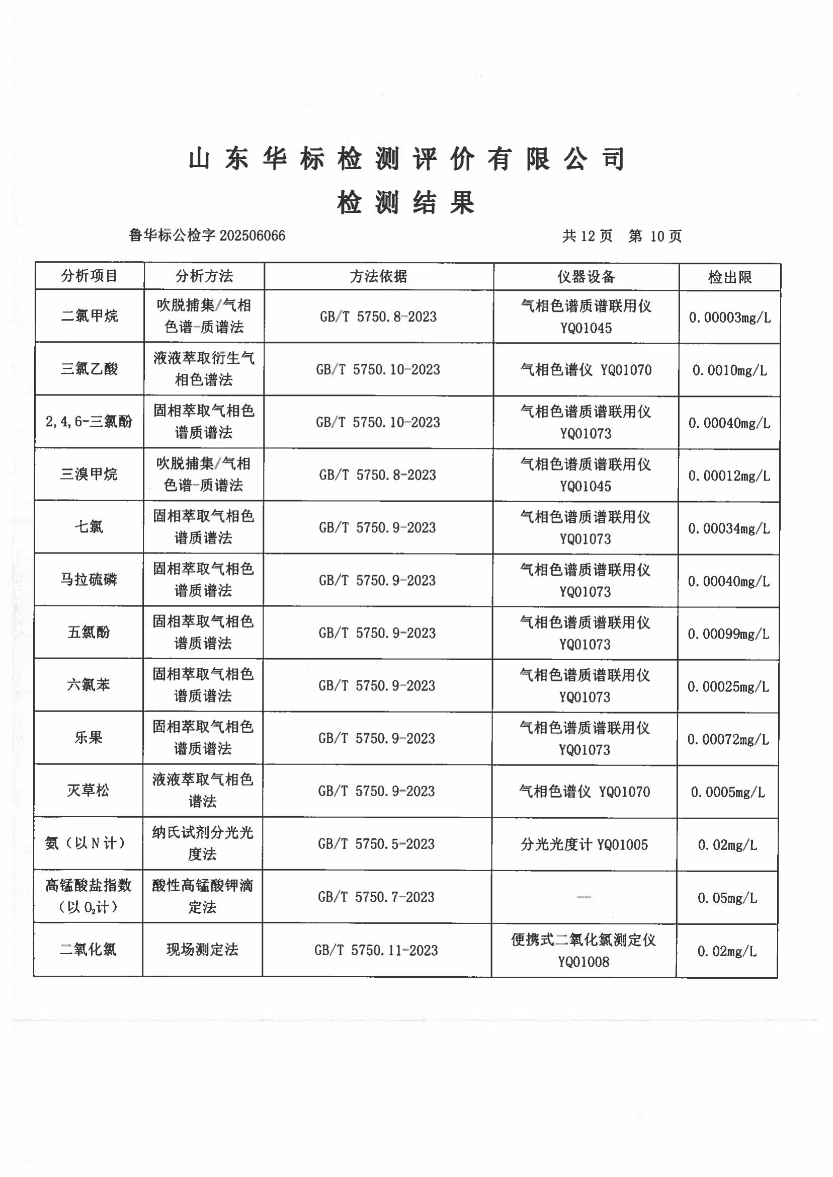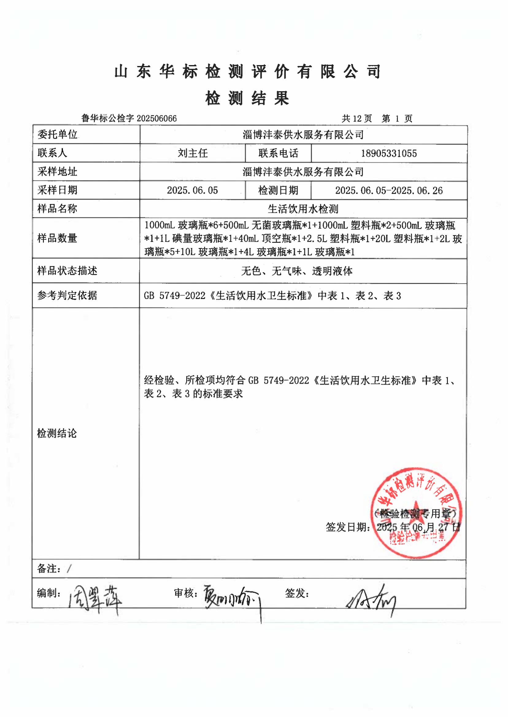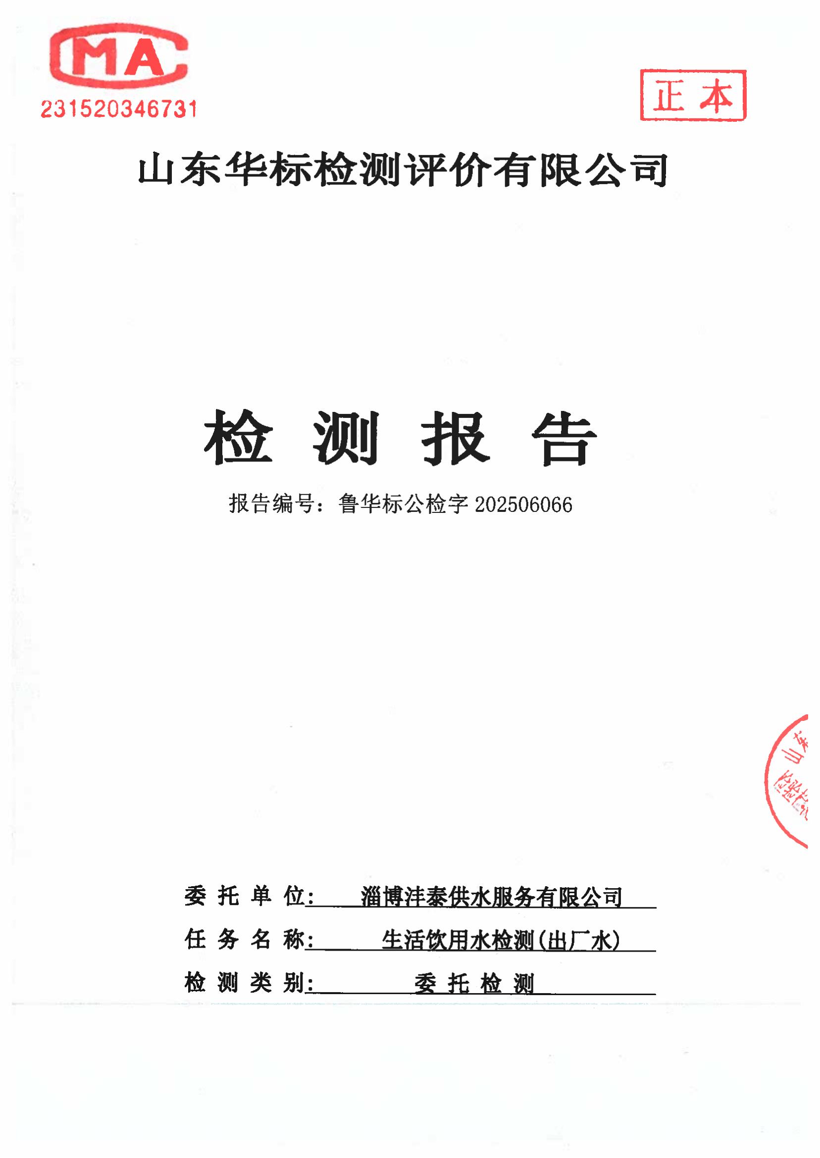 淄博灃泰供水服務(wù)有限公司出廠水月檢報告