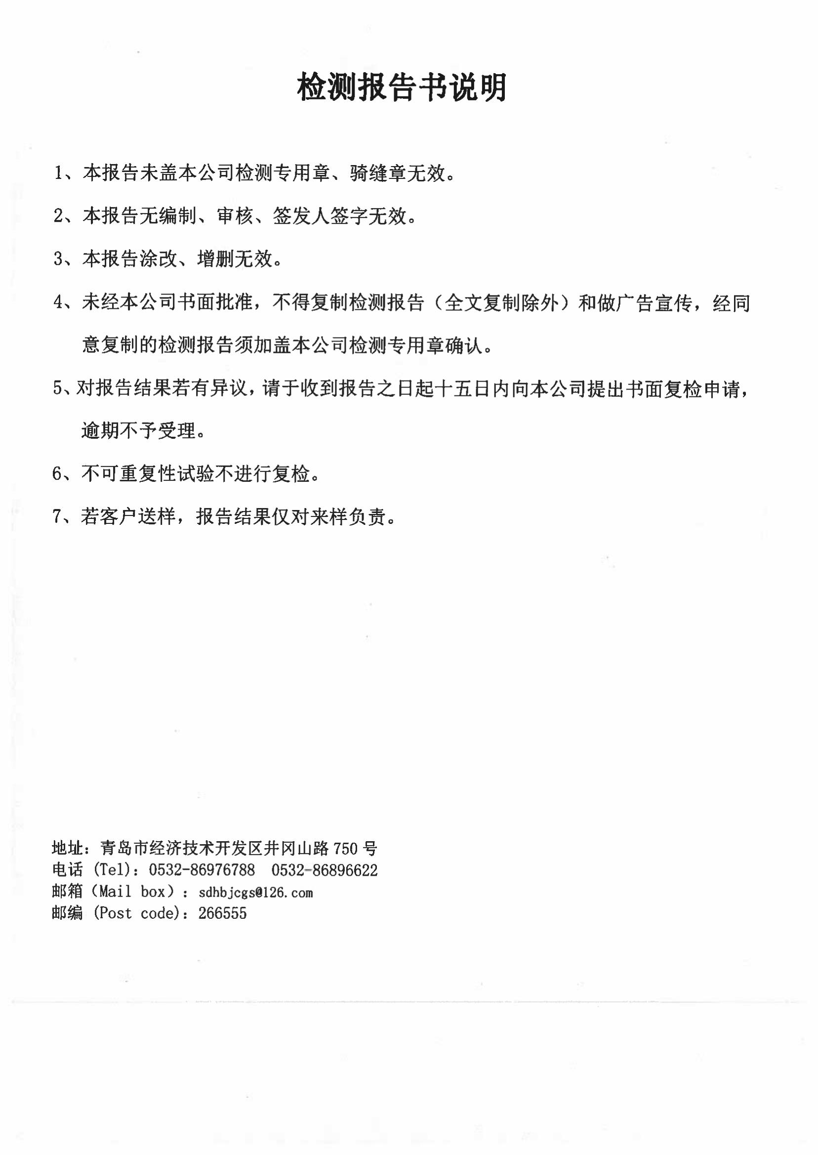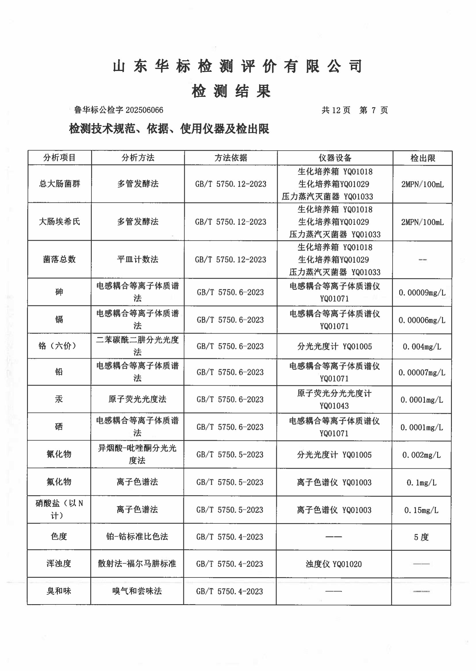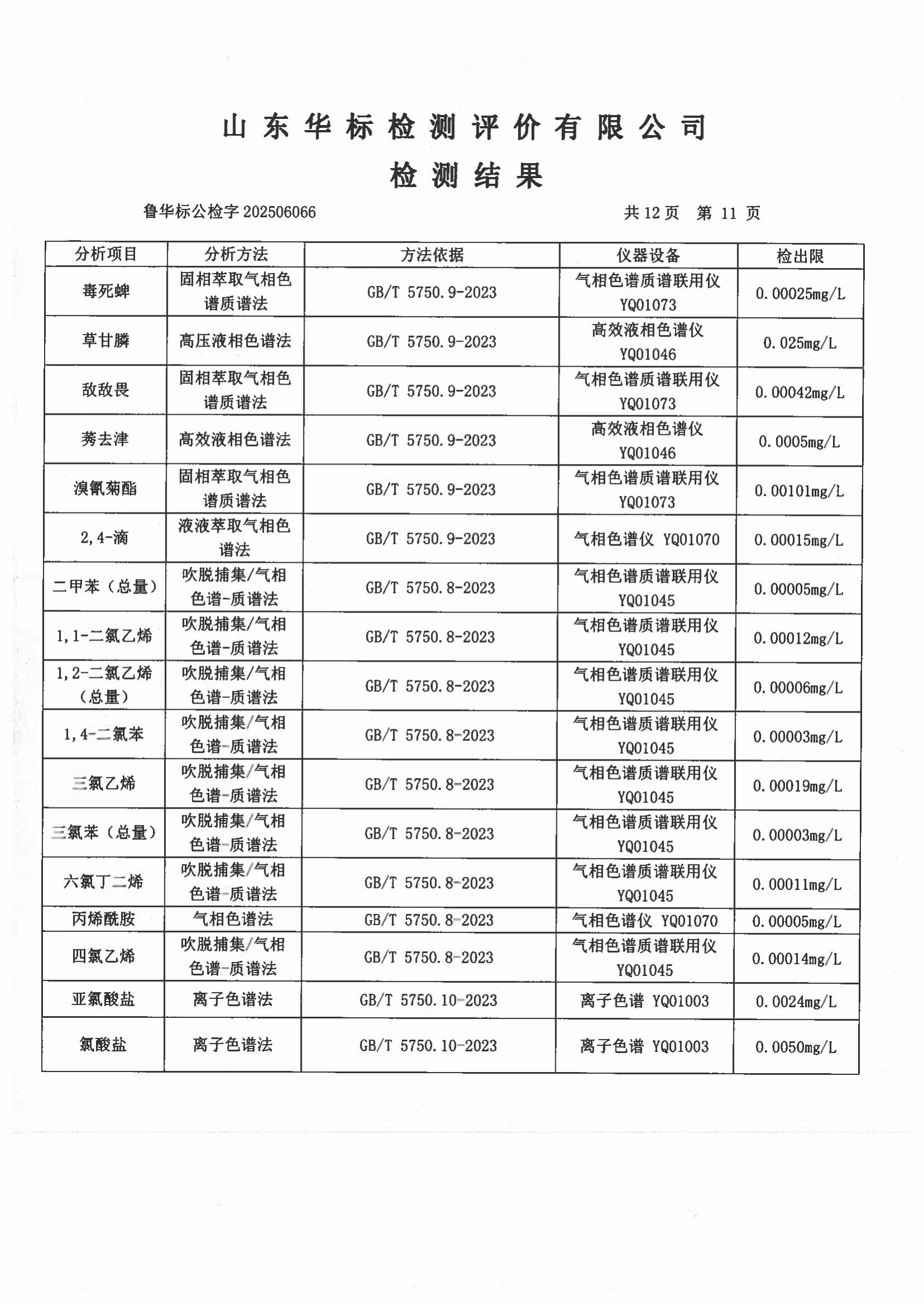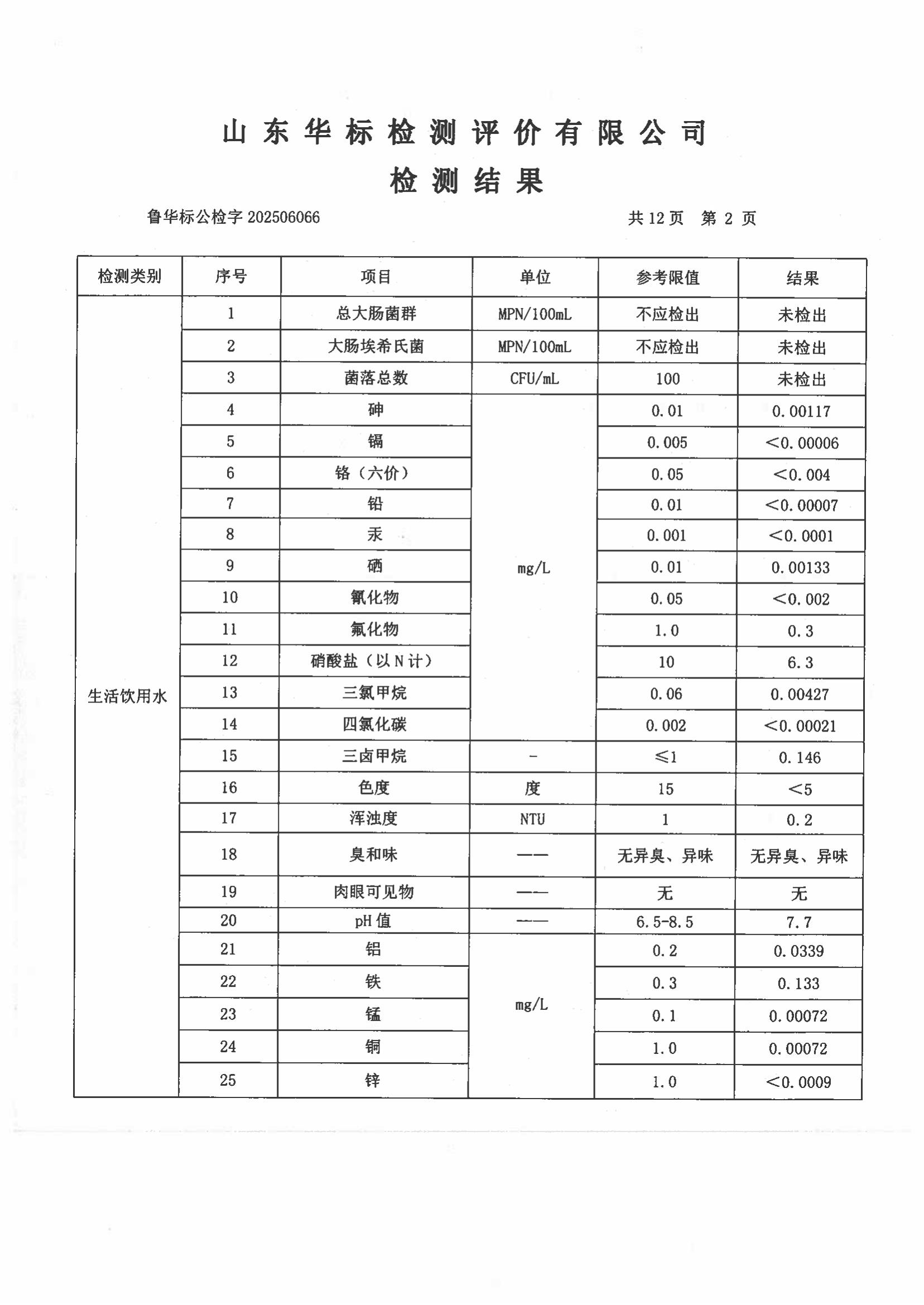 淄博灃泰供水服務(wù)有限公司出廠水月檢報告