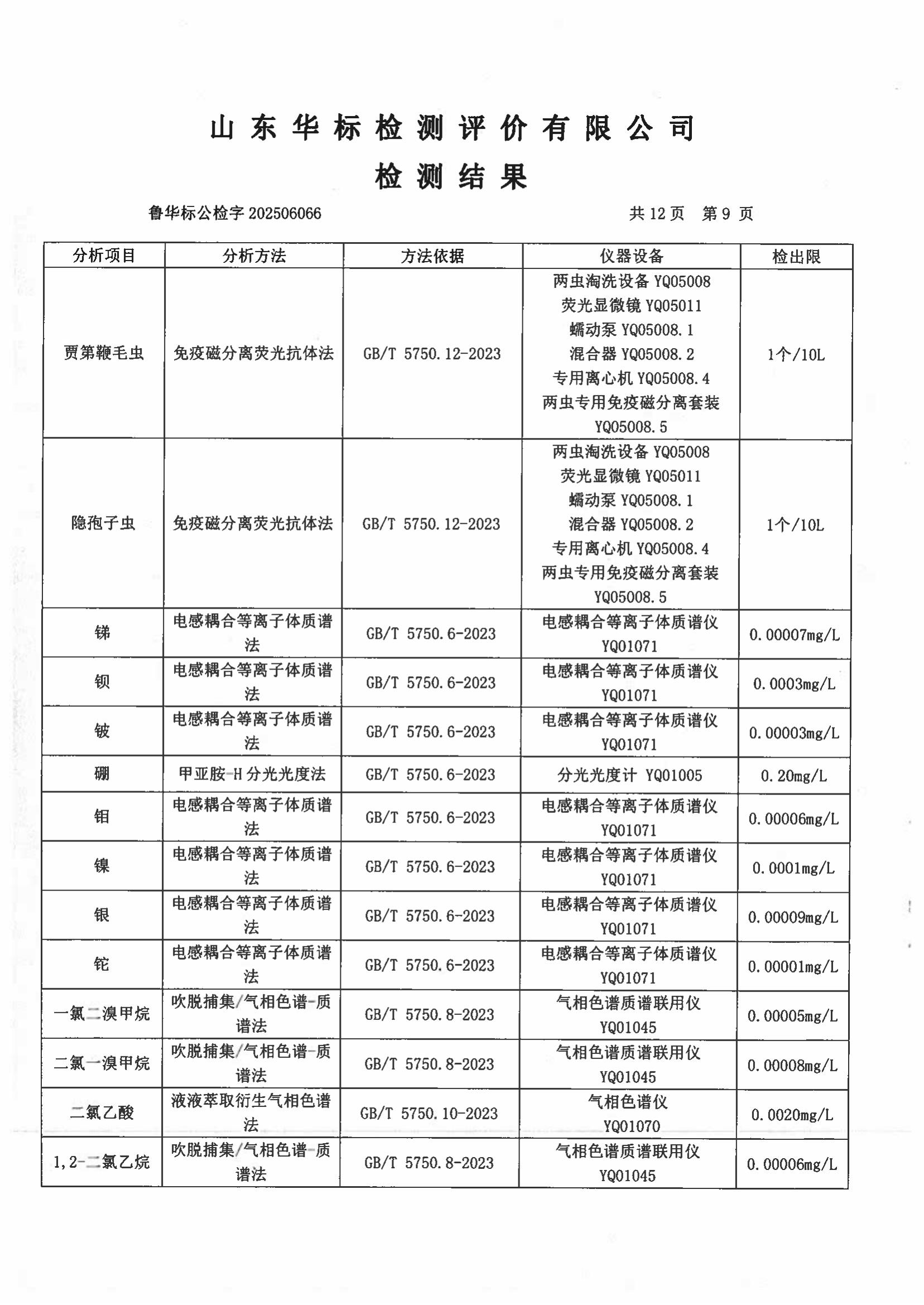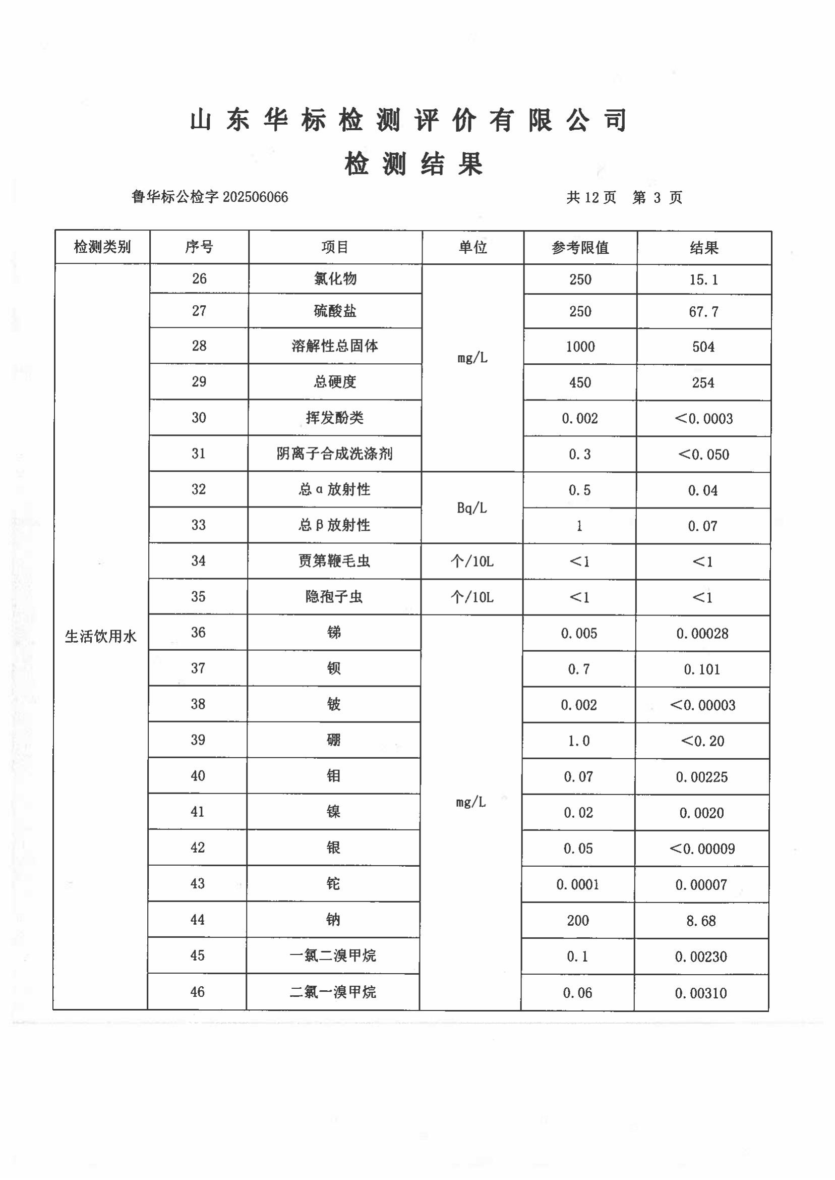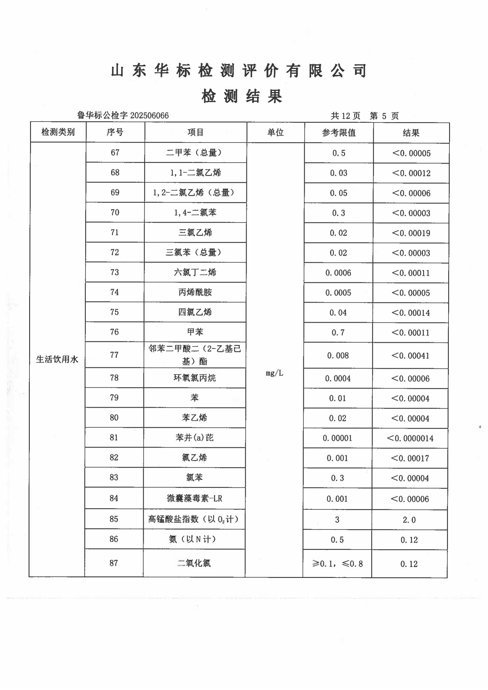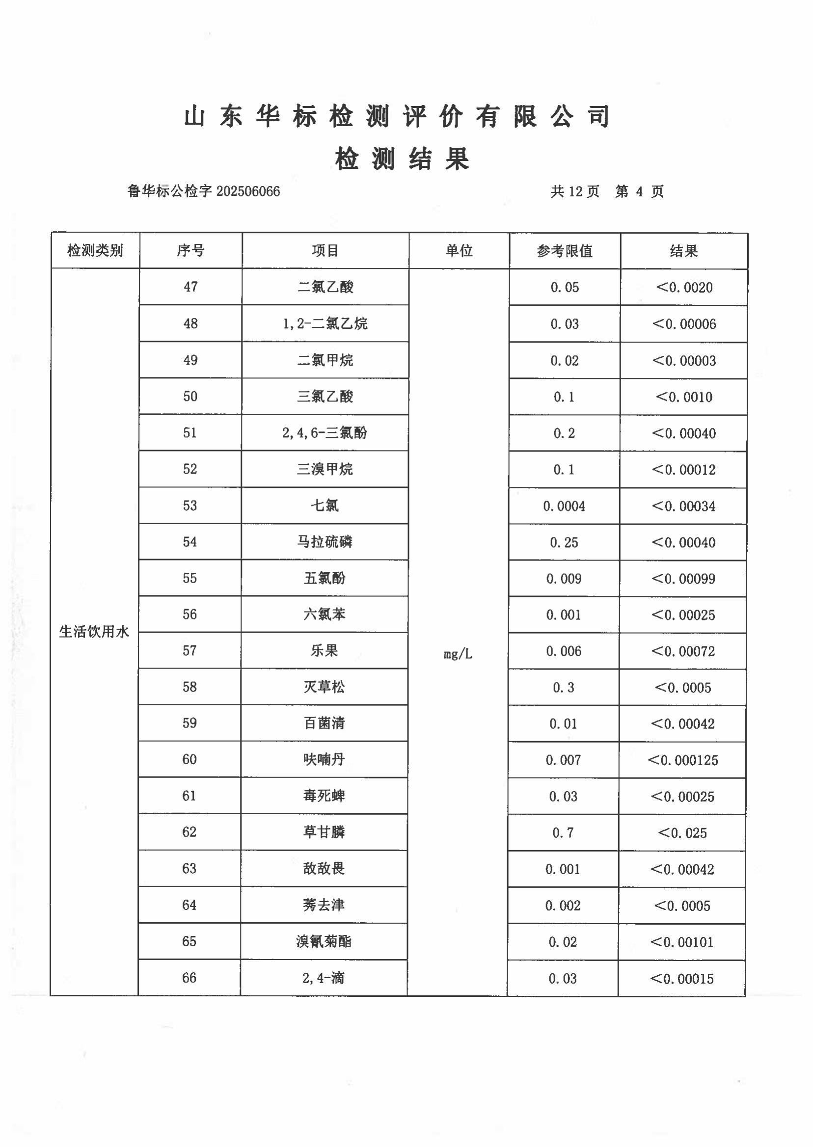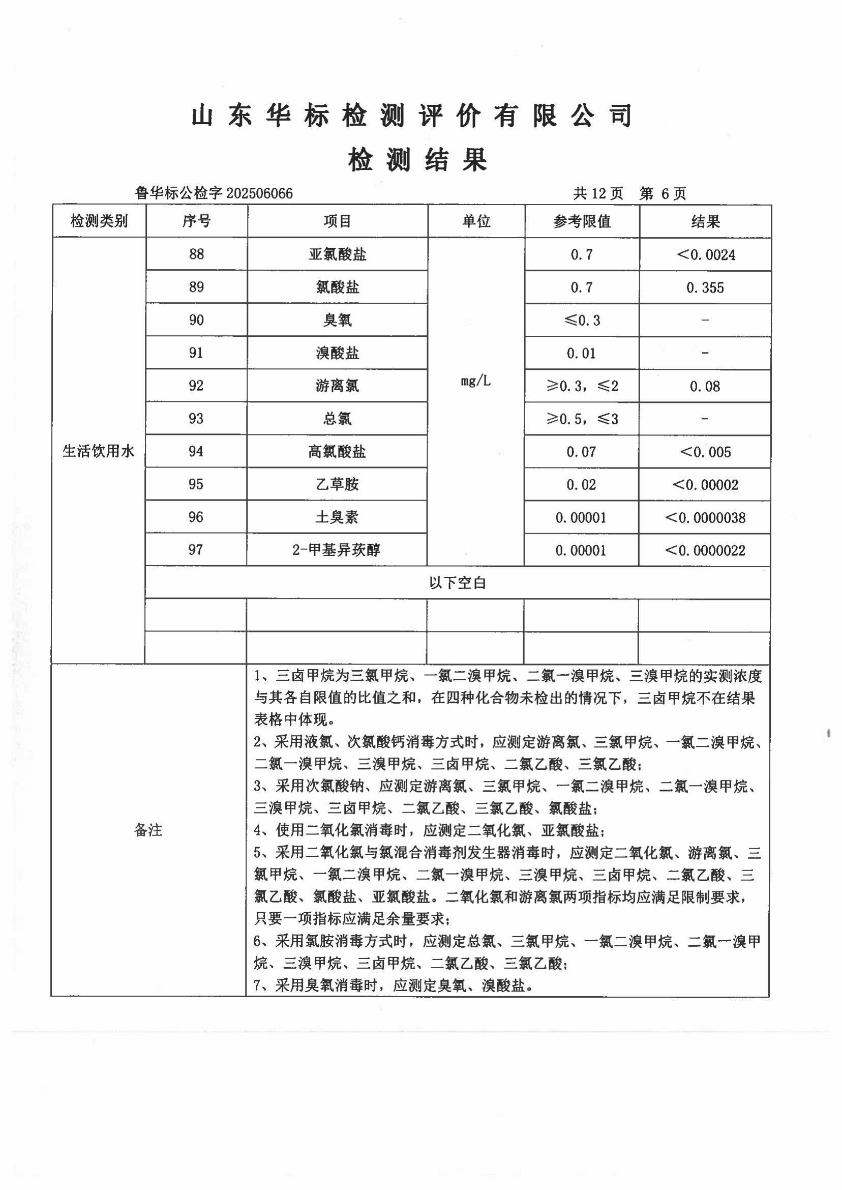 淄博灃泰供水服務(wù)有限公司出廠水月檢報告