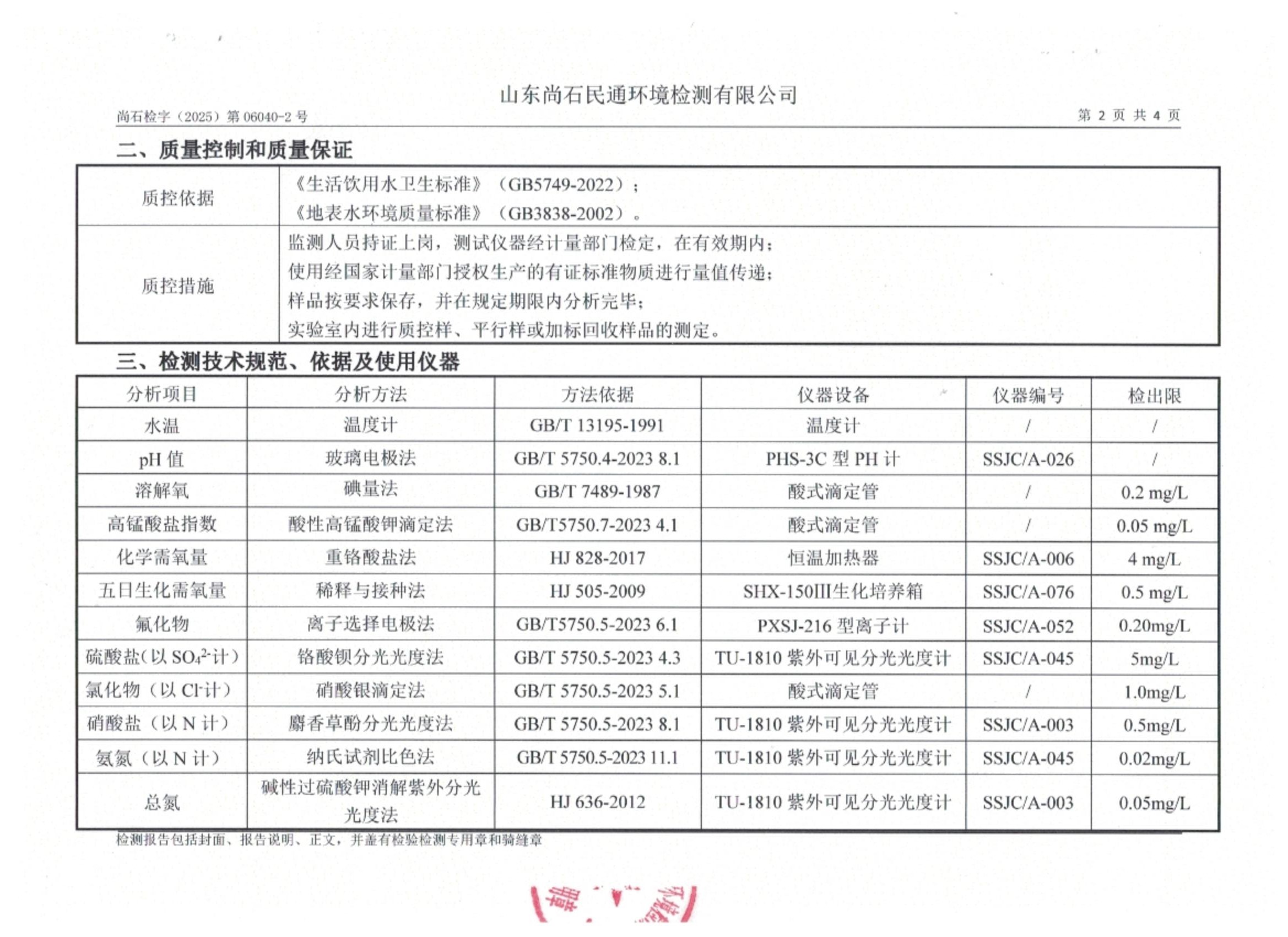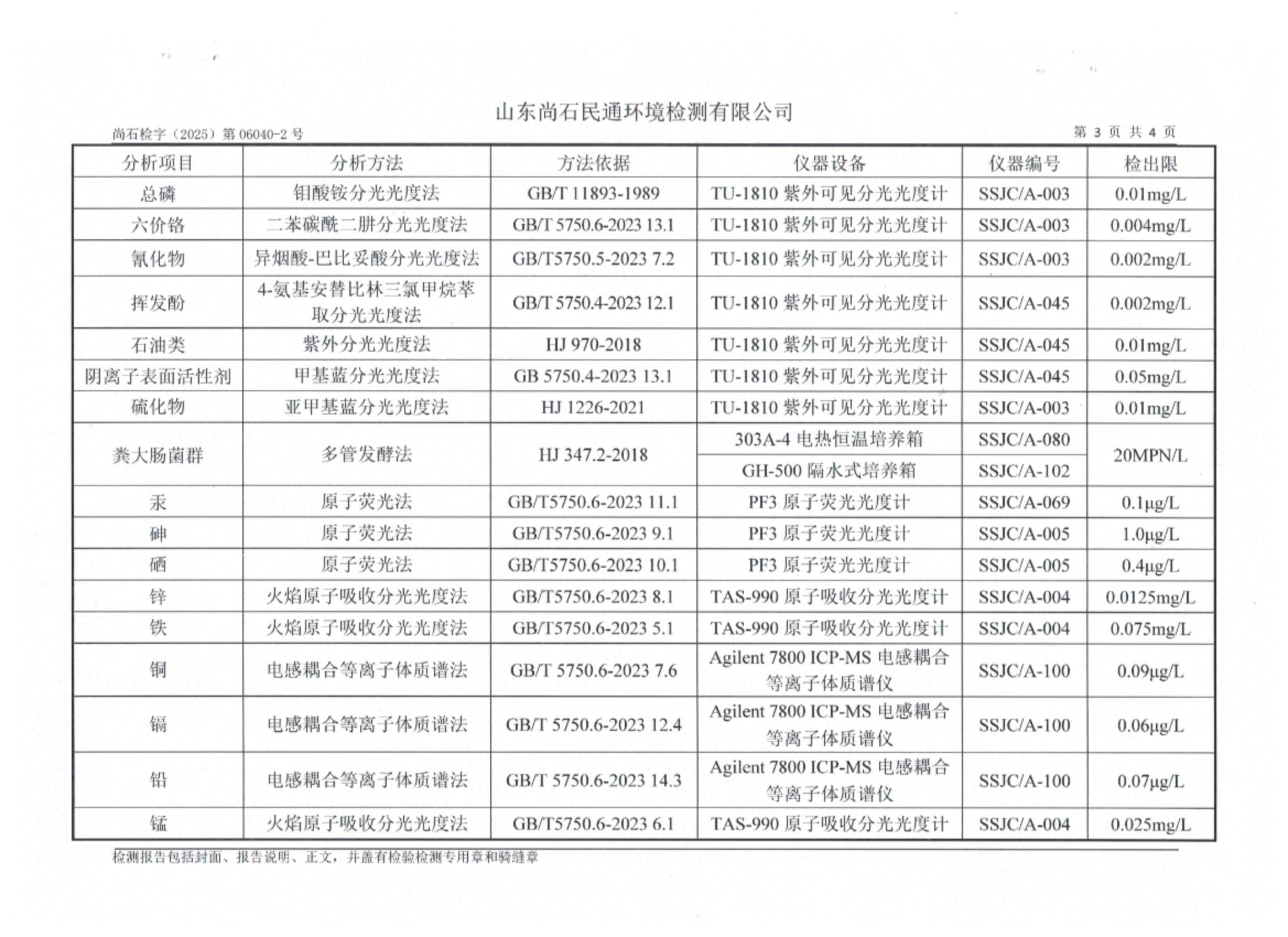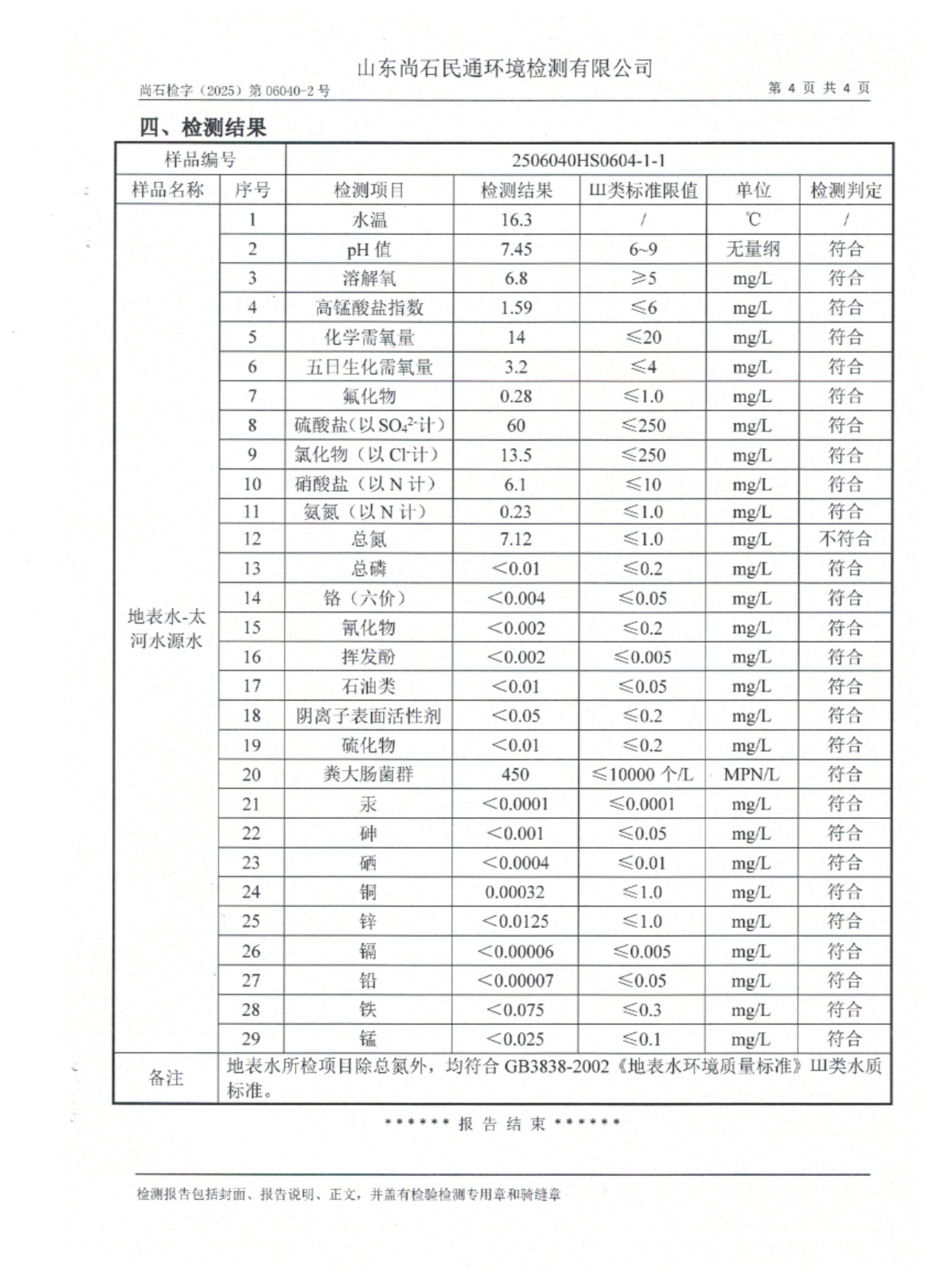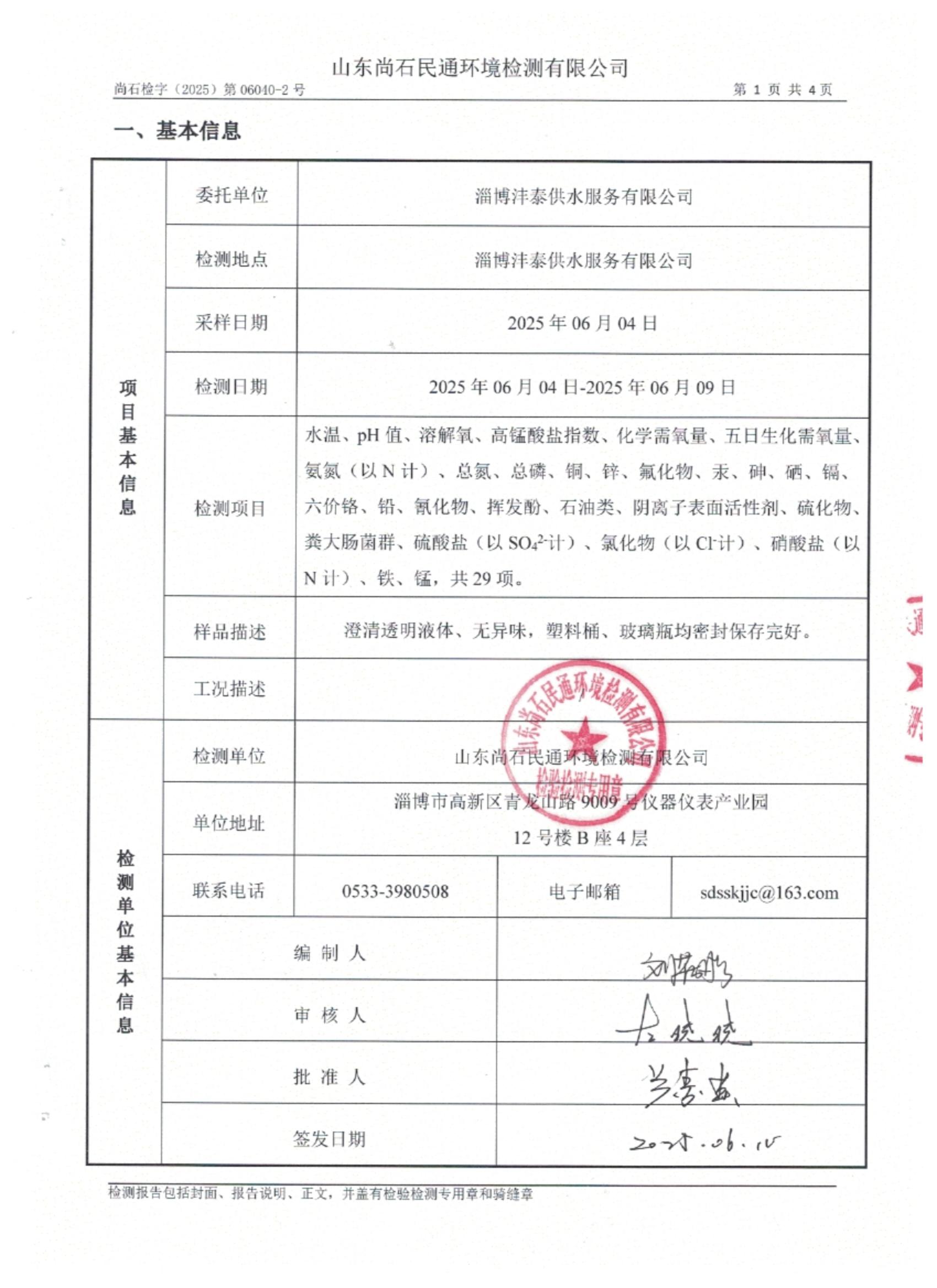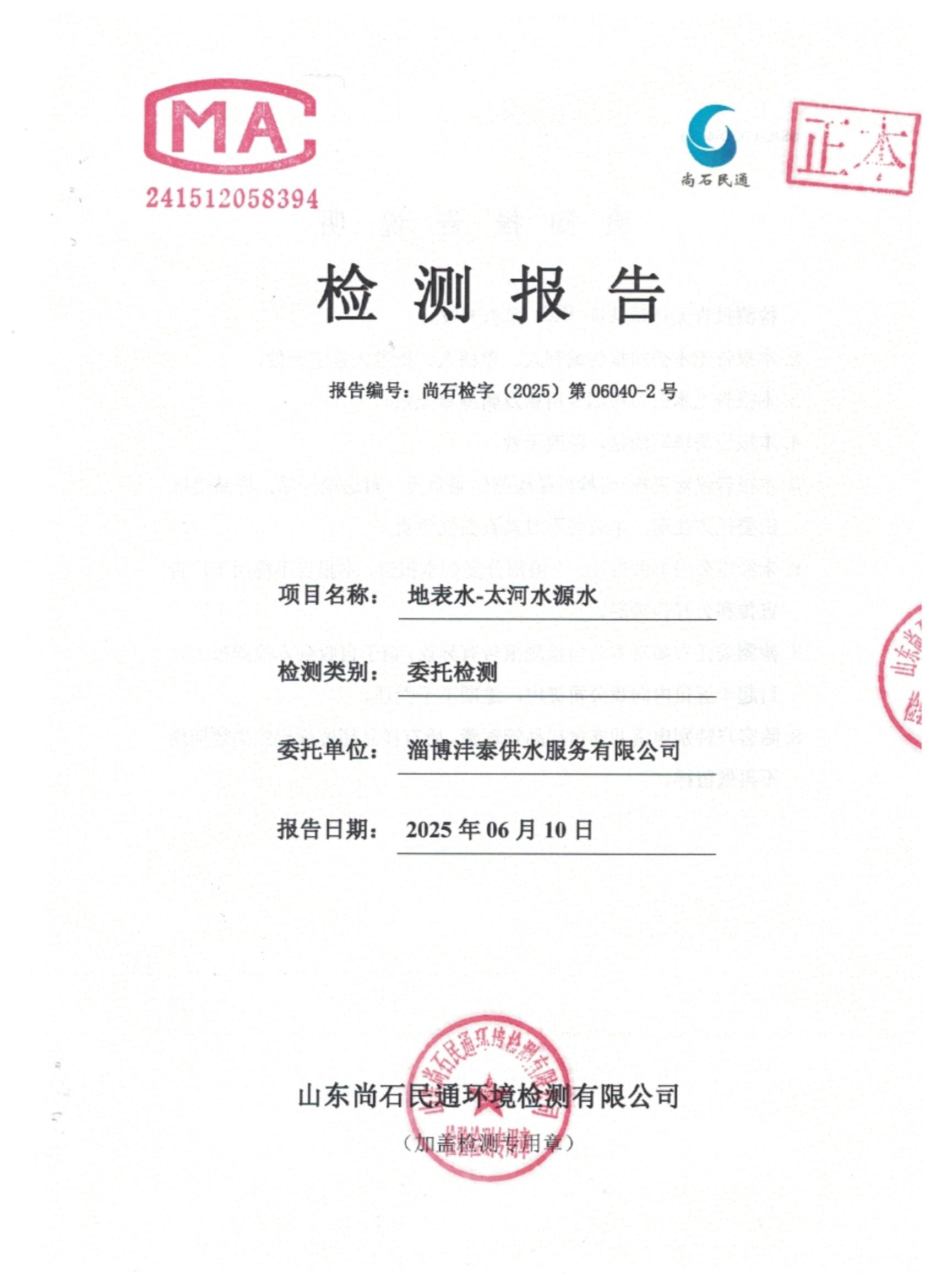 淄博灃泰供水服務(wù)有限公司地表水月檢報(bào)告