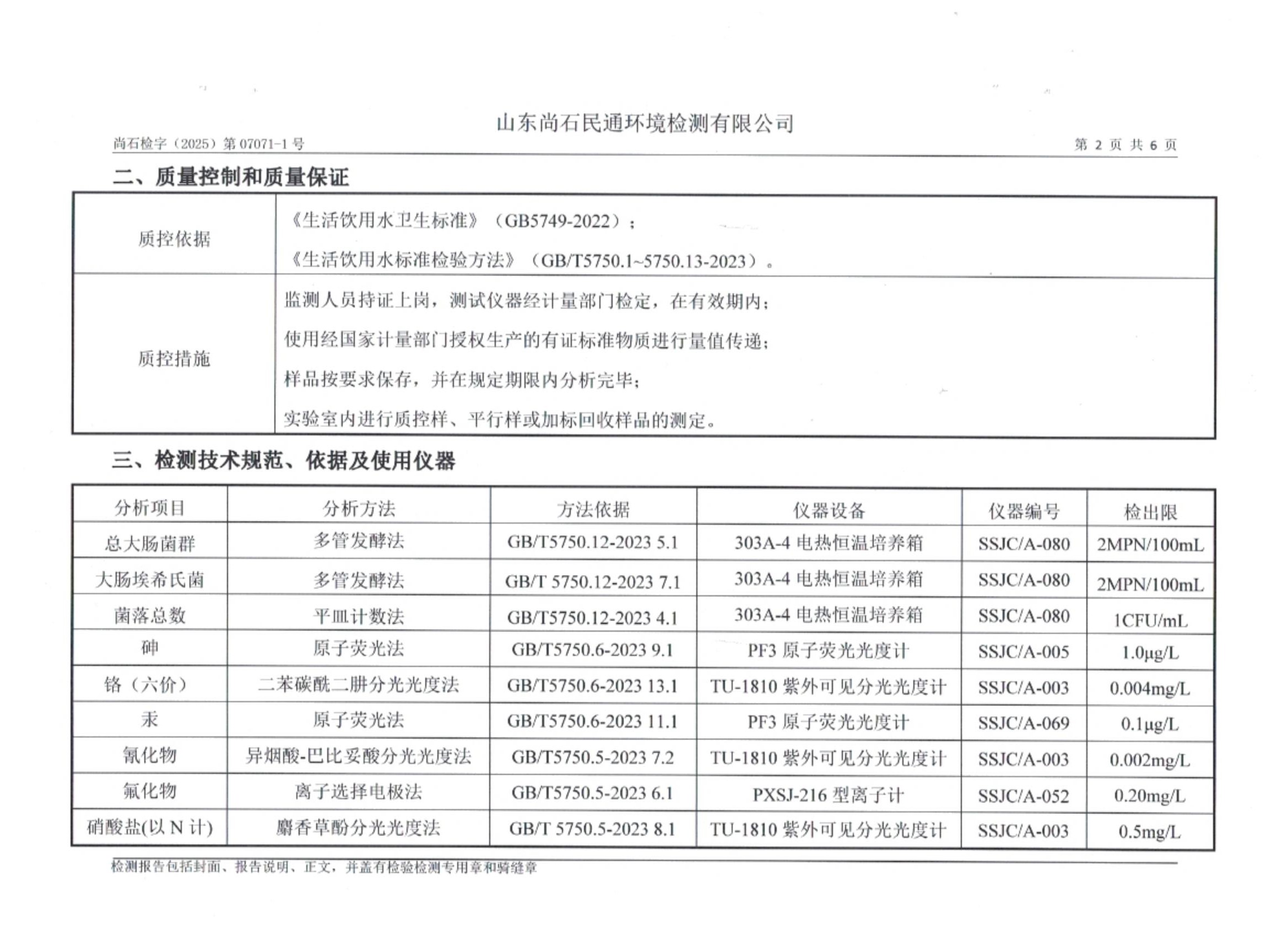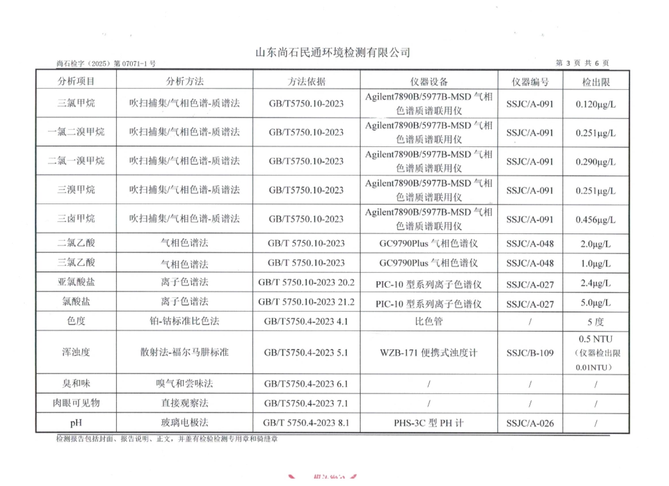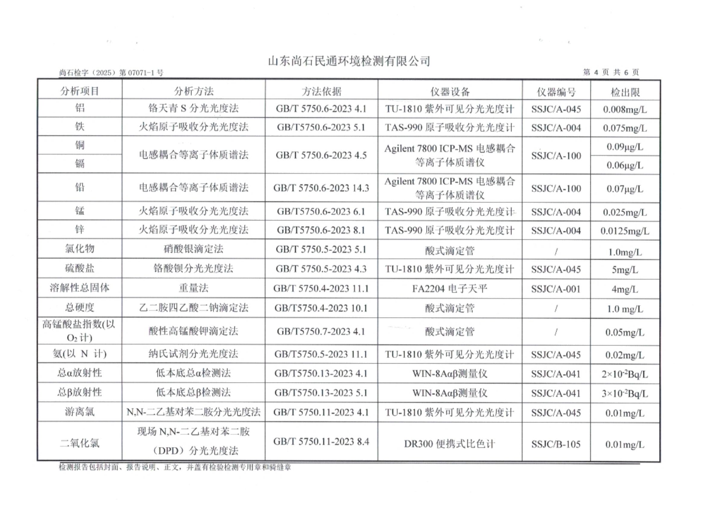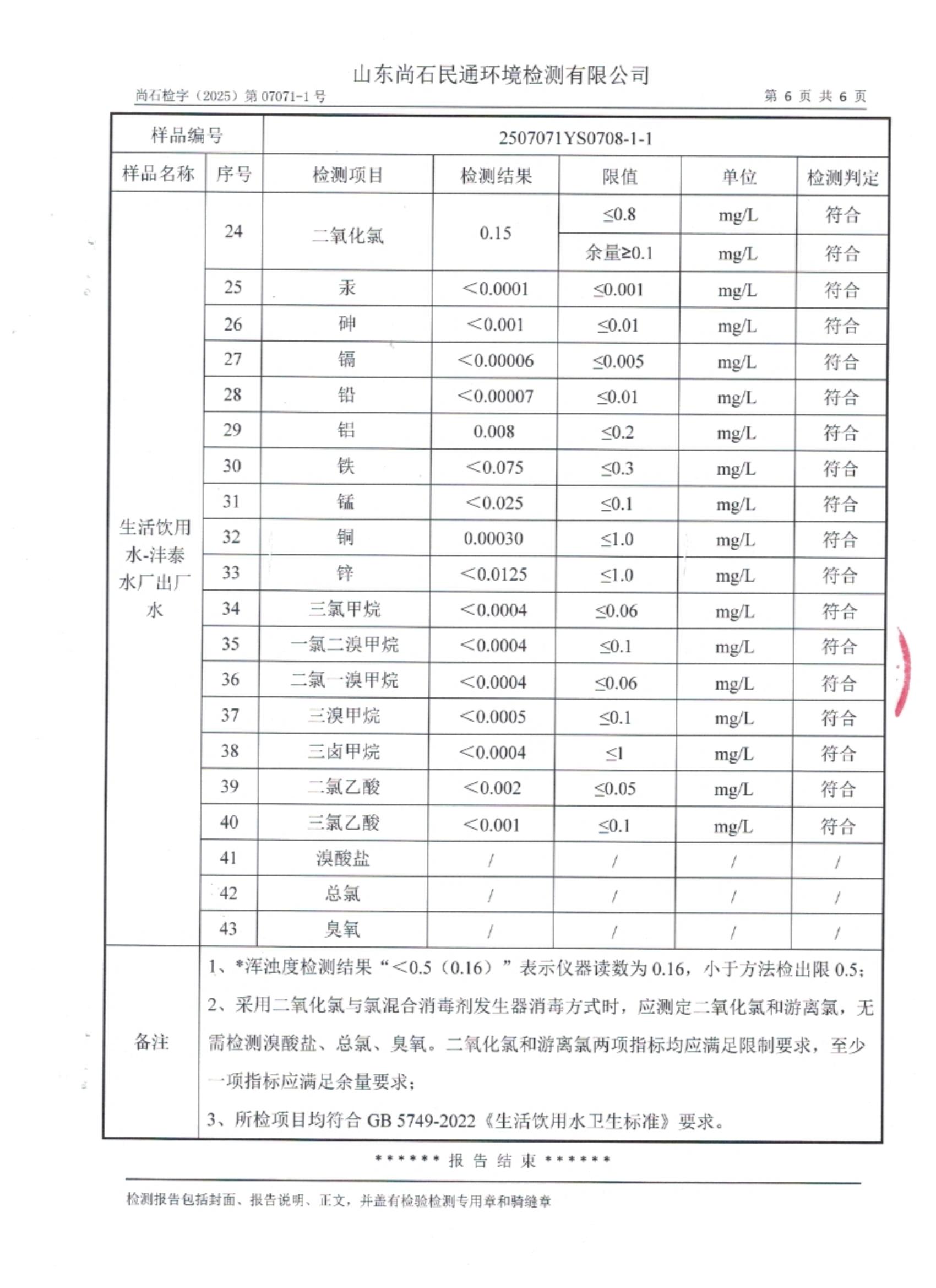 淄博灃泰供水服務(wù)有限公司出廠水月檢報(bào)告