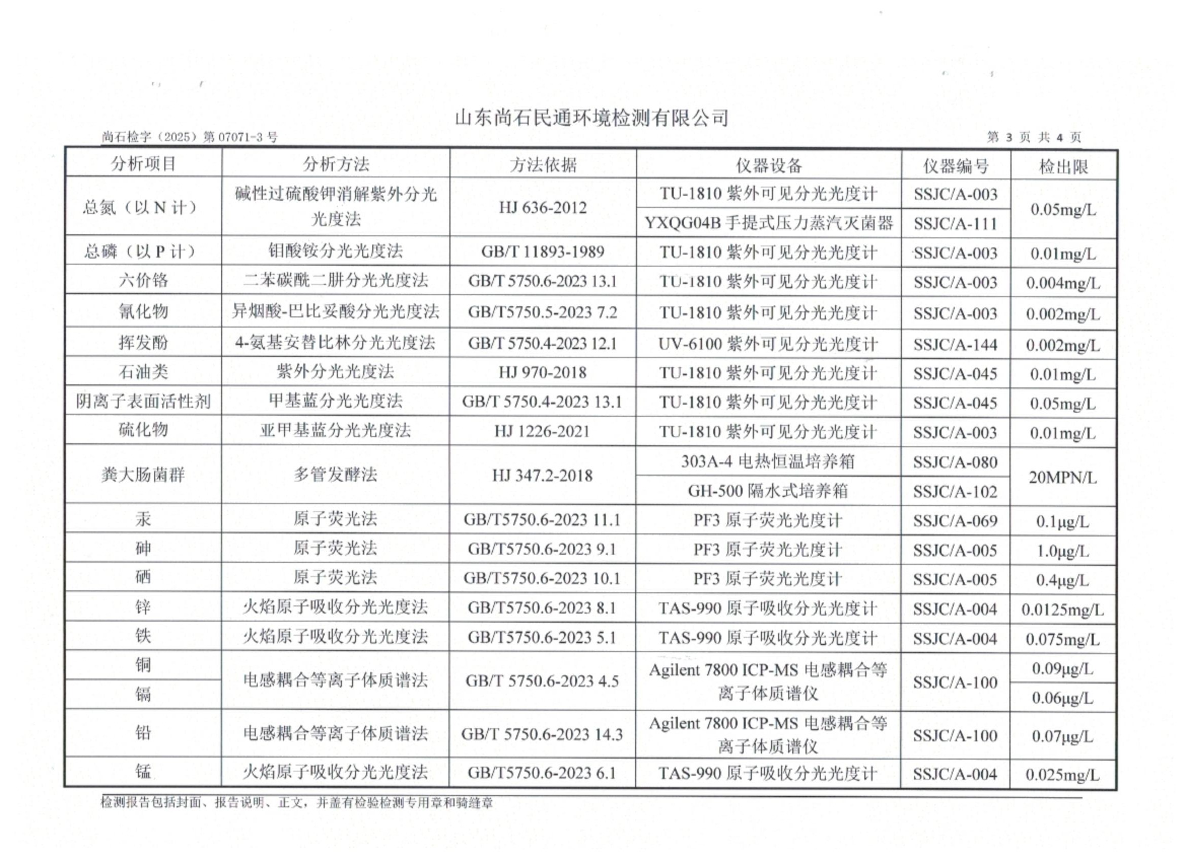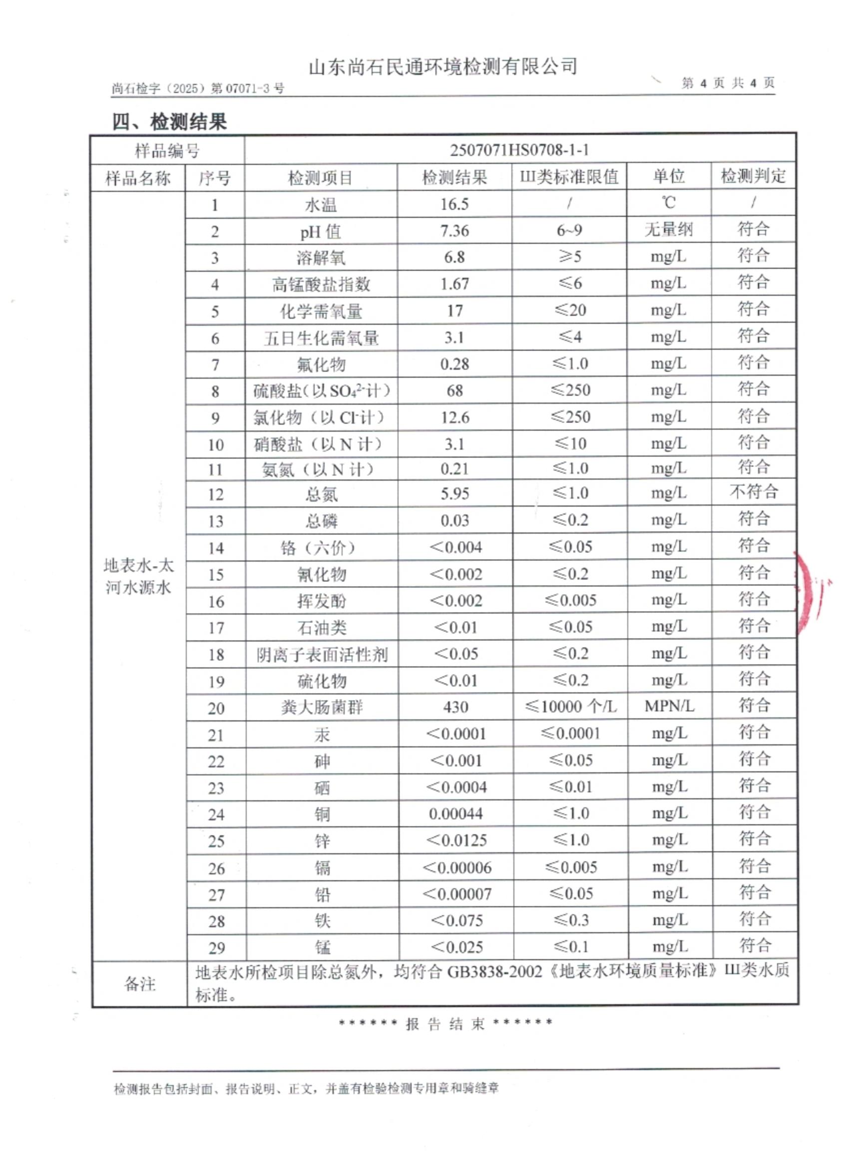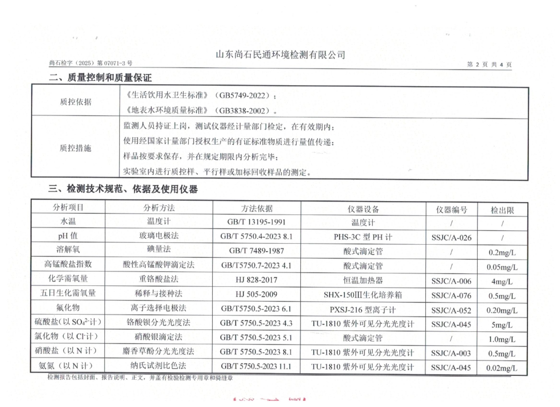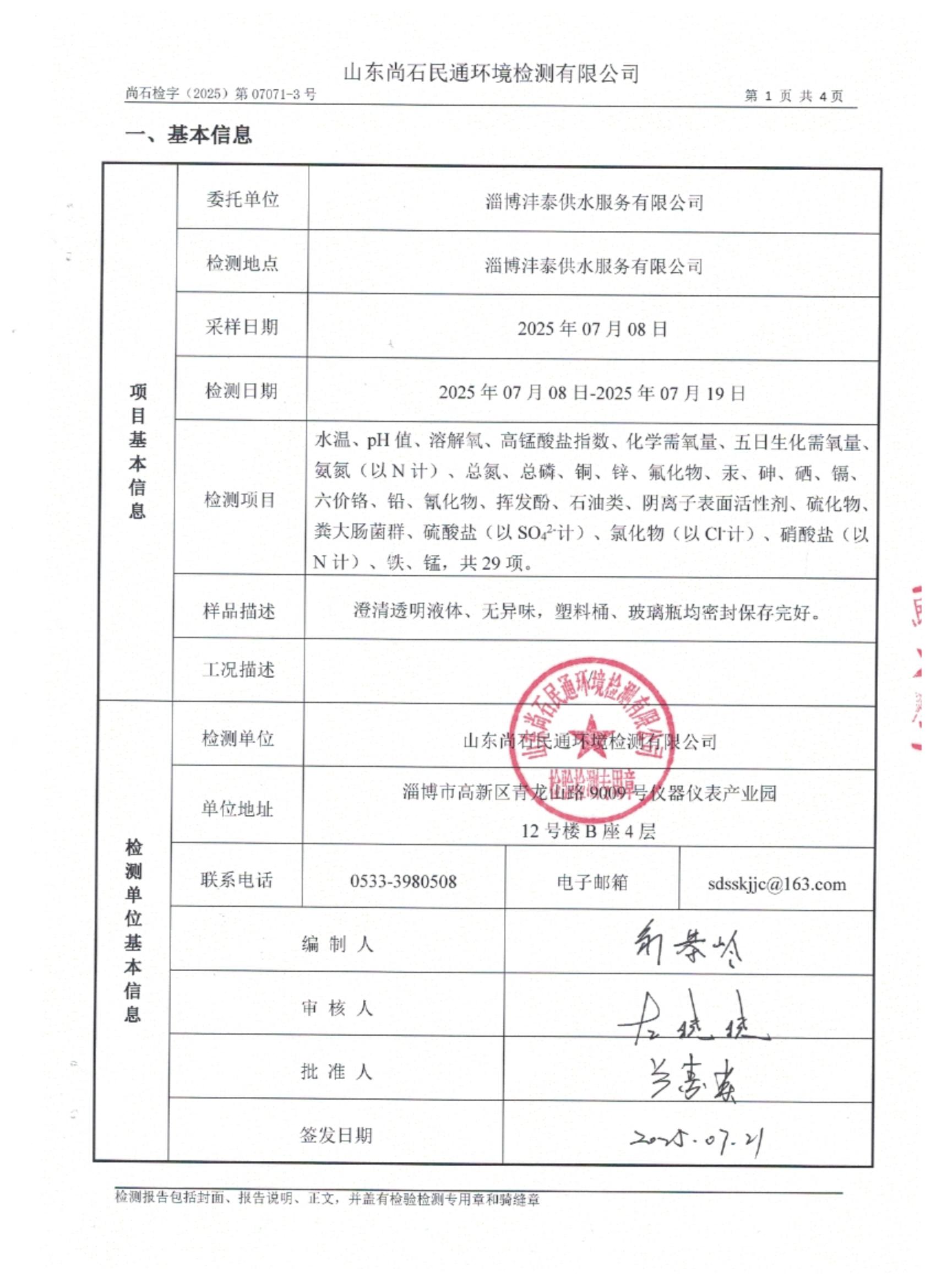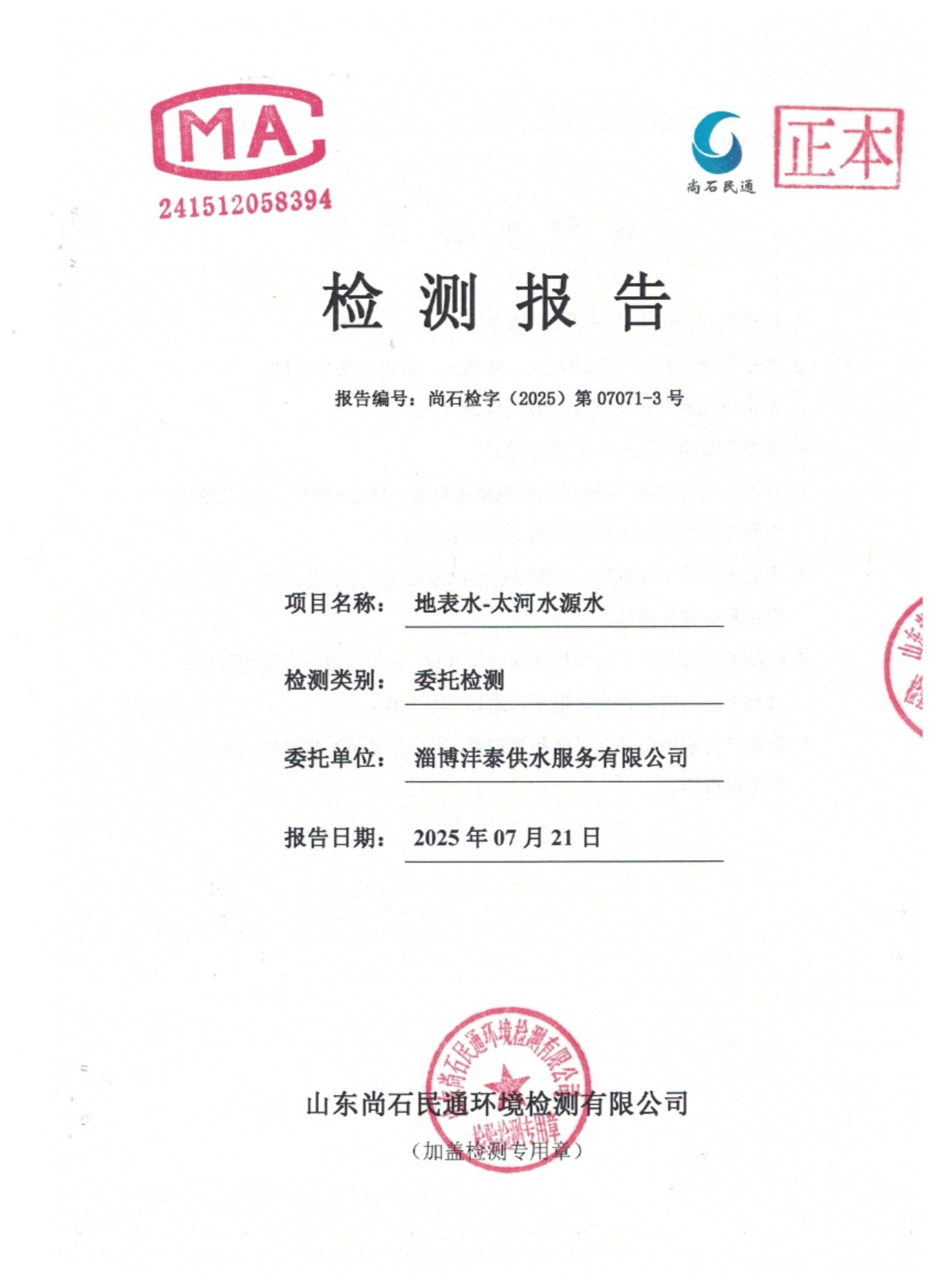 淄博灃泰供水服務(wù)有限公司地表水月檢報告