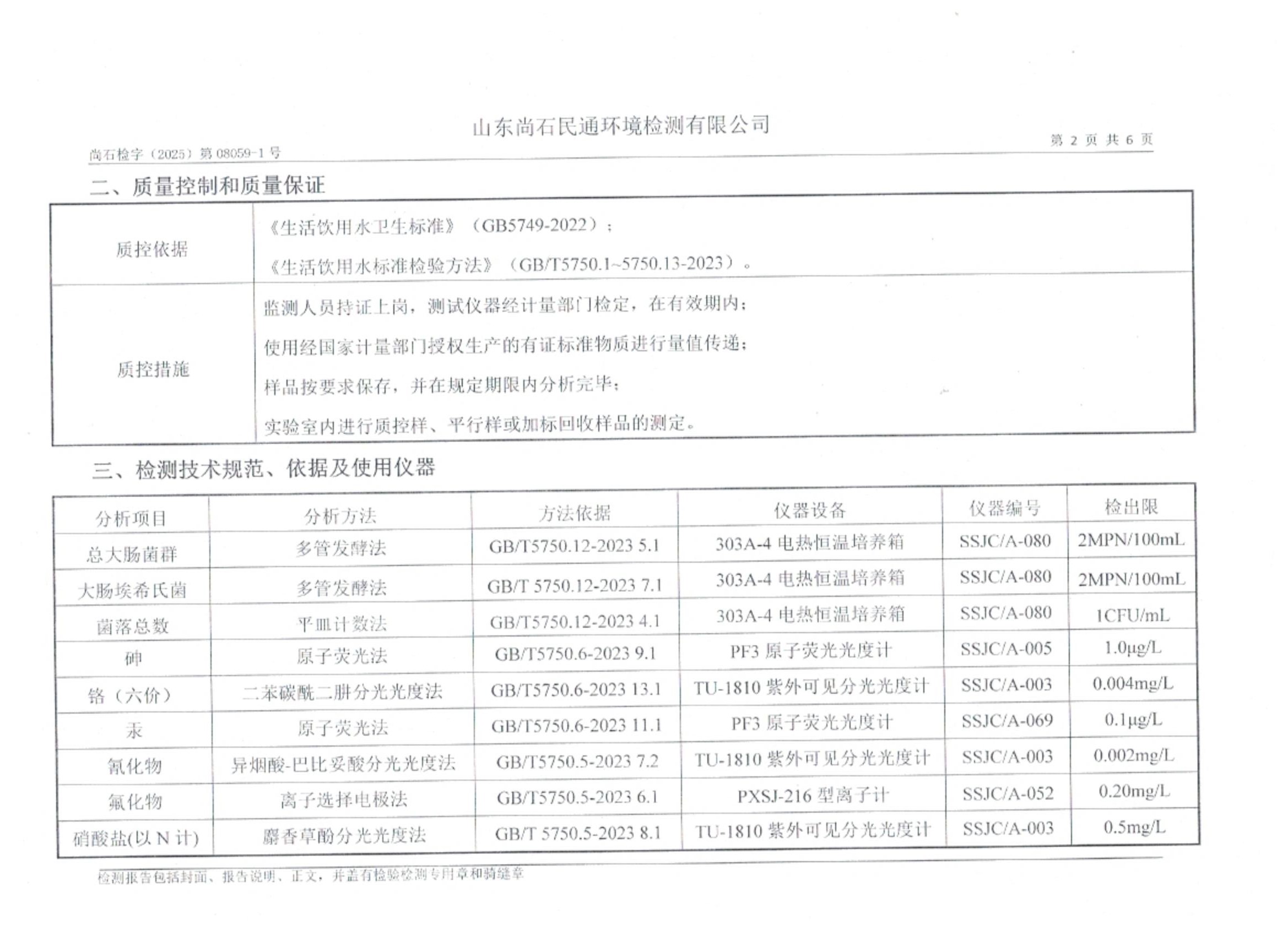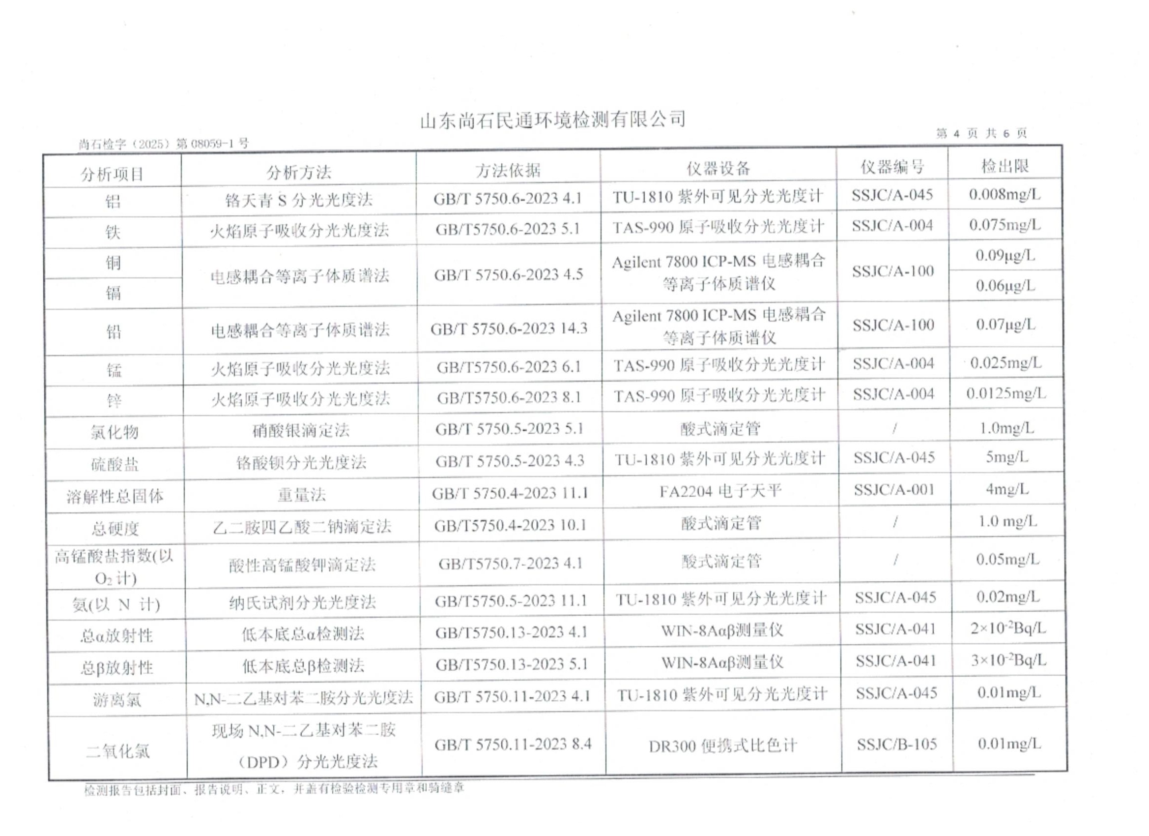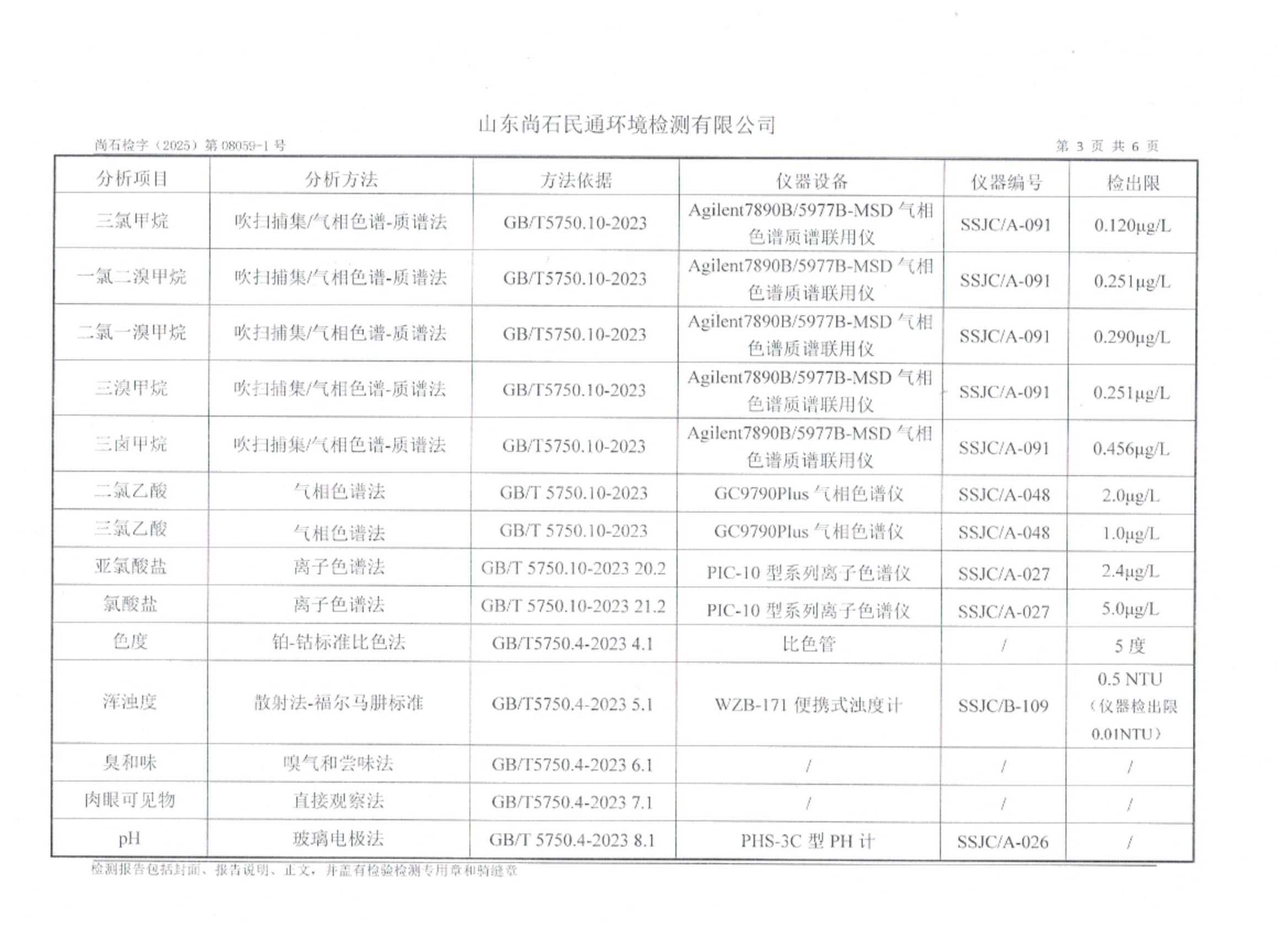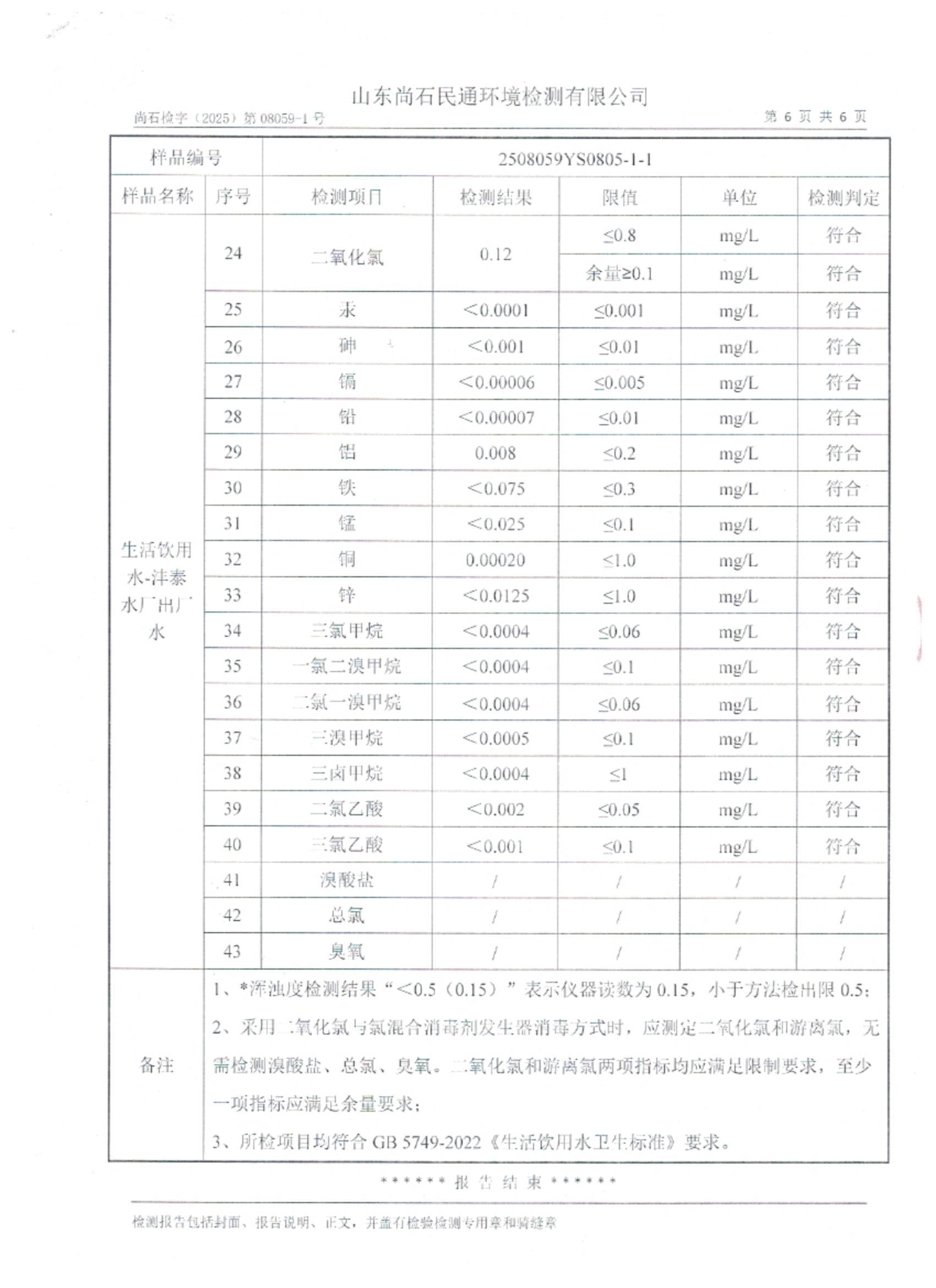 淄博灃泰供水服務(wù)有限公司出廠水月檢報(bào)告