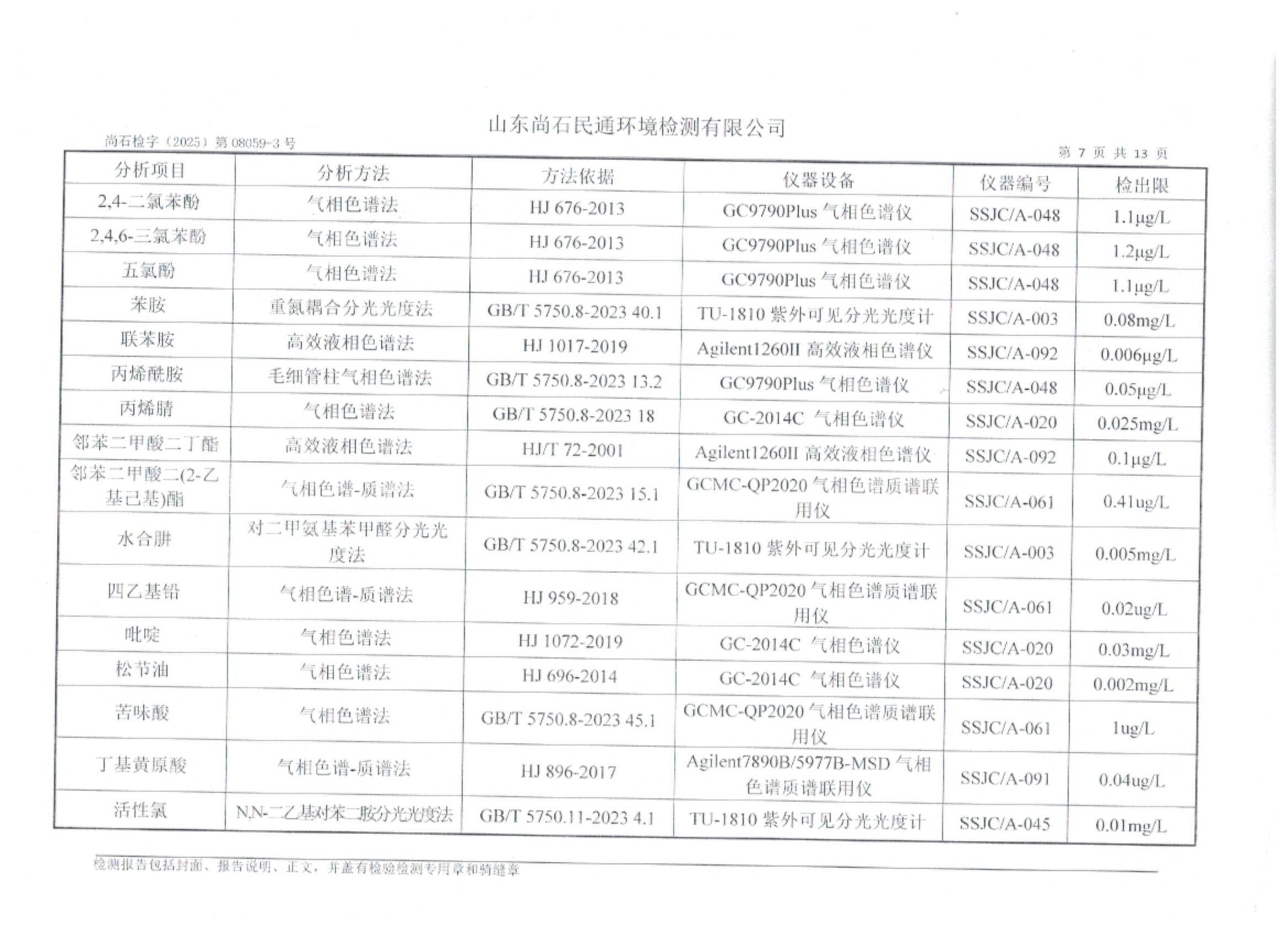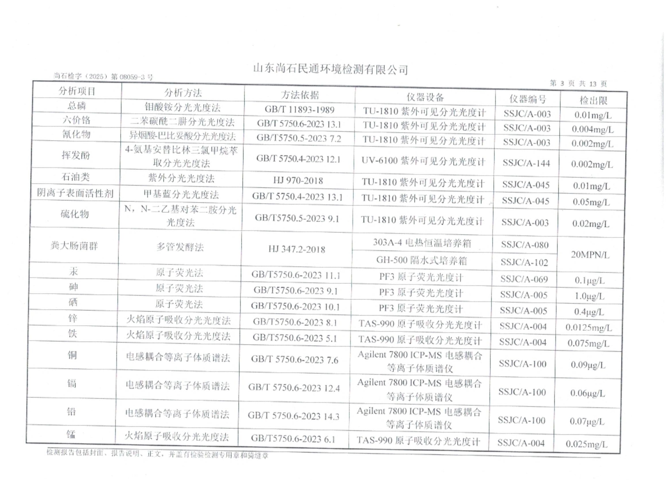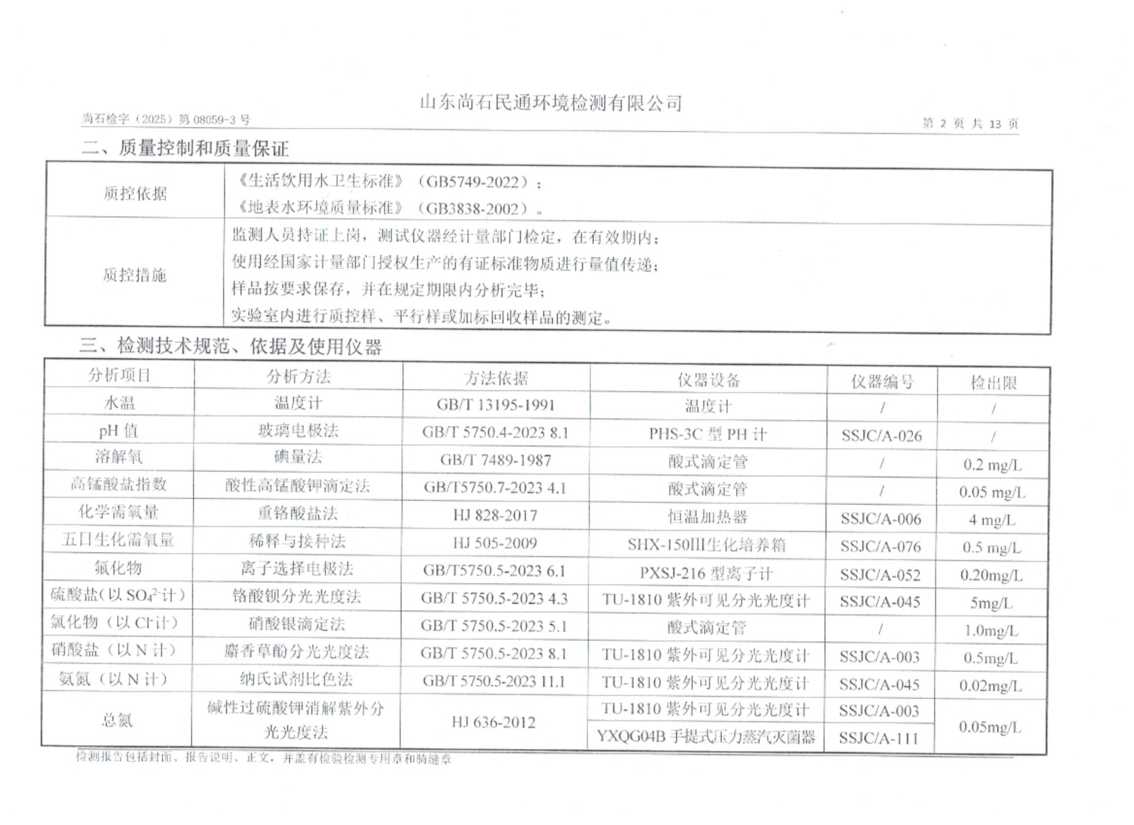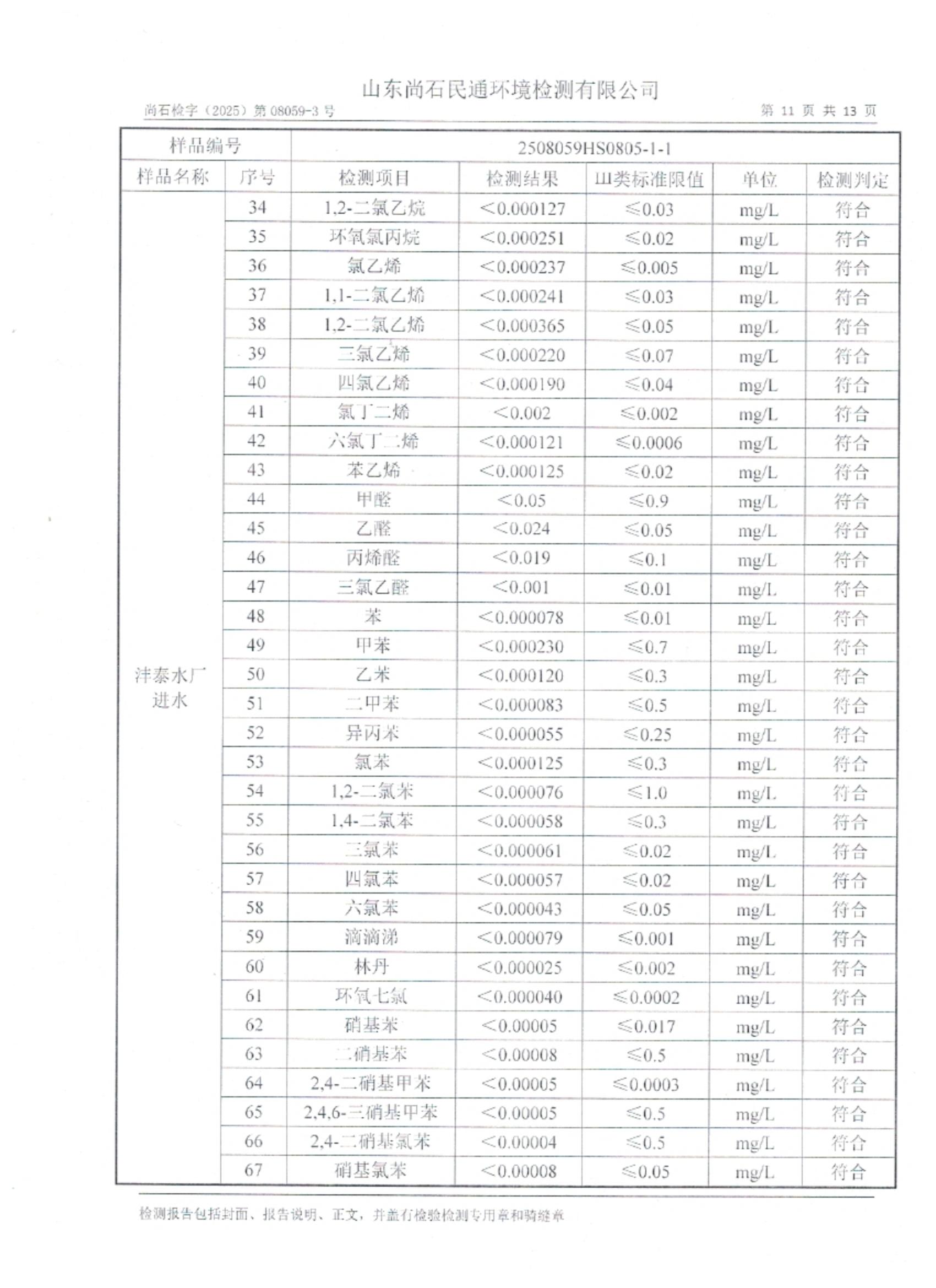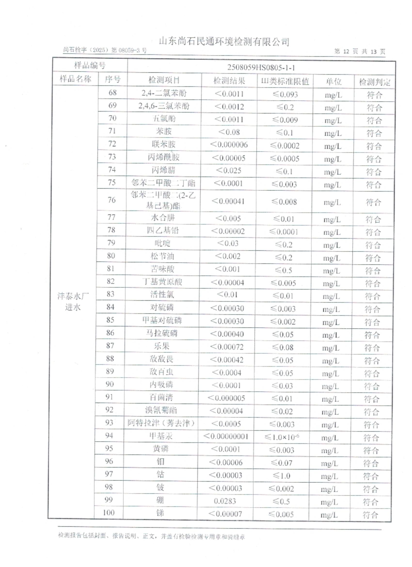 淄博灃泰供水服務(wù)有限公司地表水月檢報(bào)告