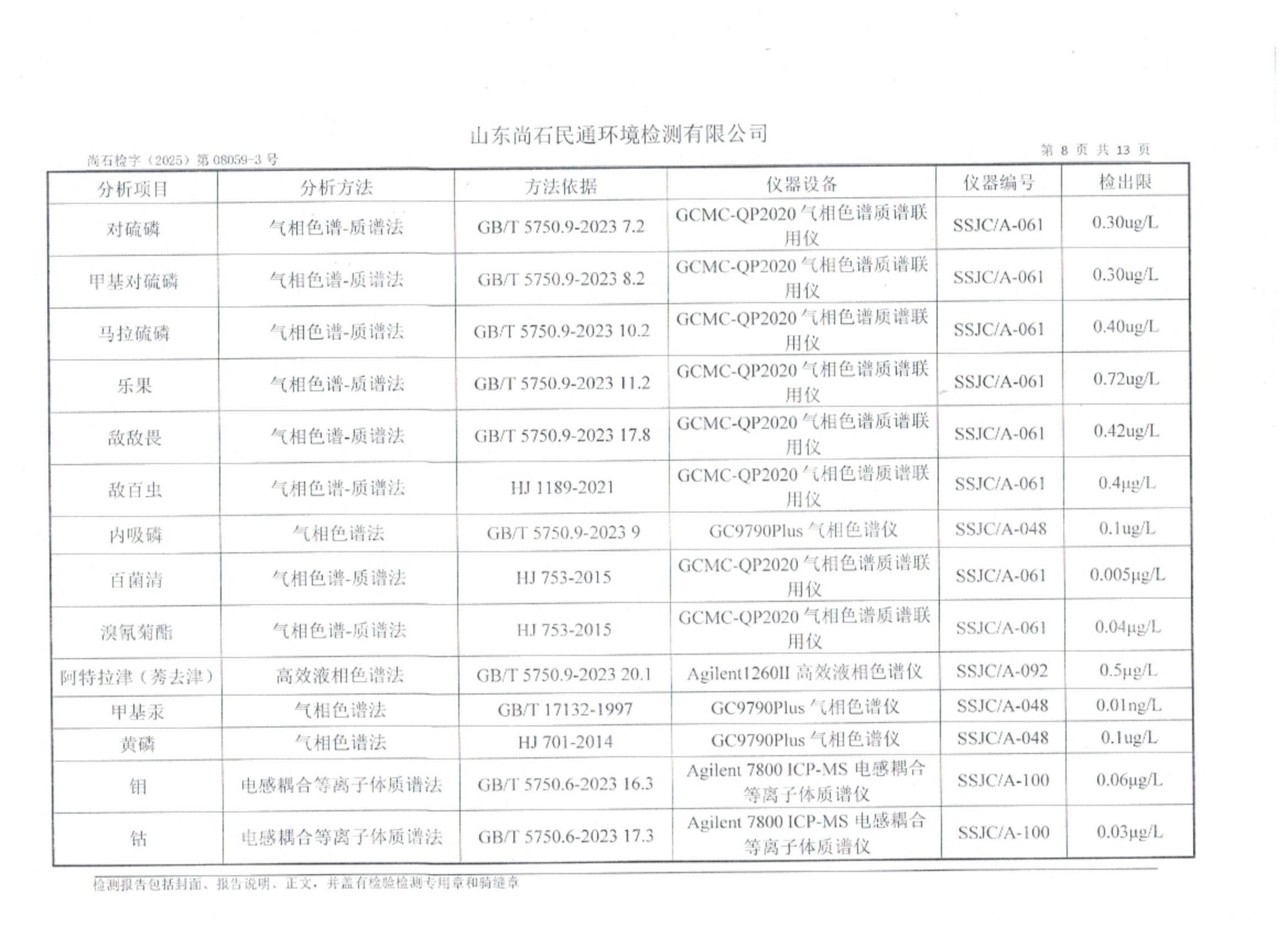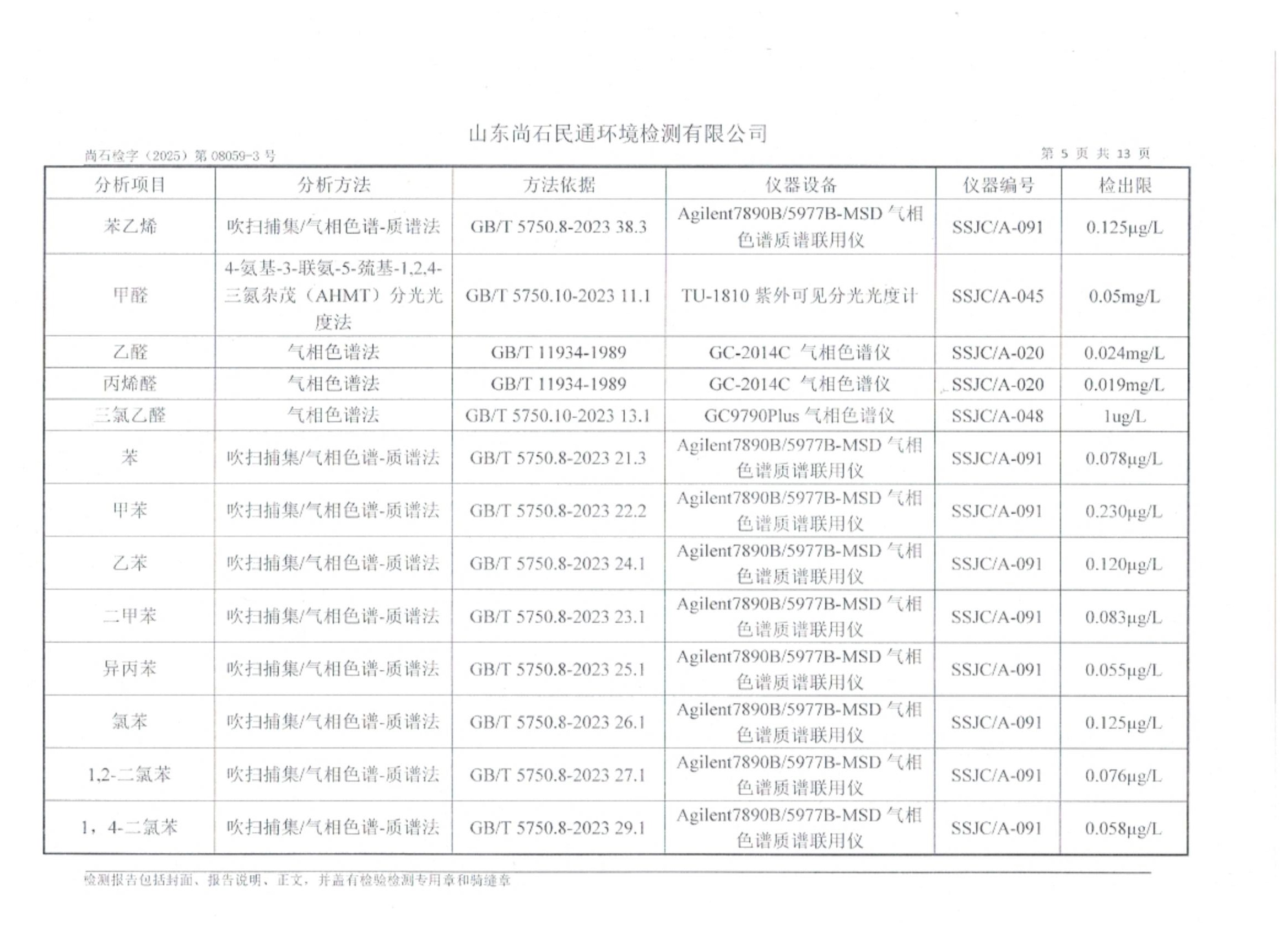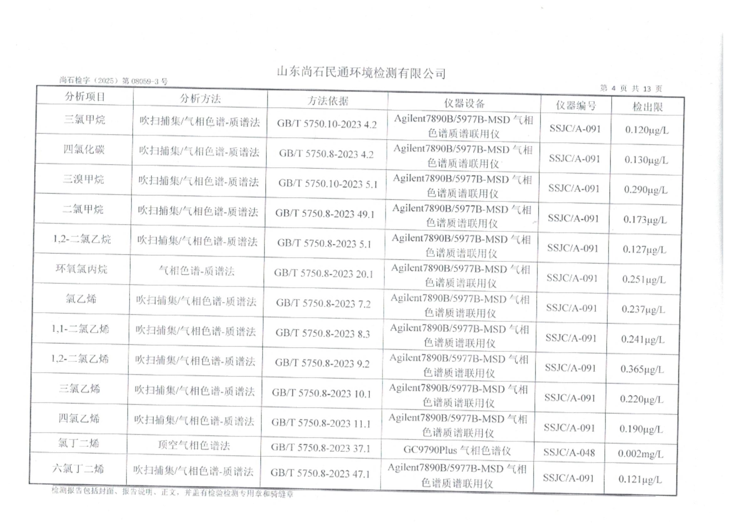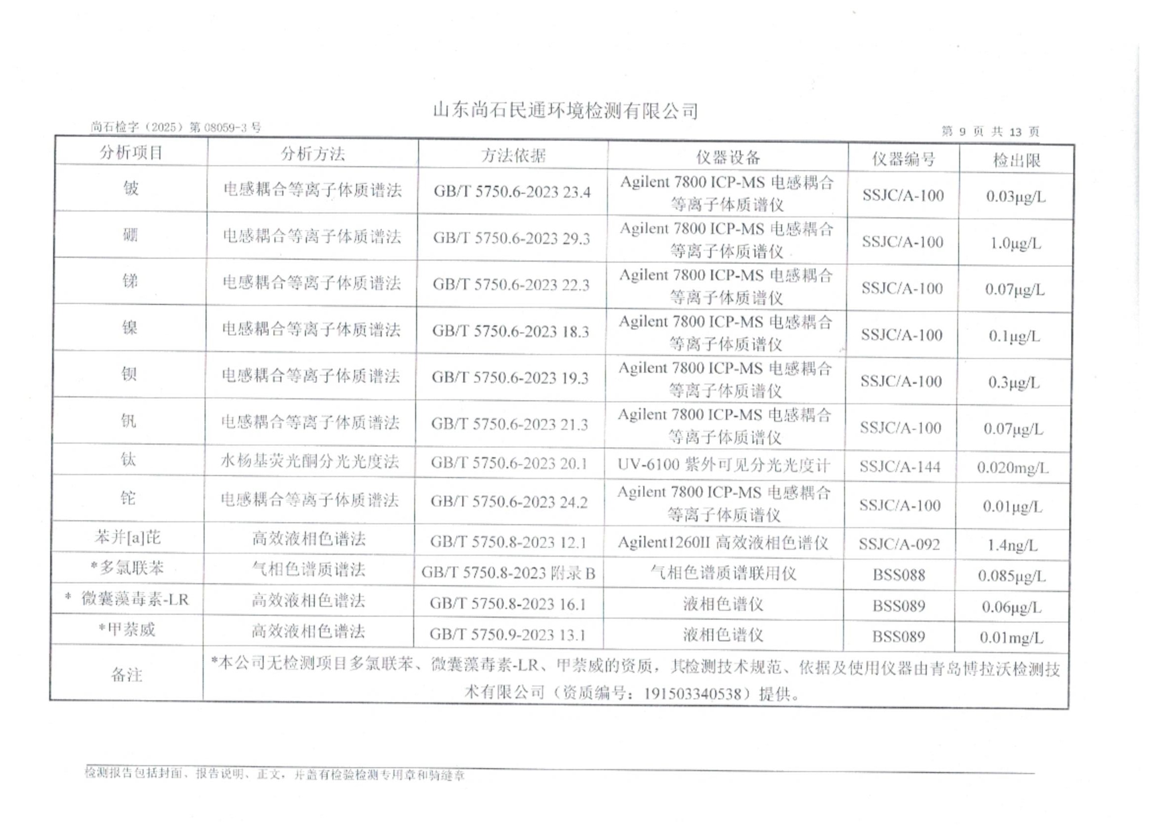 淄博灃泰供水服務(wù)有限公司地表水月檢報(bào)告