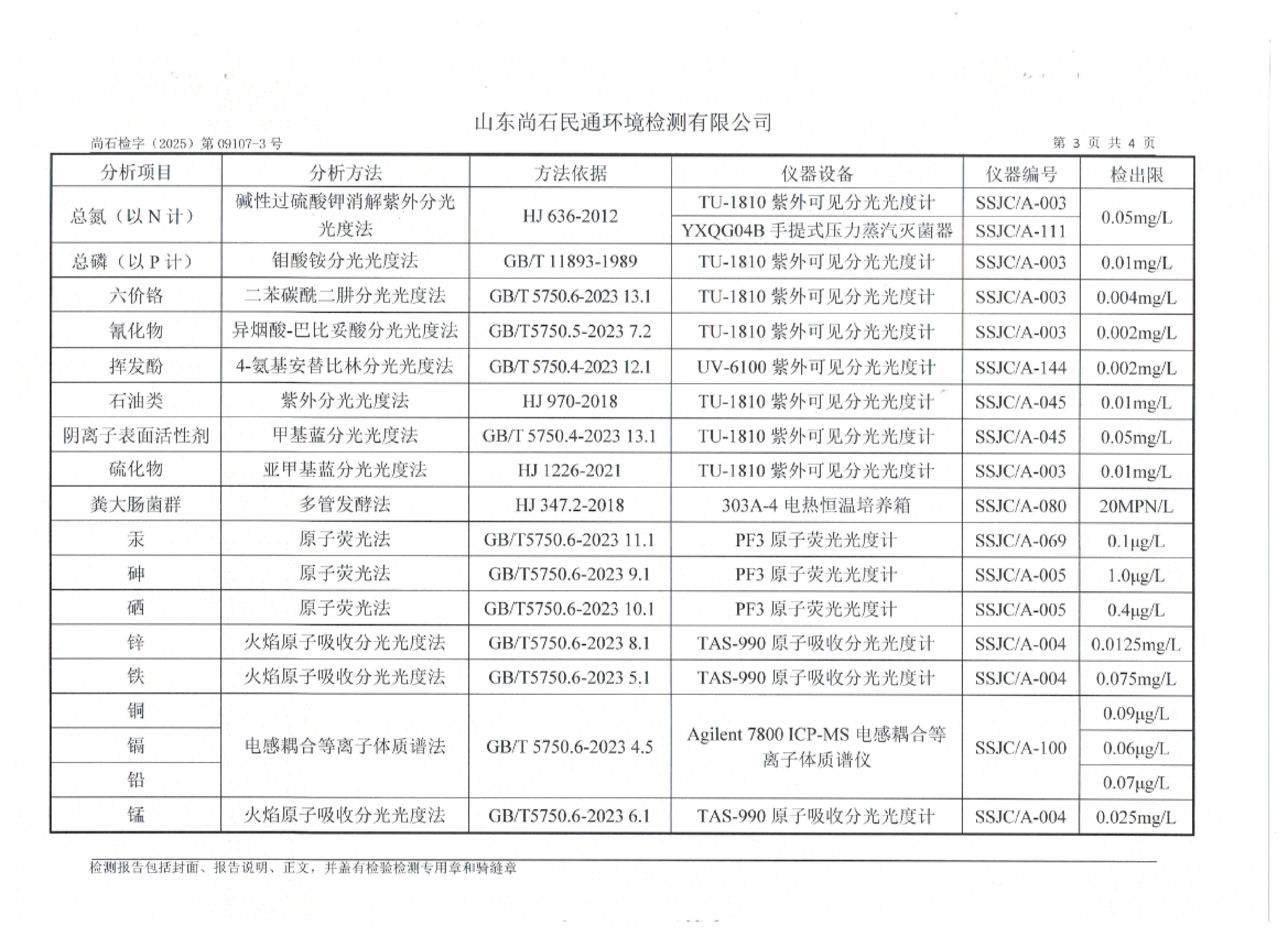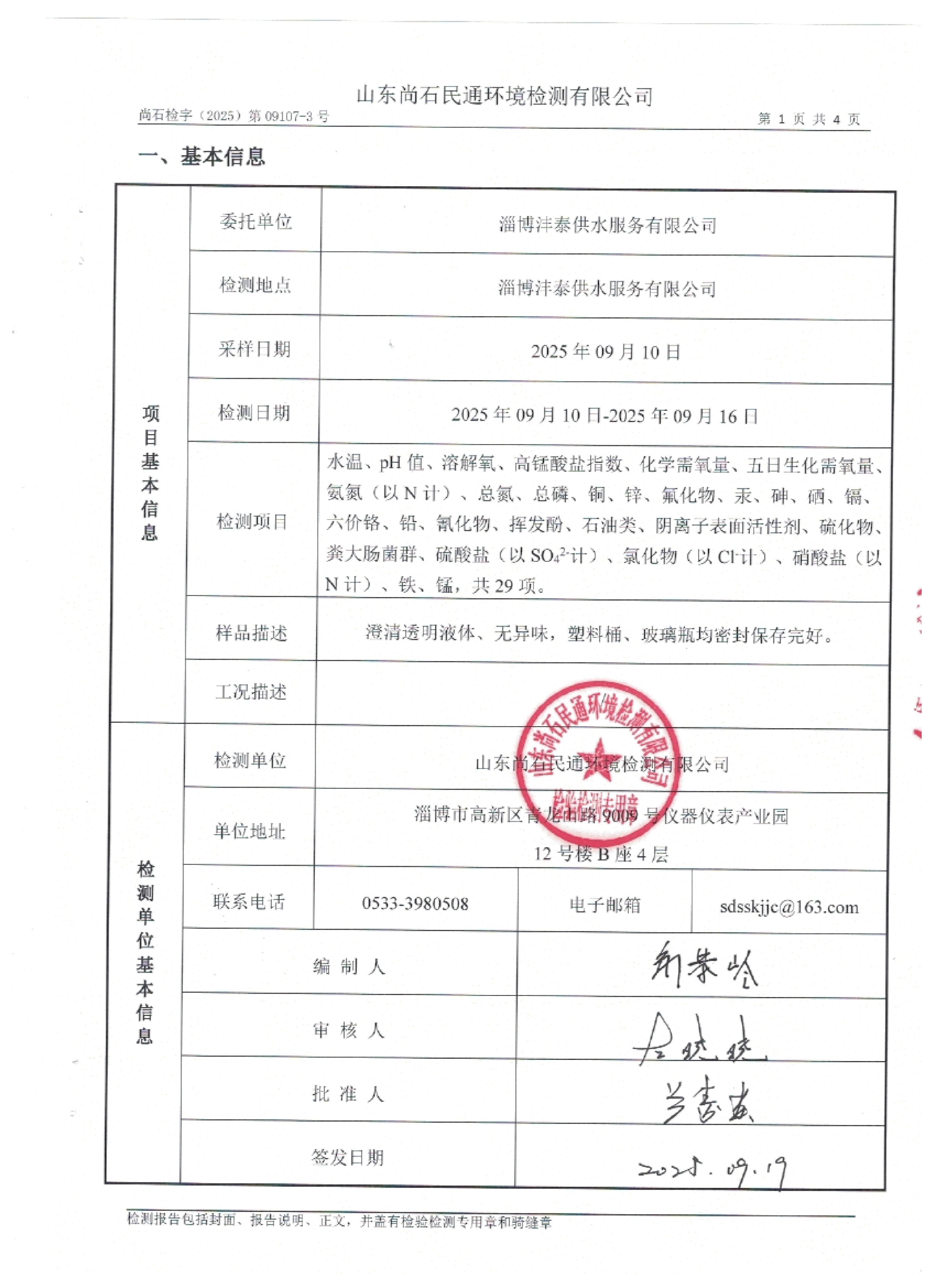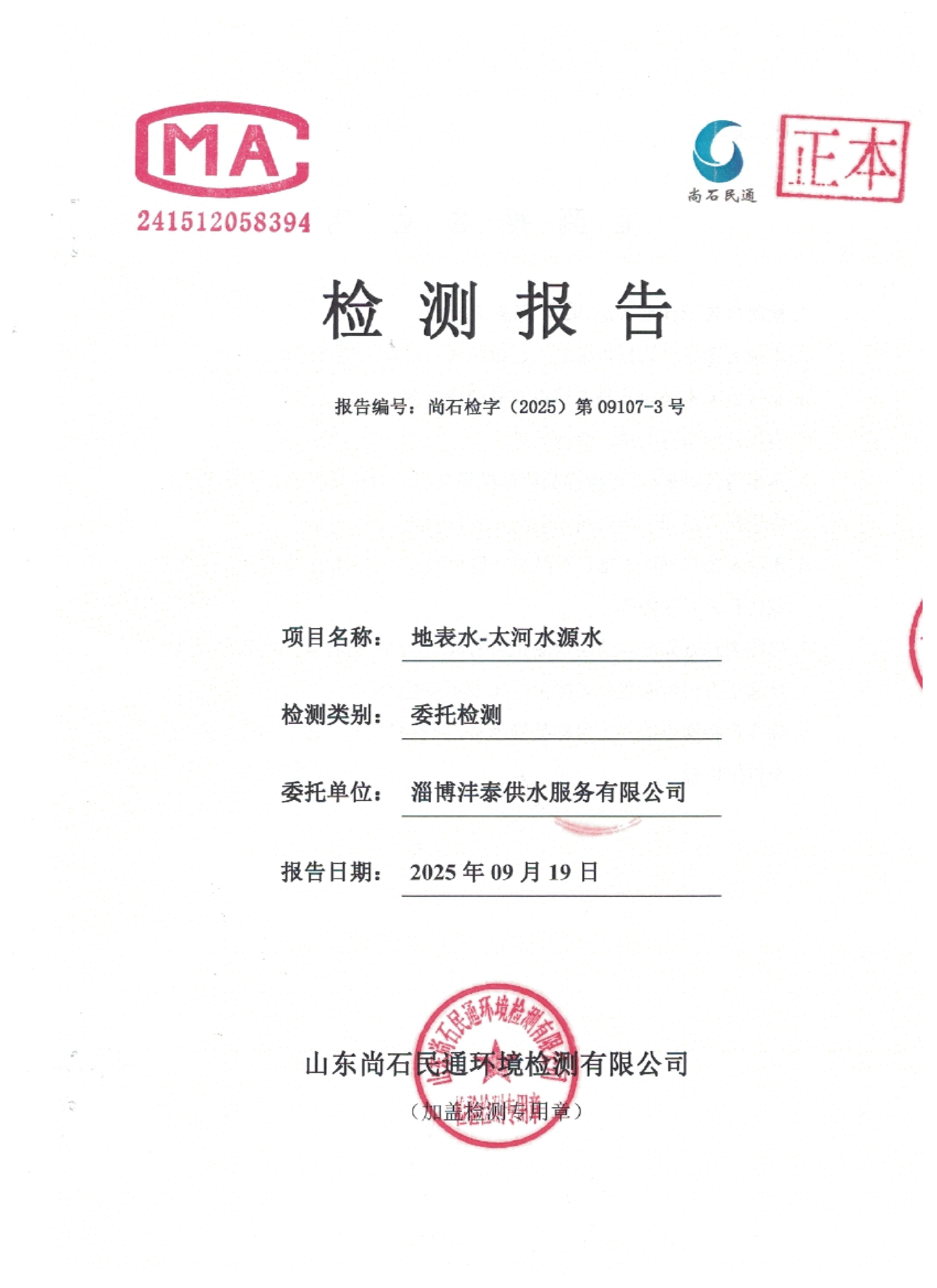 淄博灃泰供水服務(wù)有限公司地表水月檢報(bào)告