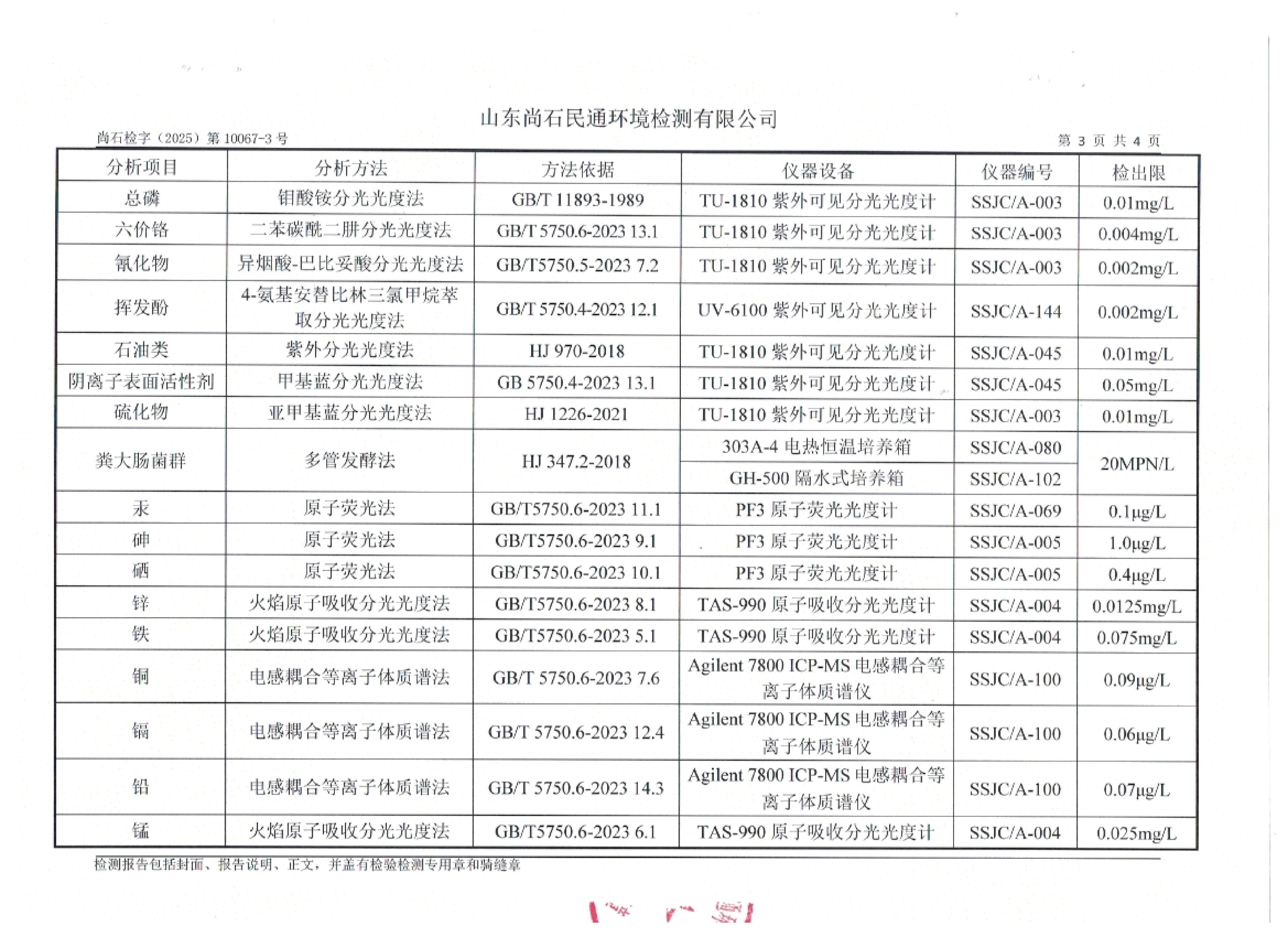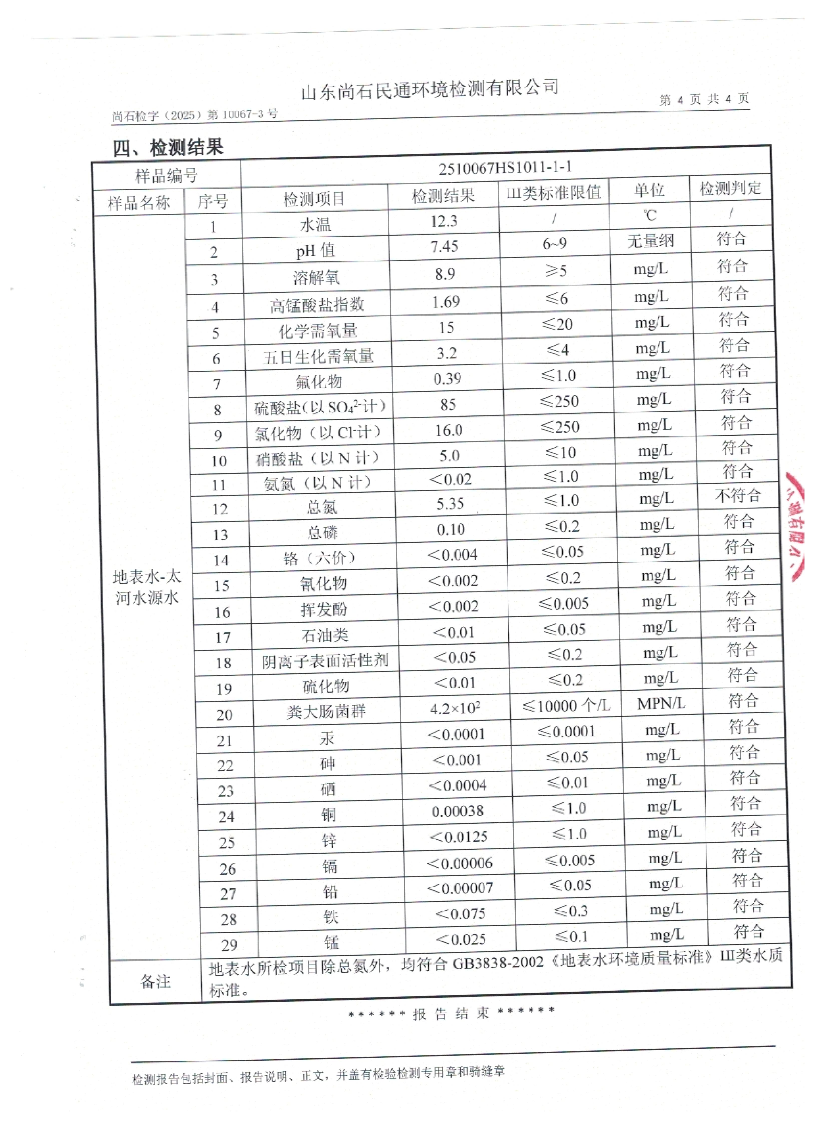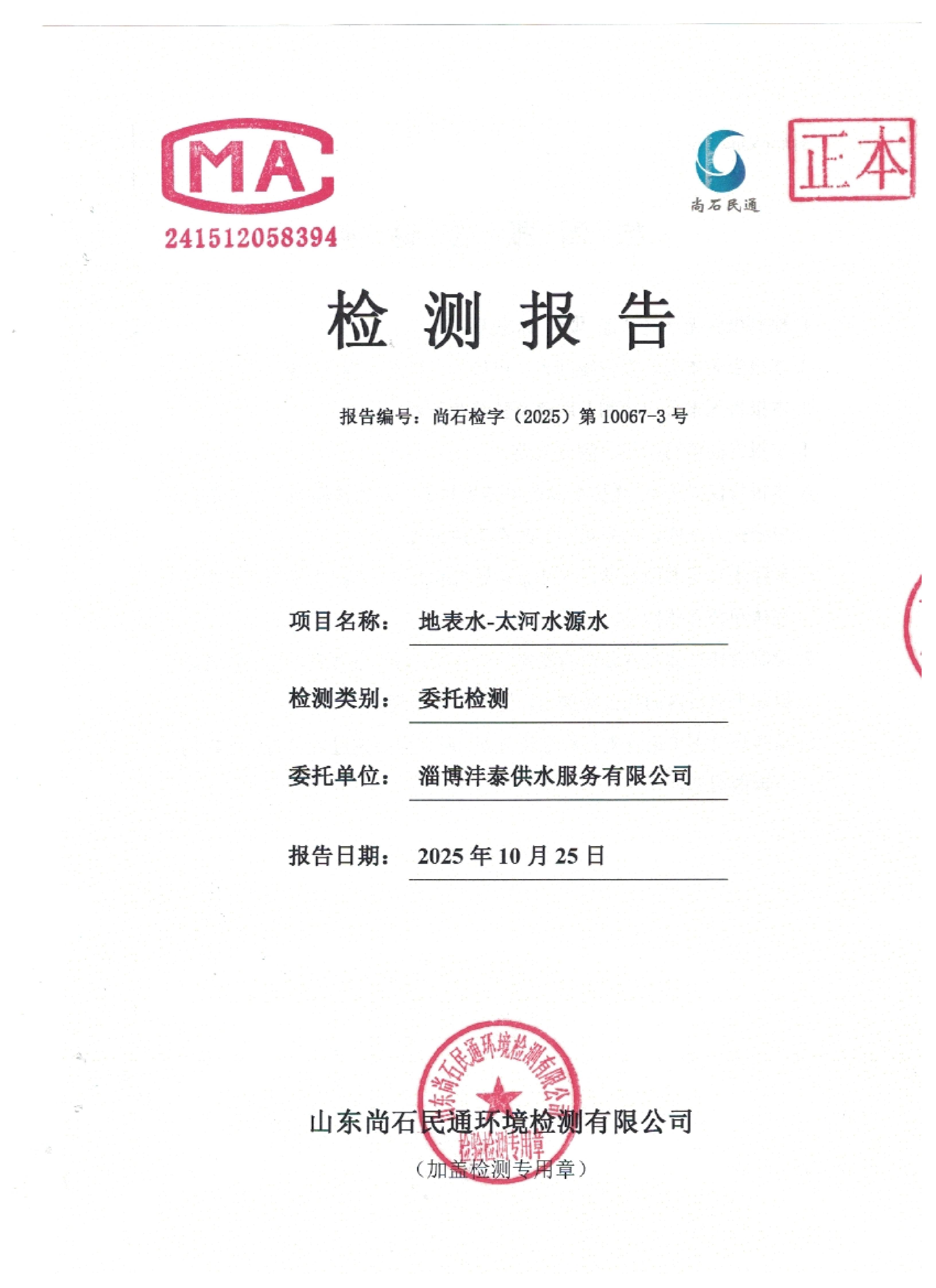 淄博灃泰供水服務(wù)有限公司地表水月檢報(bào)告