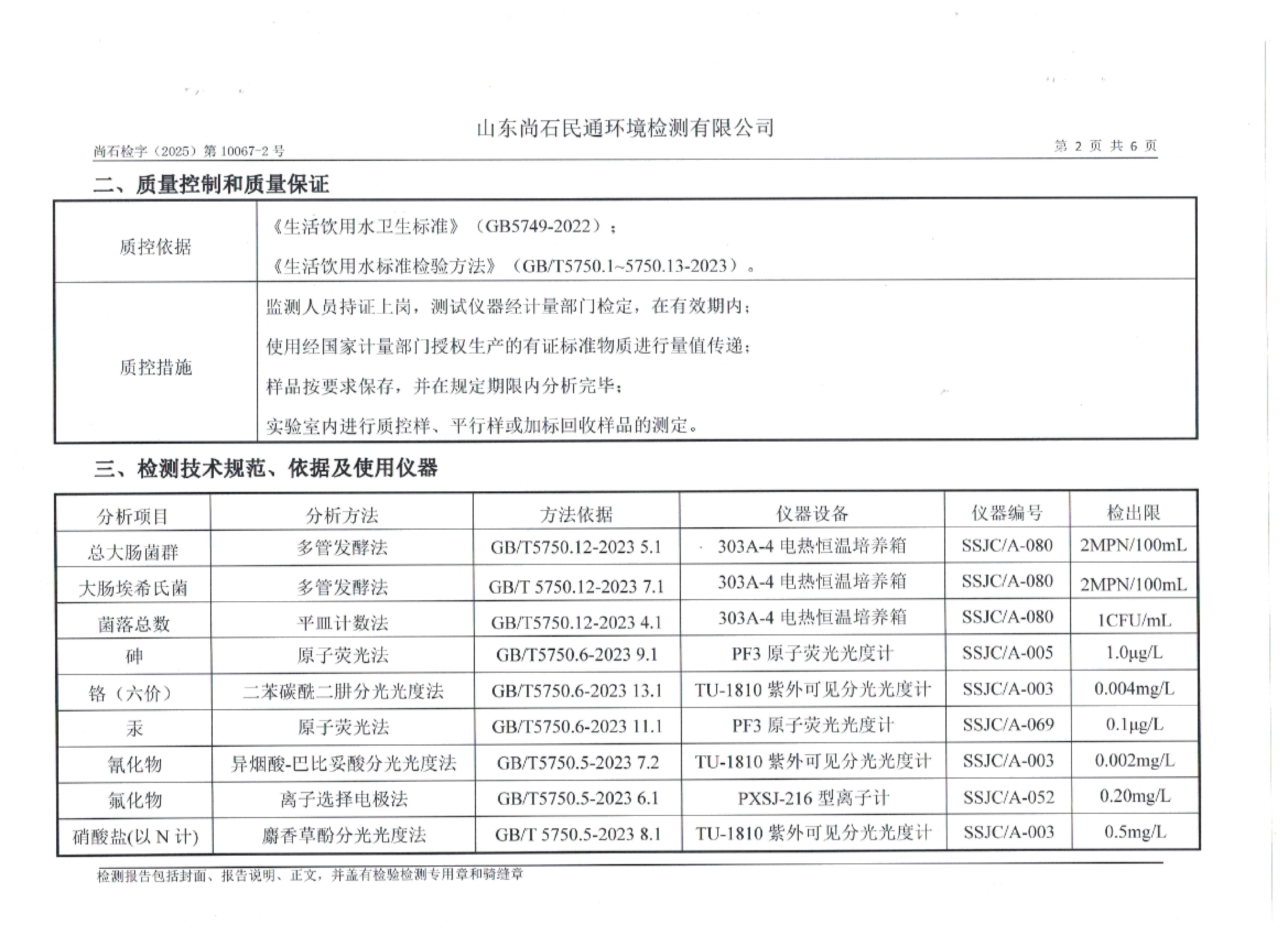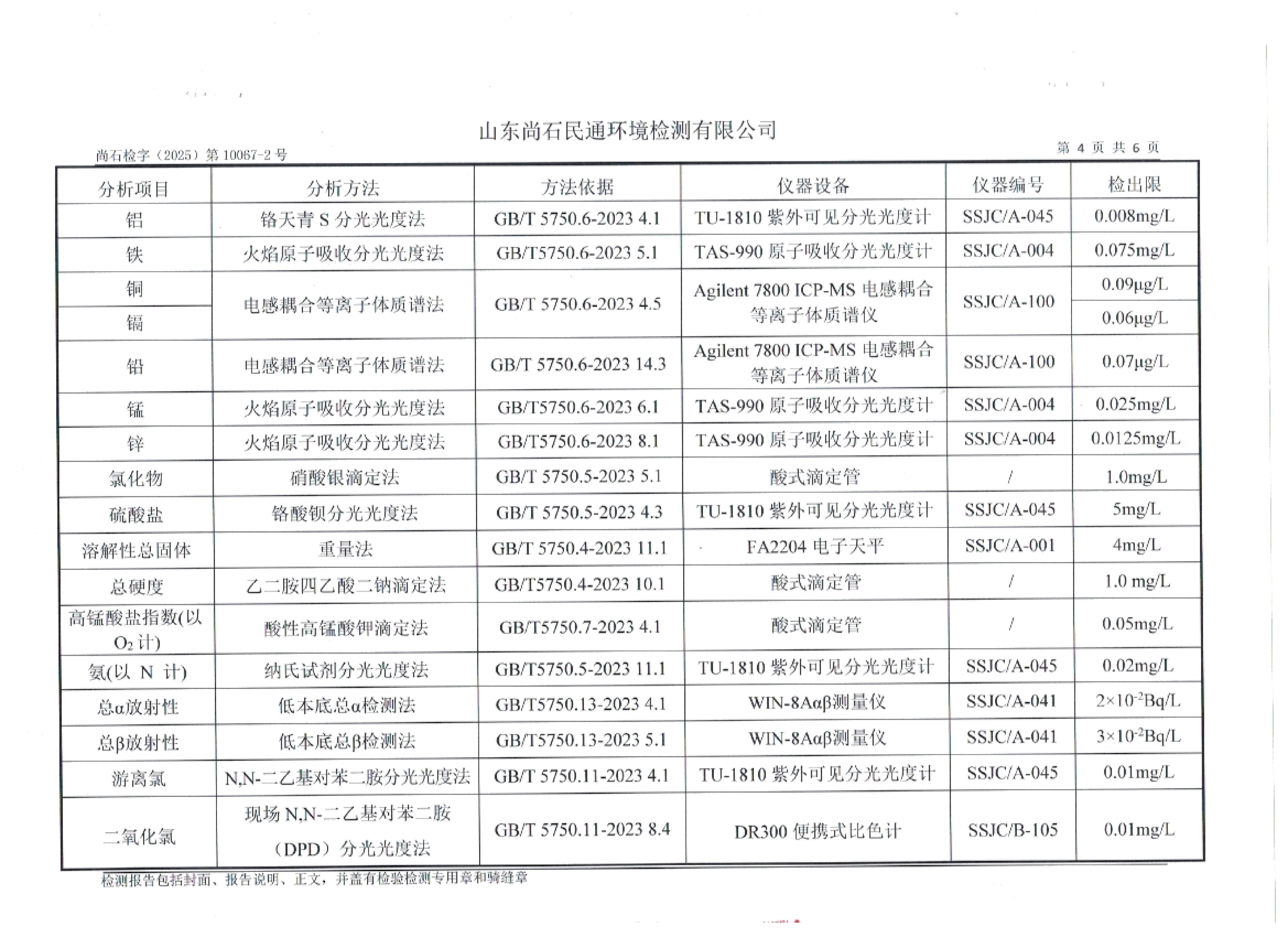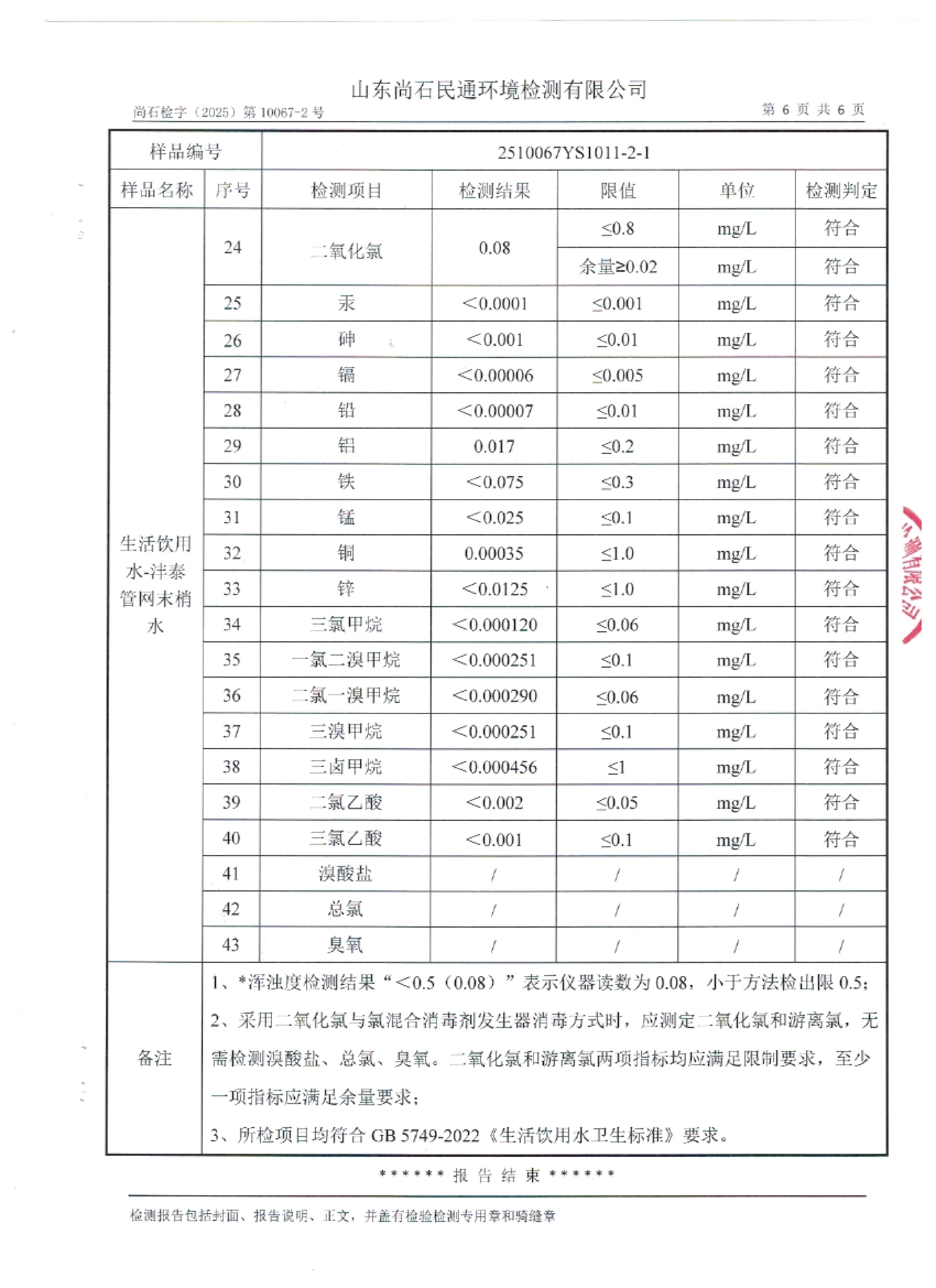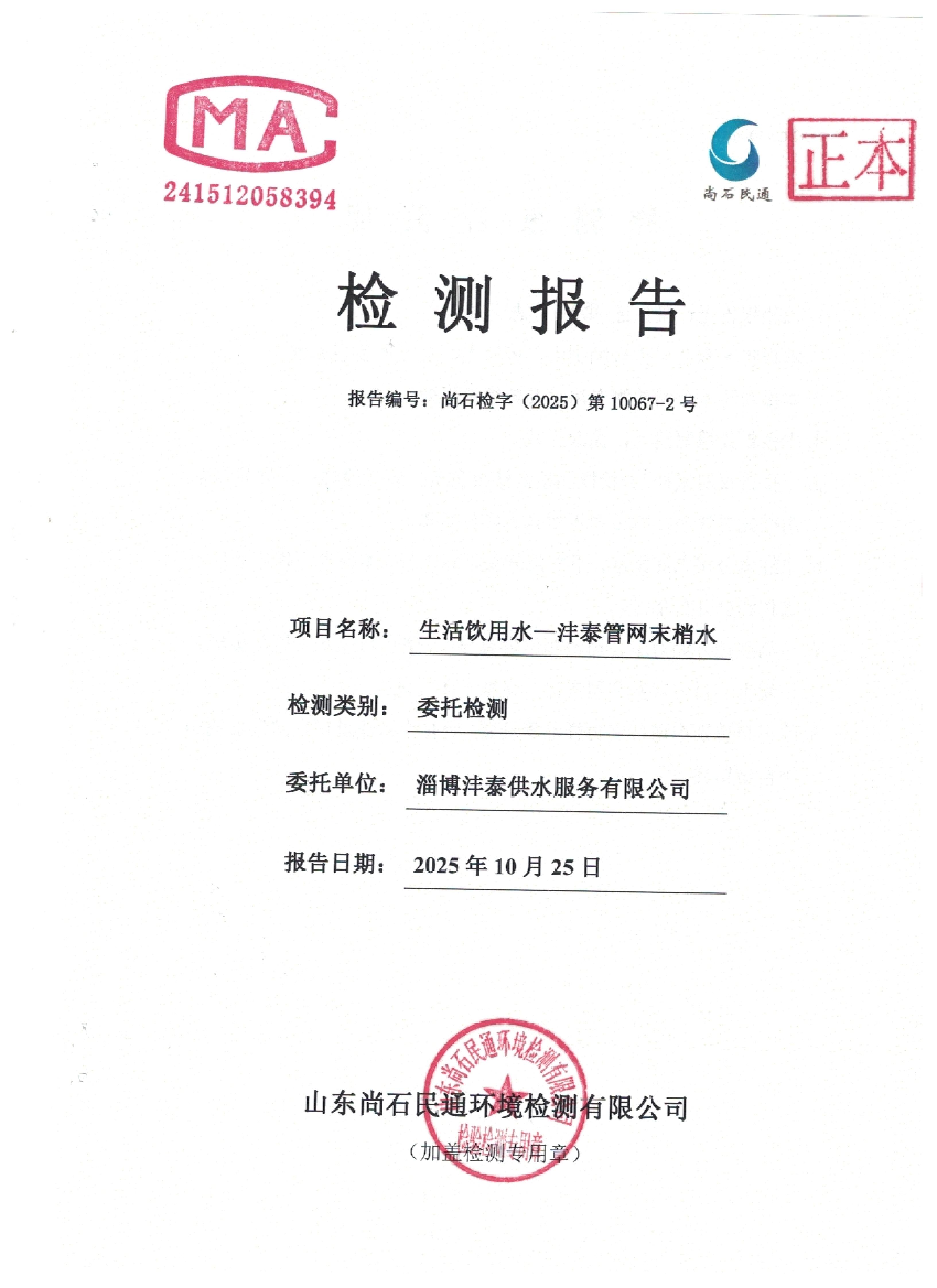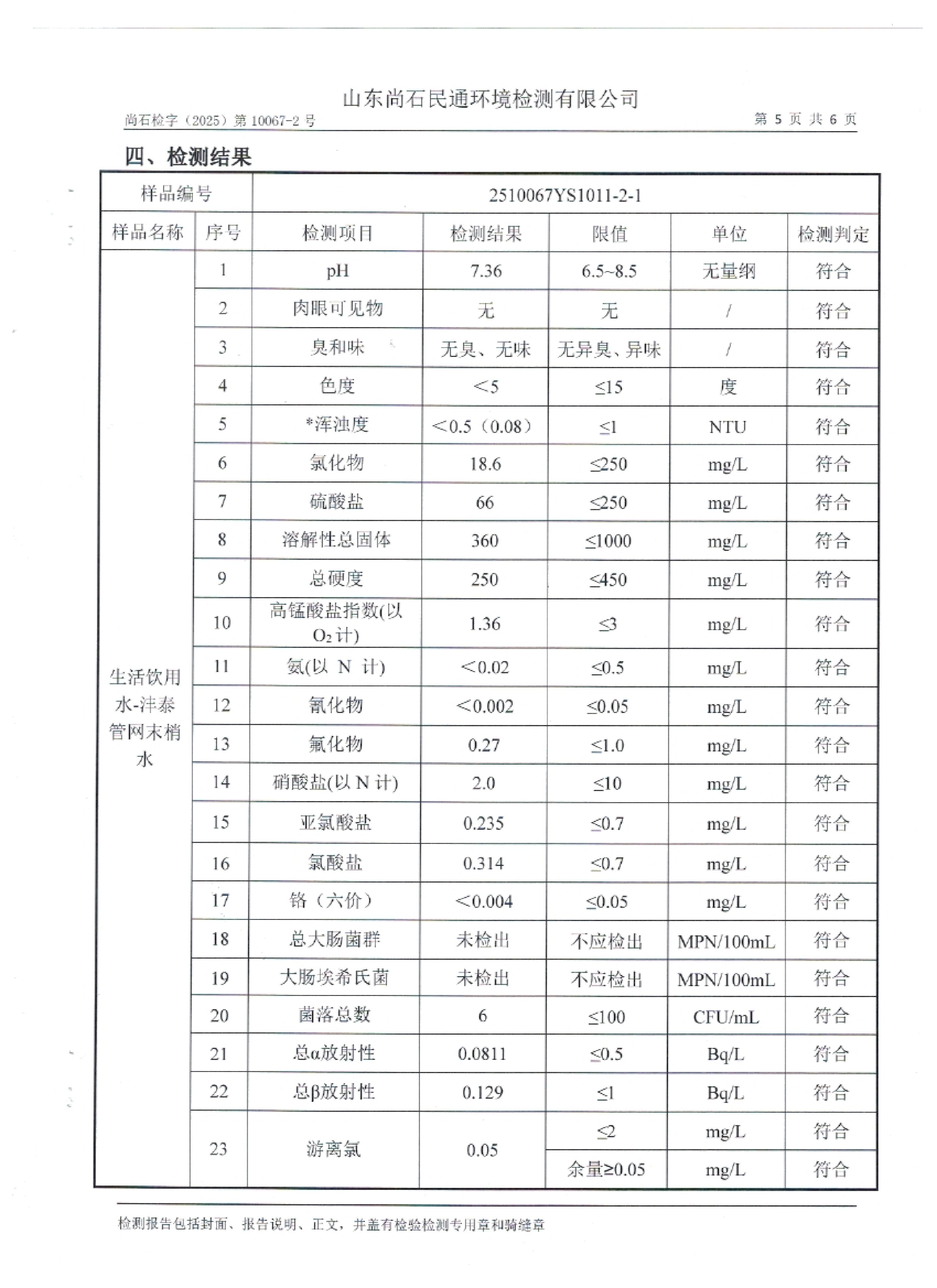 淄博灃泰供水服務(wù)有限公司末梢水月檢報(bào)告