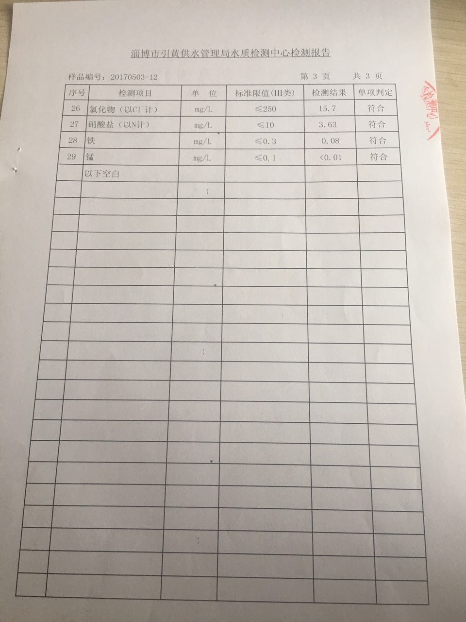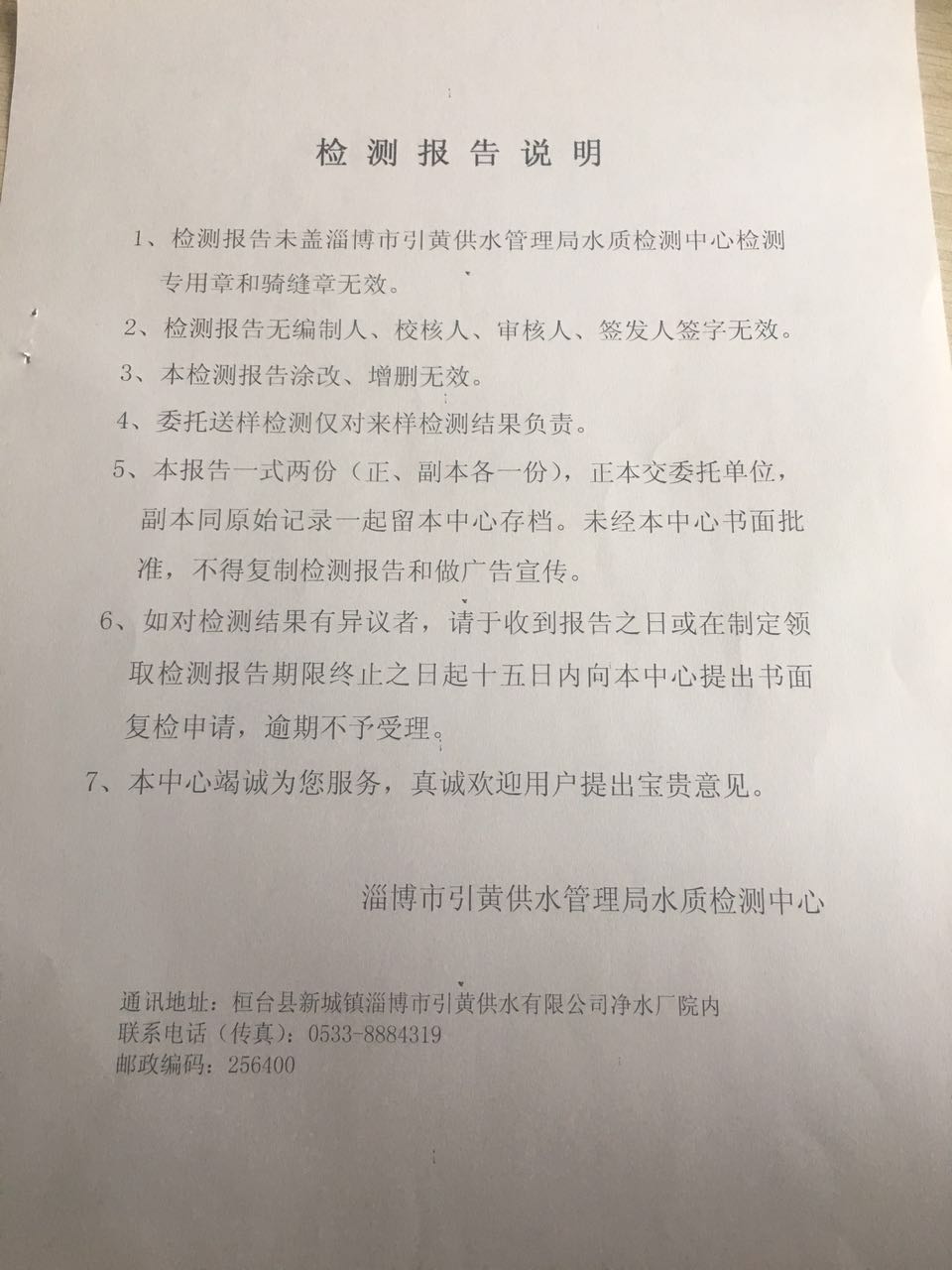 淄博灃泰供水服務(wù)有限公司地表水檢測月報表