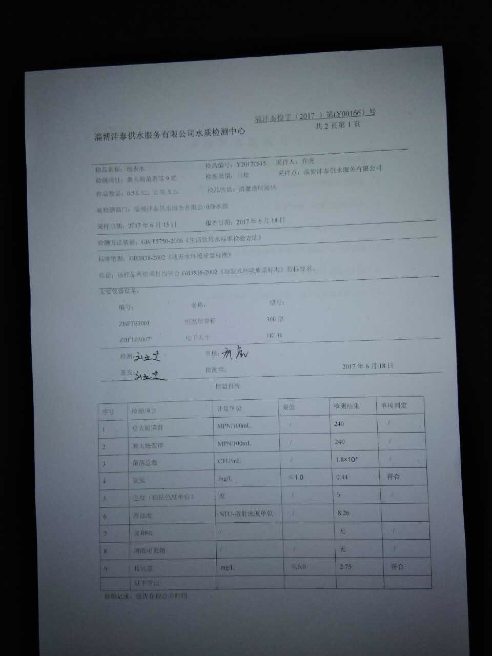 淄博灃泰供水服務(wù)有限公司地表水檢測(cè)日?qǐng)?bào)表
