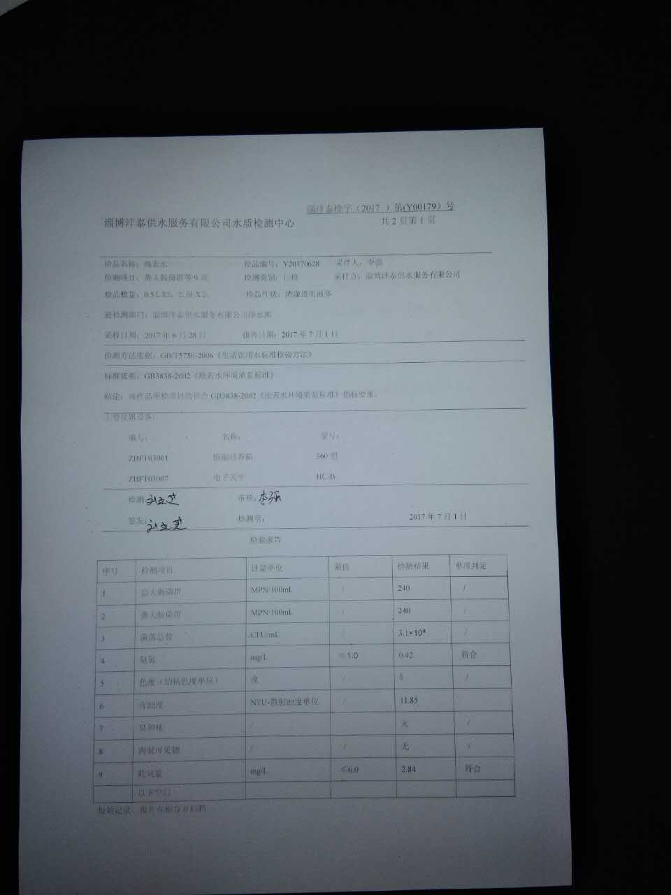淄博灃泰供水服務(wù)有限公司地表水檢測(cè)日?qǐng)?bào)表