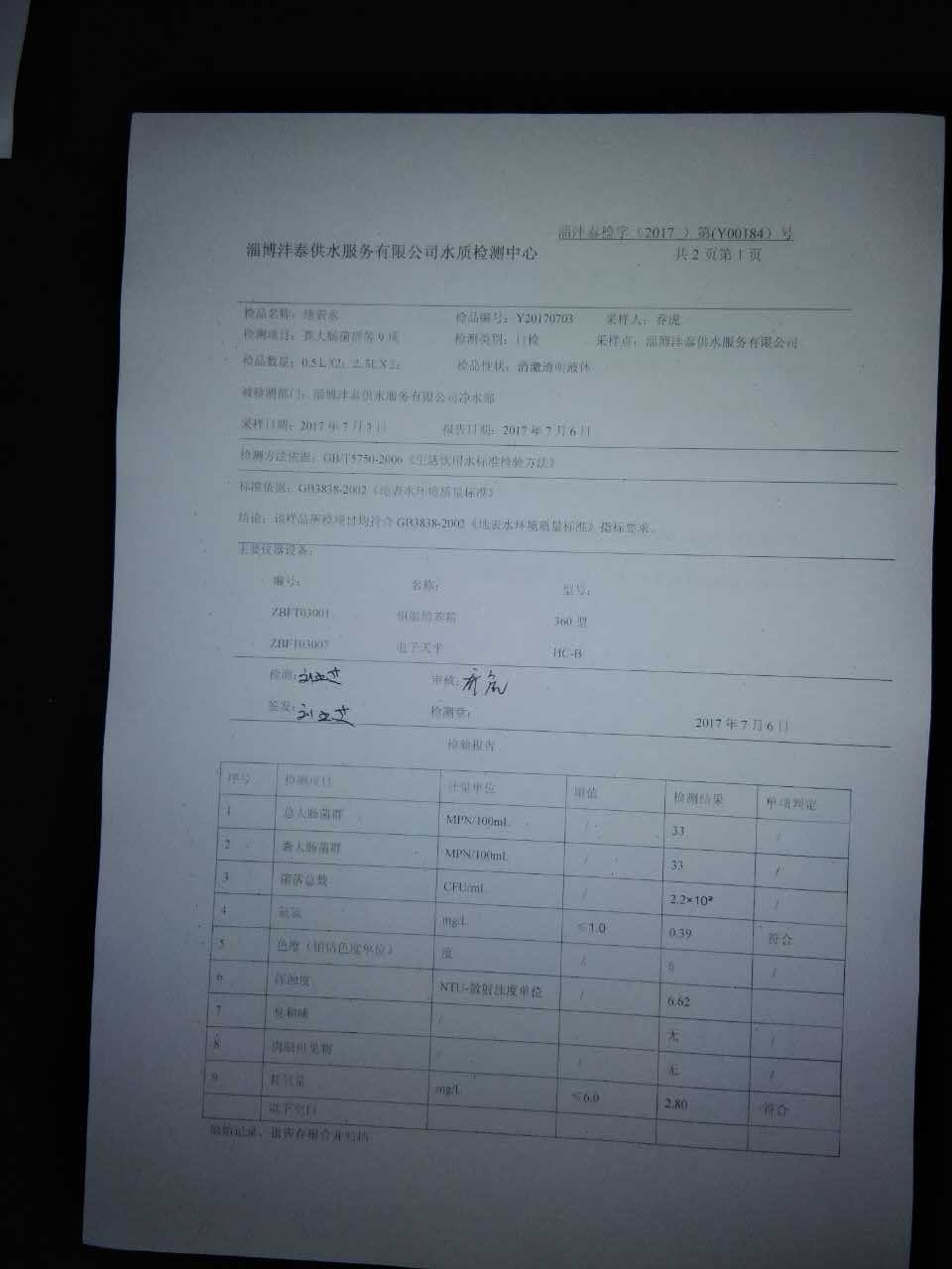 淄博灃泰供水服務(wù)有限公司地表水檢測(cè)日?qǐng)?bào)表