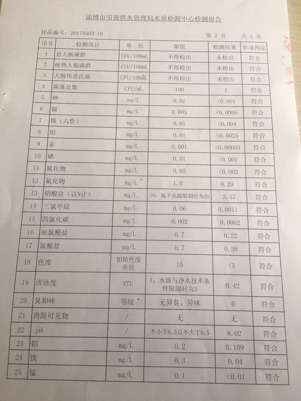 淄博灃泰供水服務(wù)有限公司生活飲用水管網(wǎng)水月檢報(bào)告
