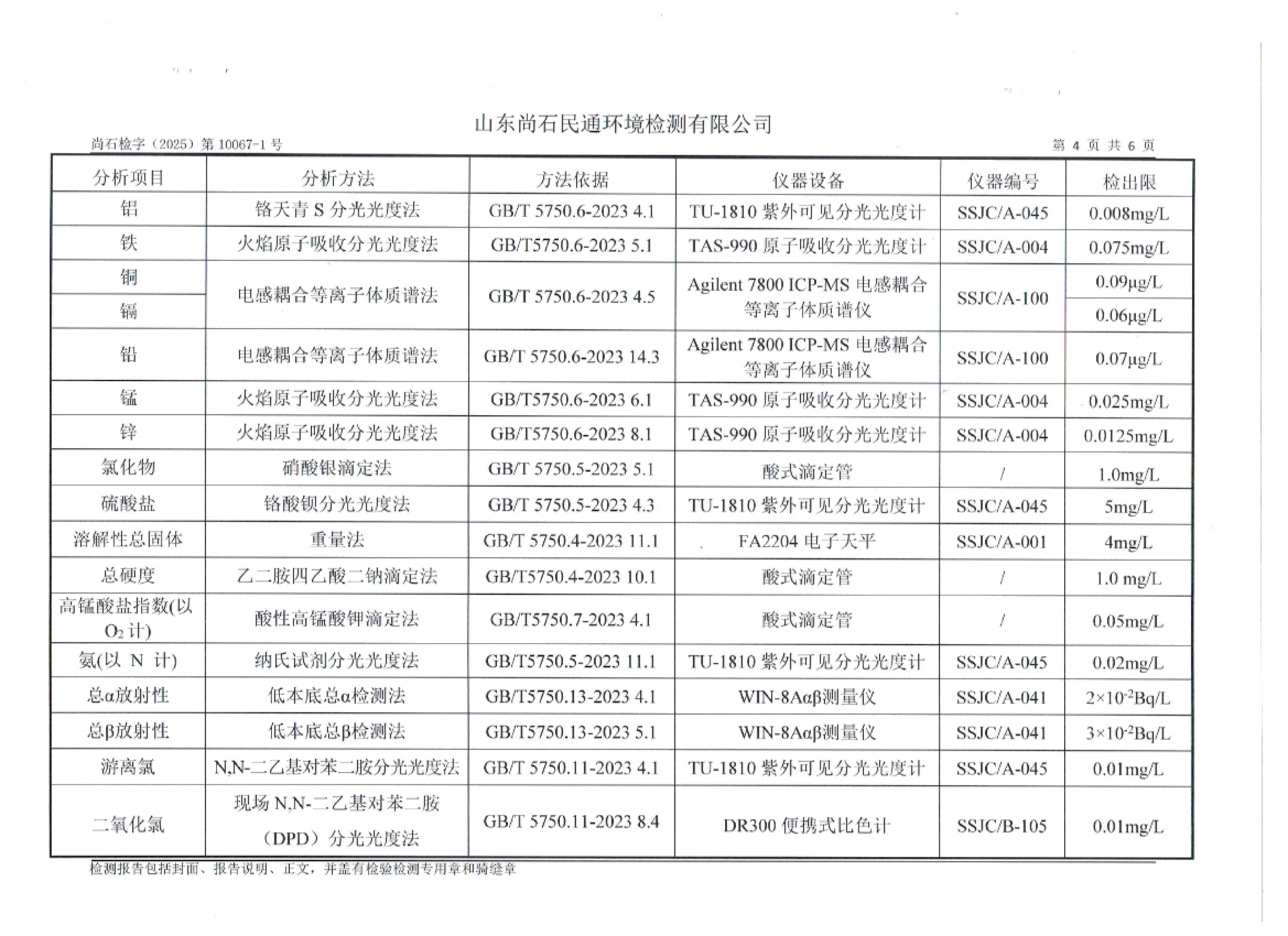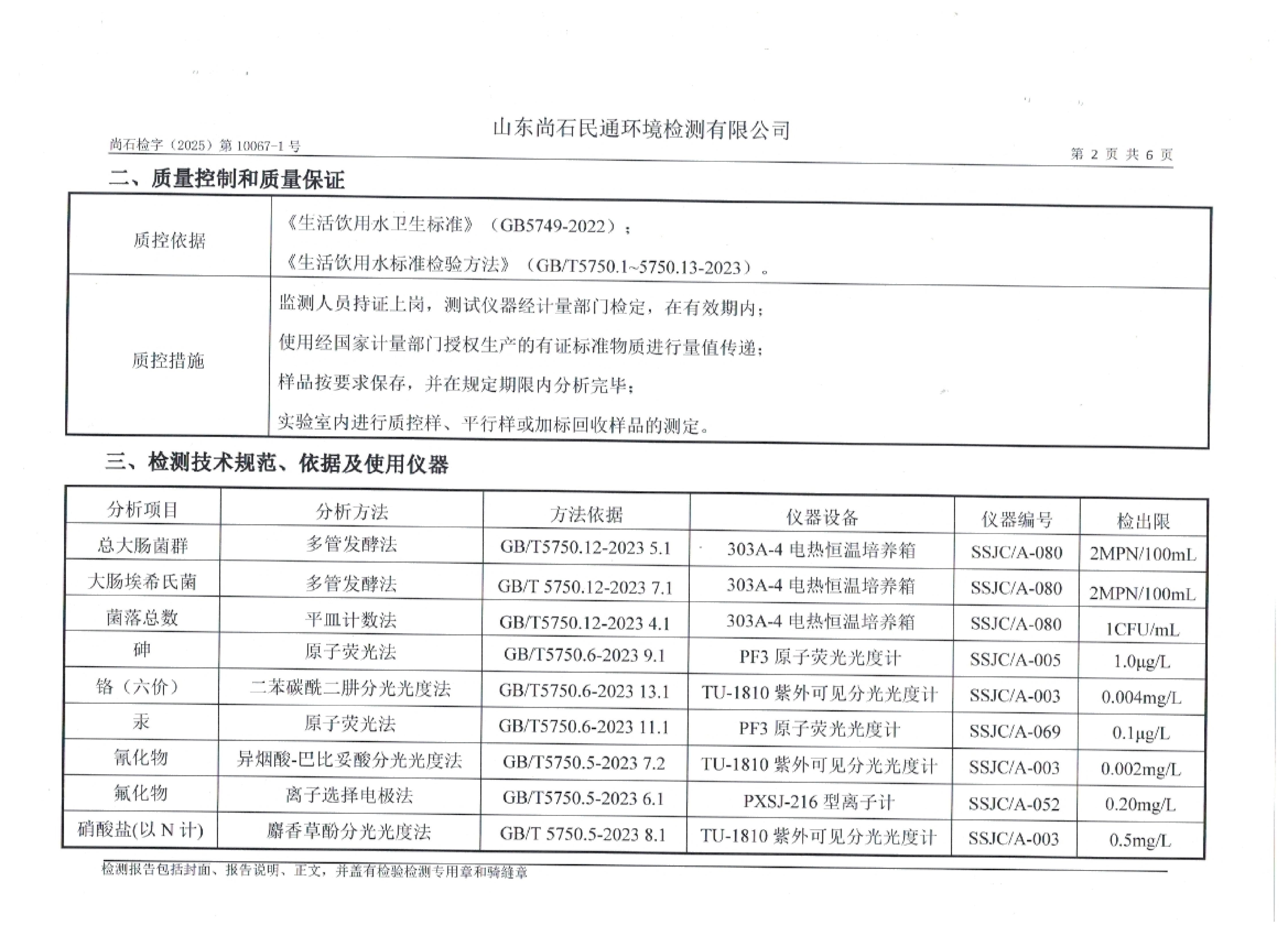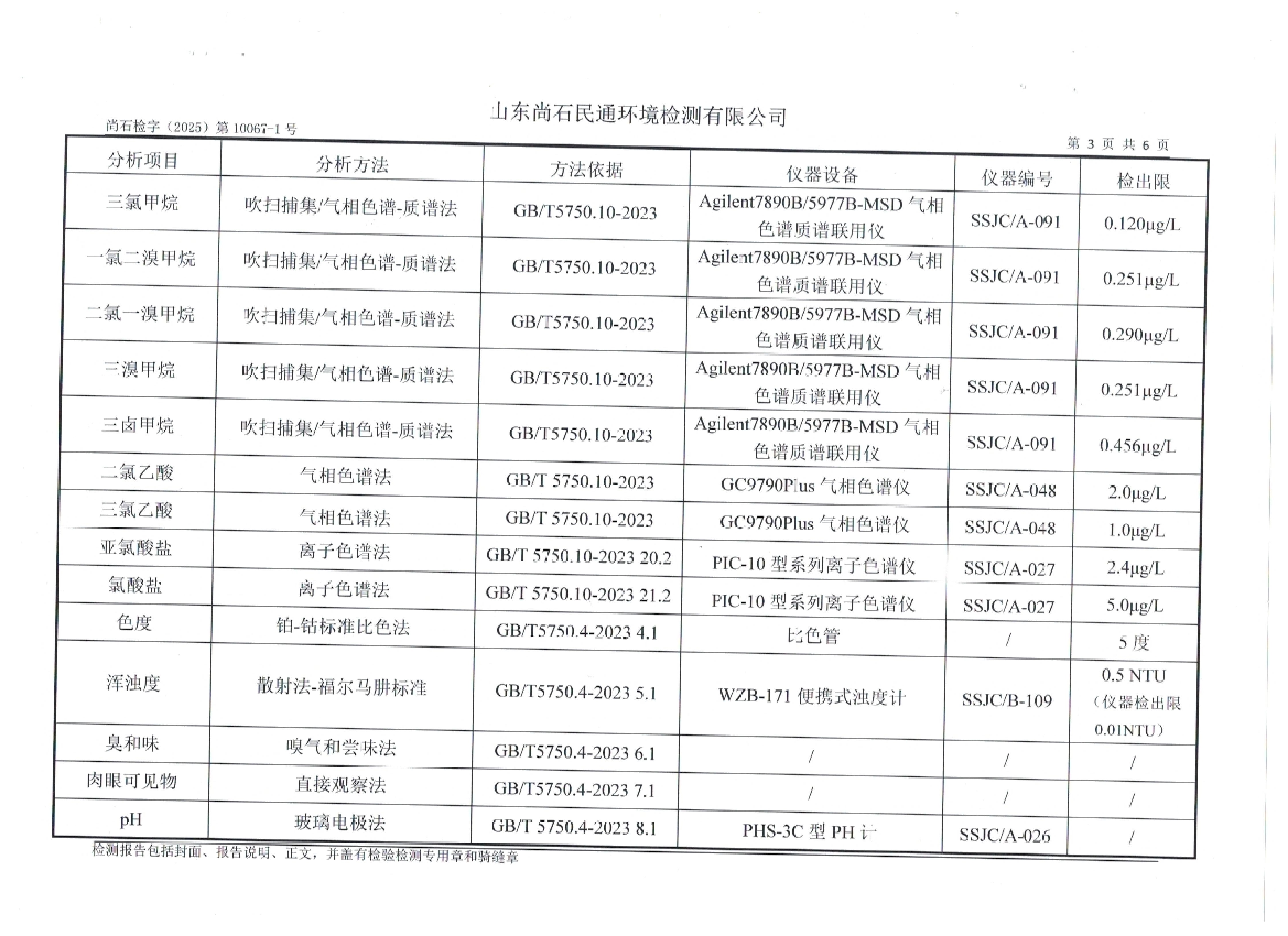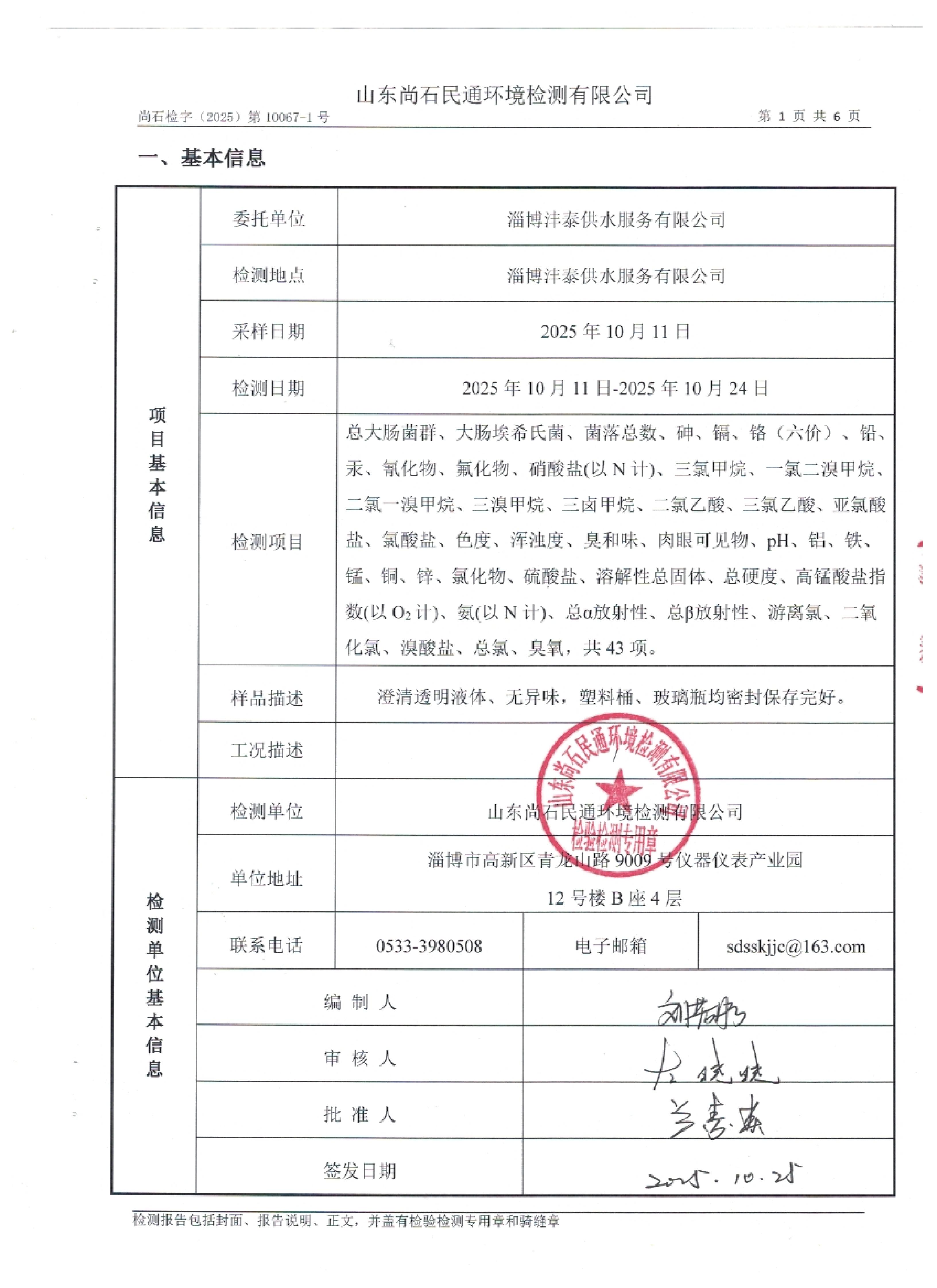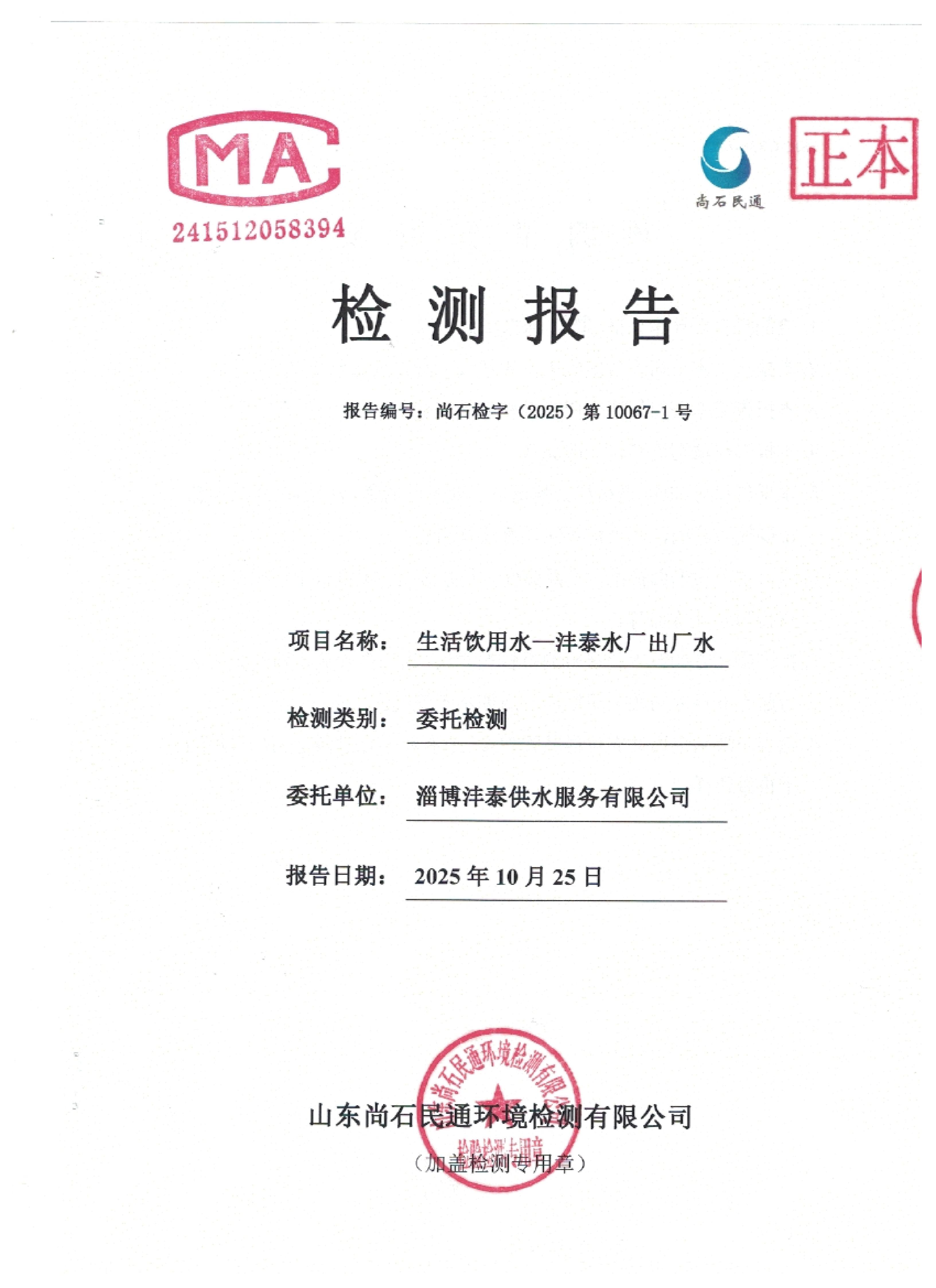 淄博灃泰供水服務(wù)有限公司出廠水月檢報(bào)告