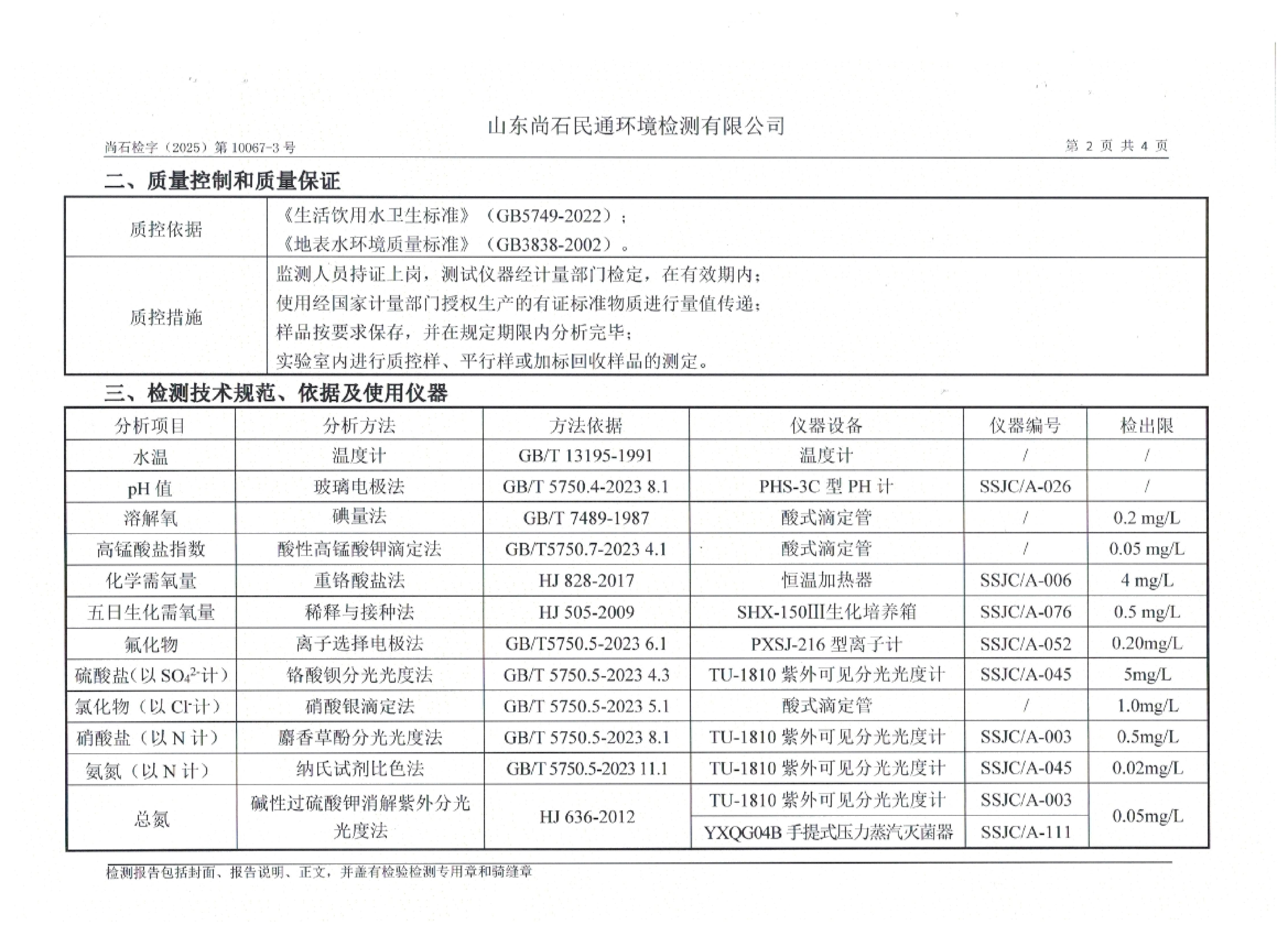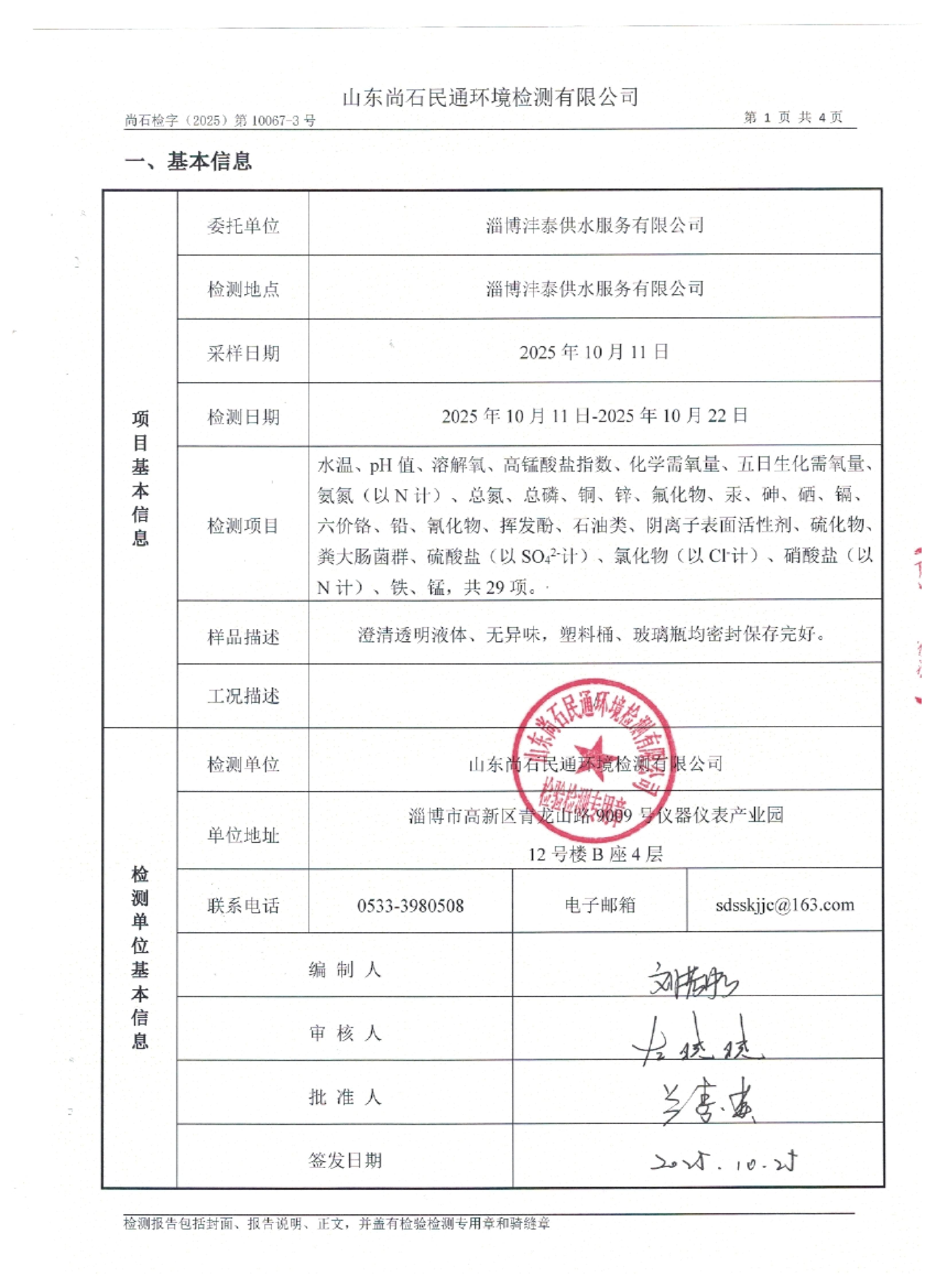 淄博灃泰供水服務(wù)有限公司地表水月檢報(bào)告
