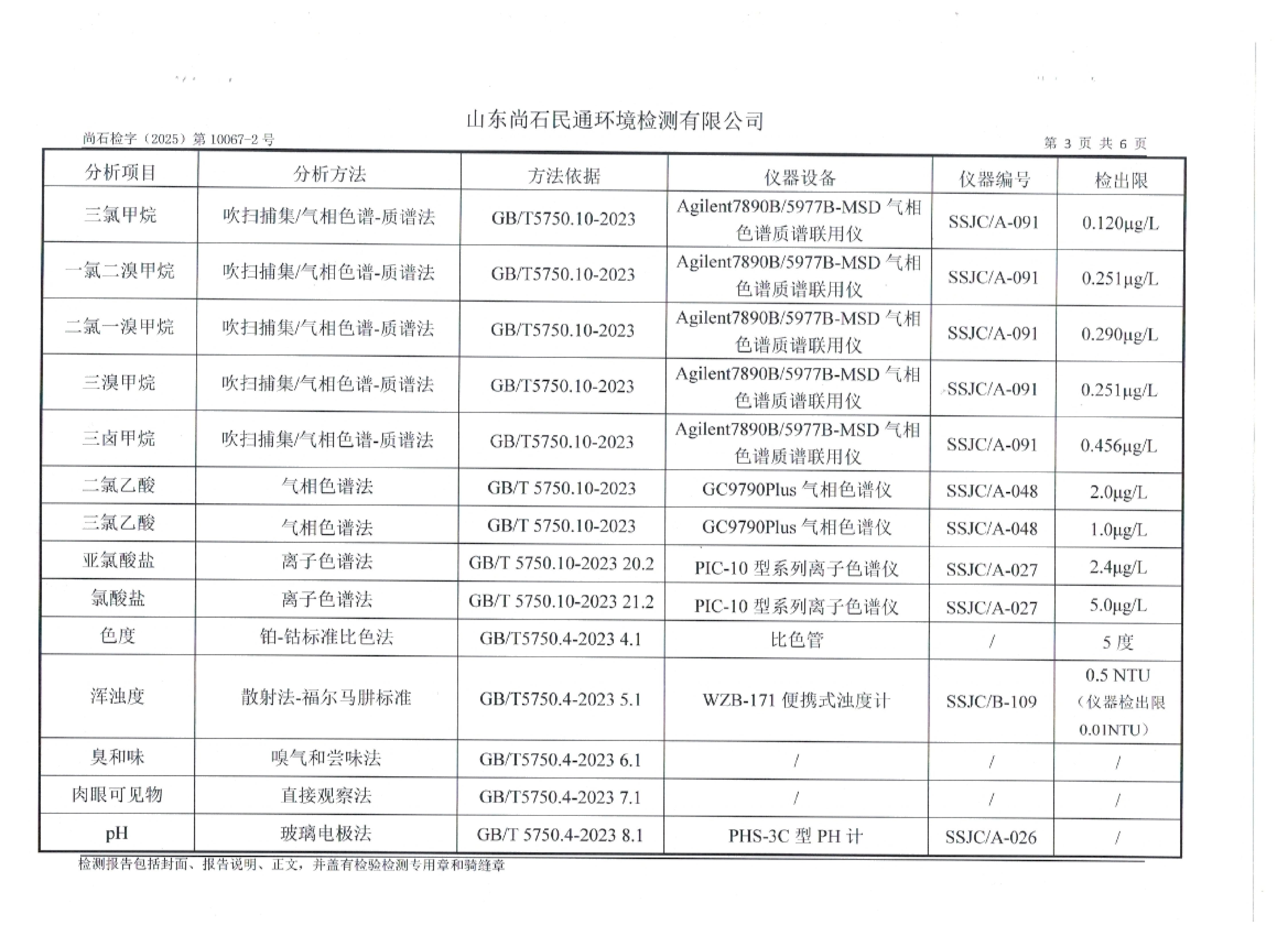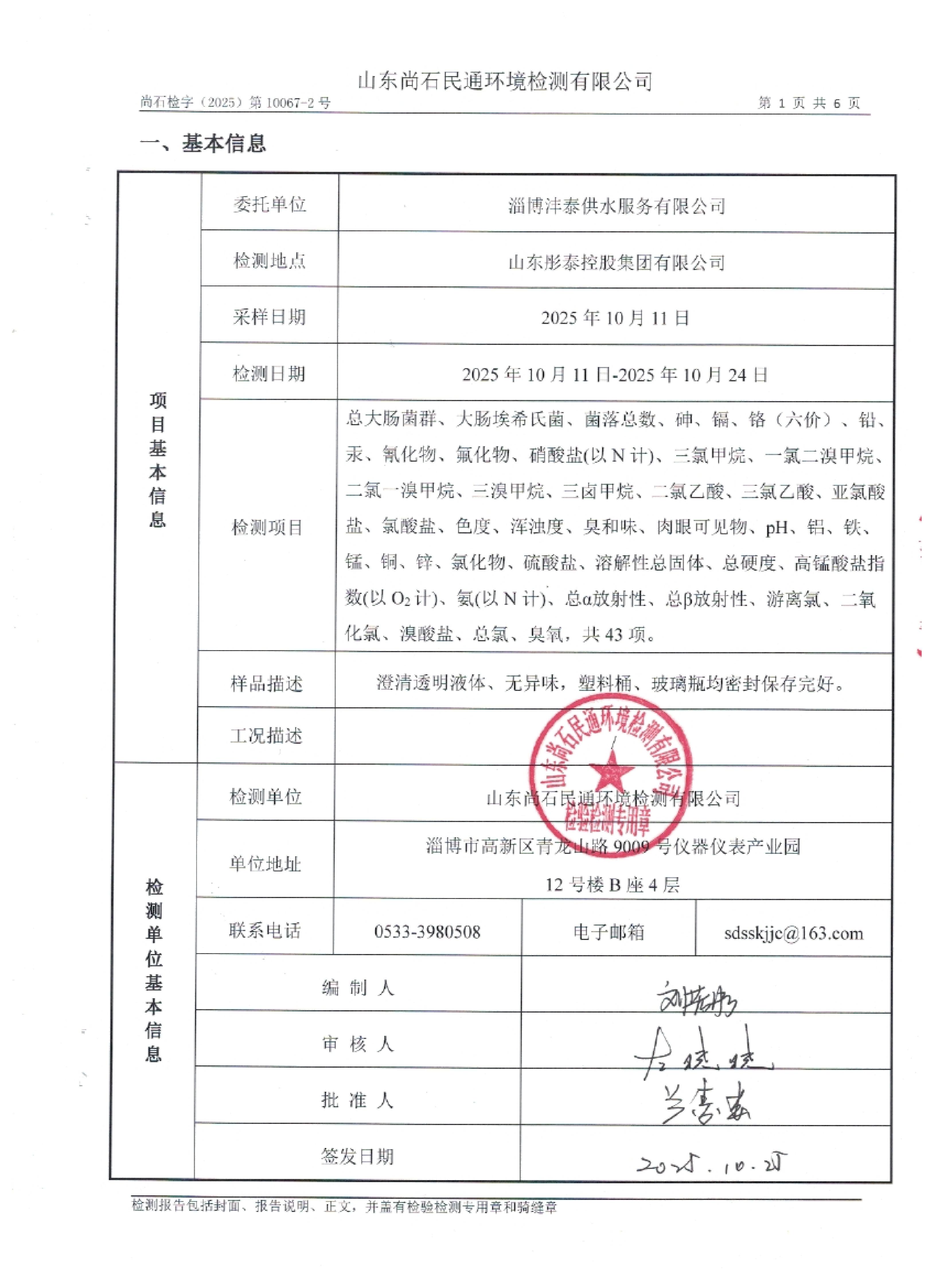 淄博灃泰供水服務(wù)有限公司末梢水月檢報(bào)告