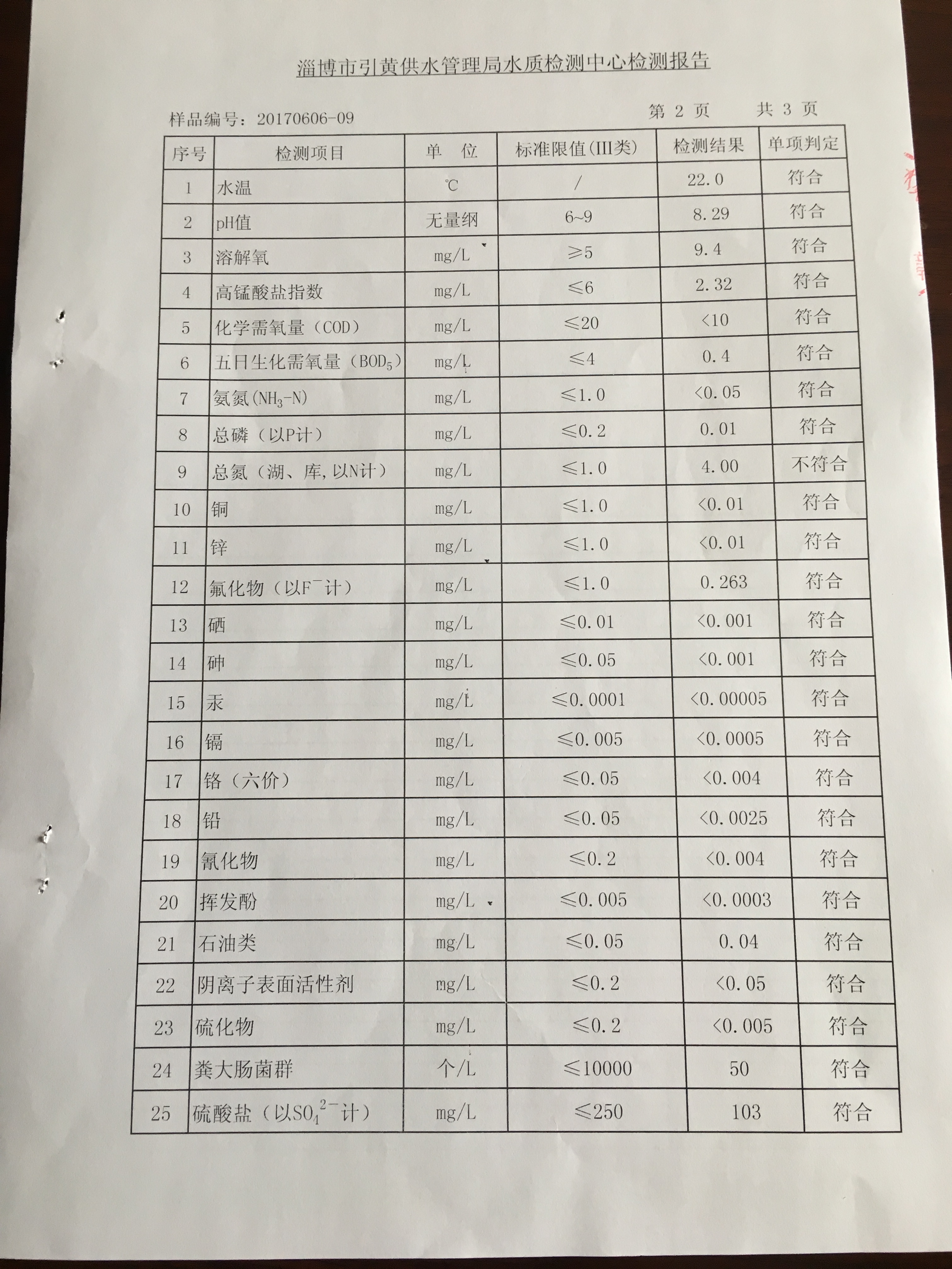 淄博灃泰供水服務有限公司地表水檢測月報表