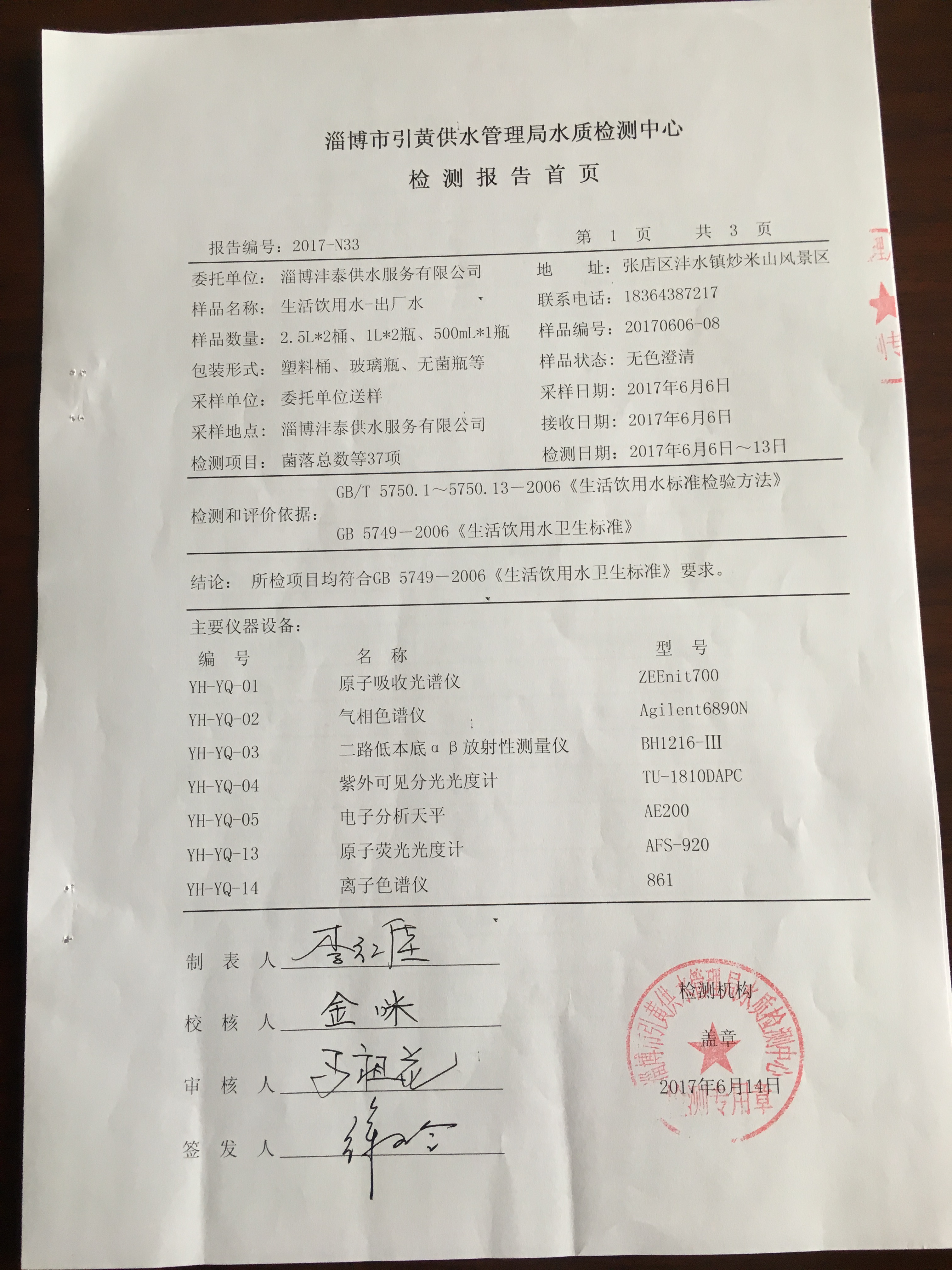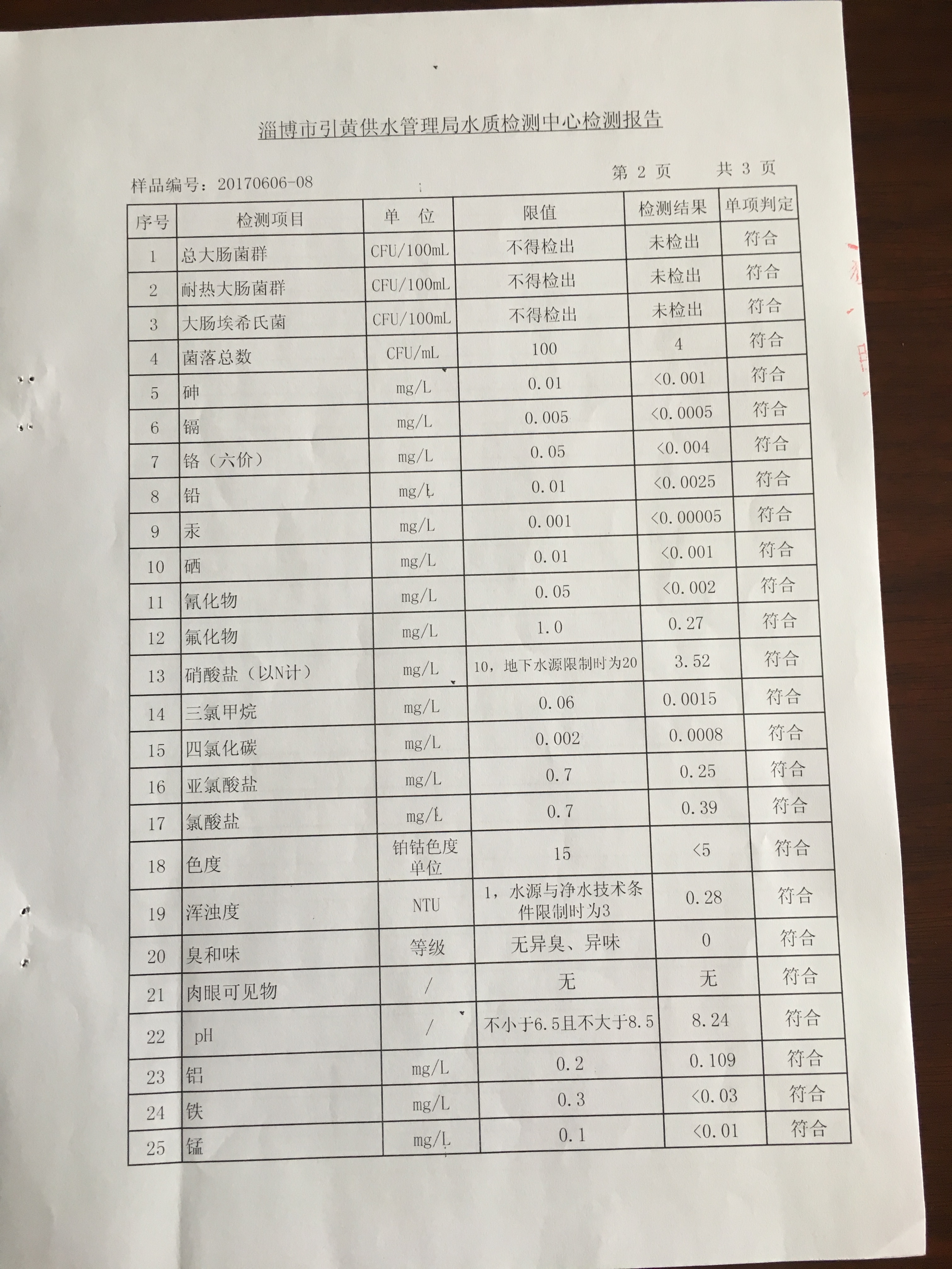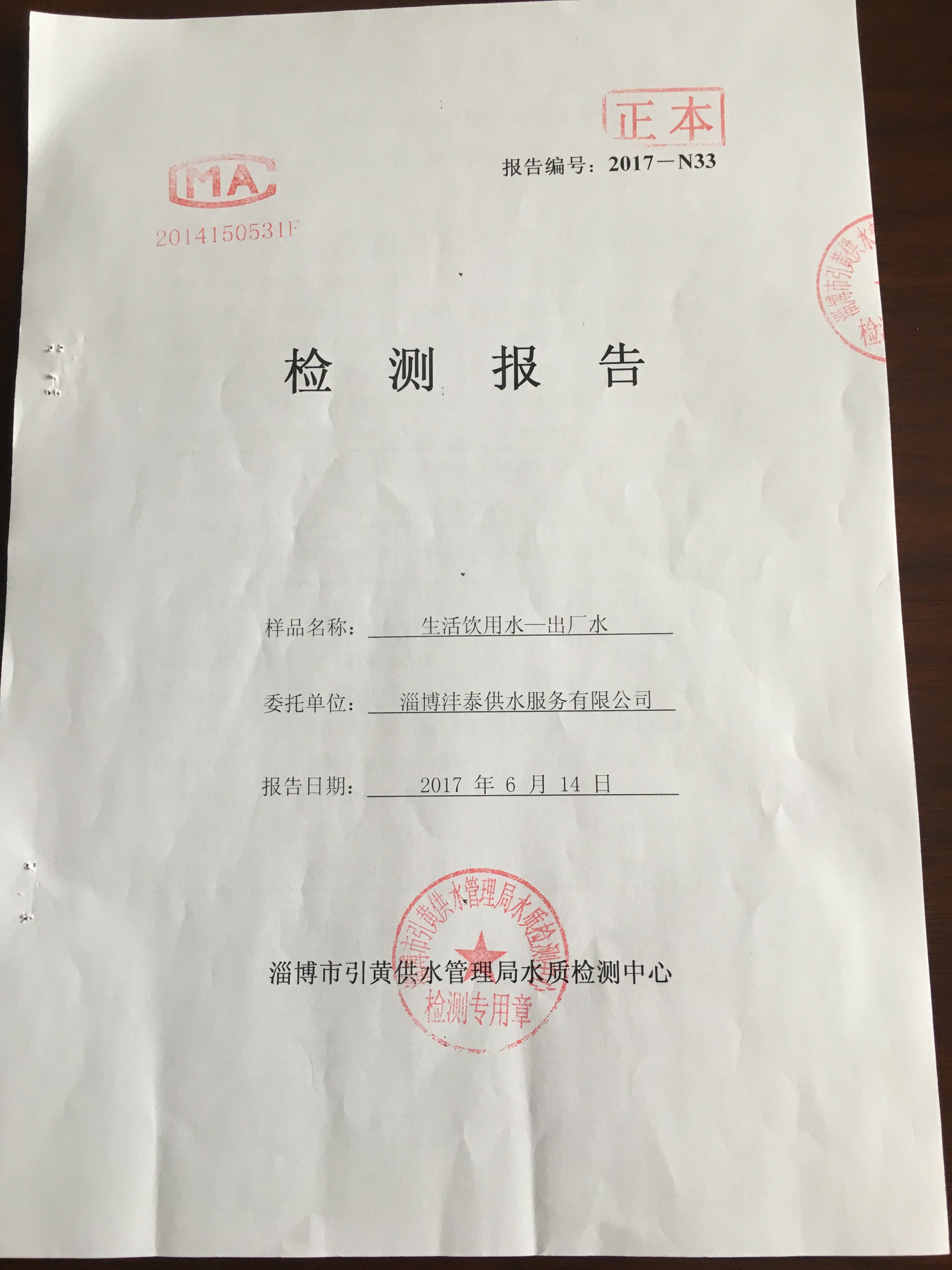 淄博灃泰供水服務(wù)有限公司出廠水檢測(cè)月報(bào)表